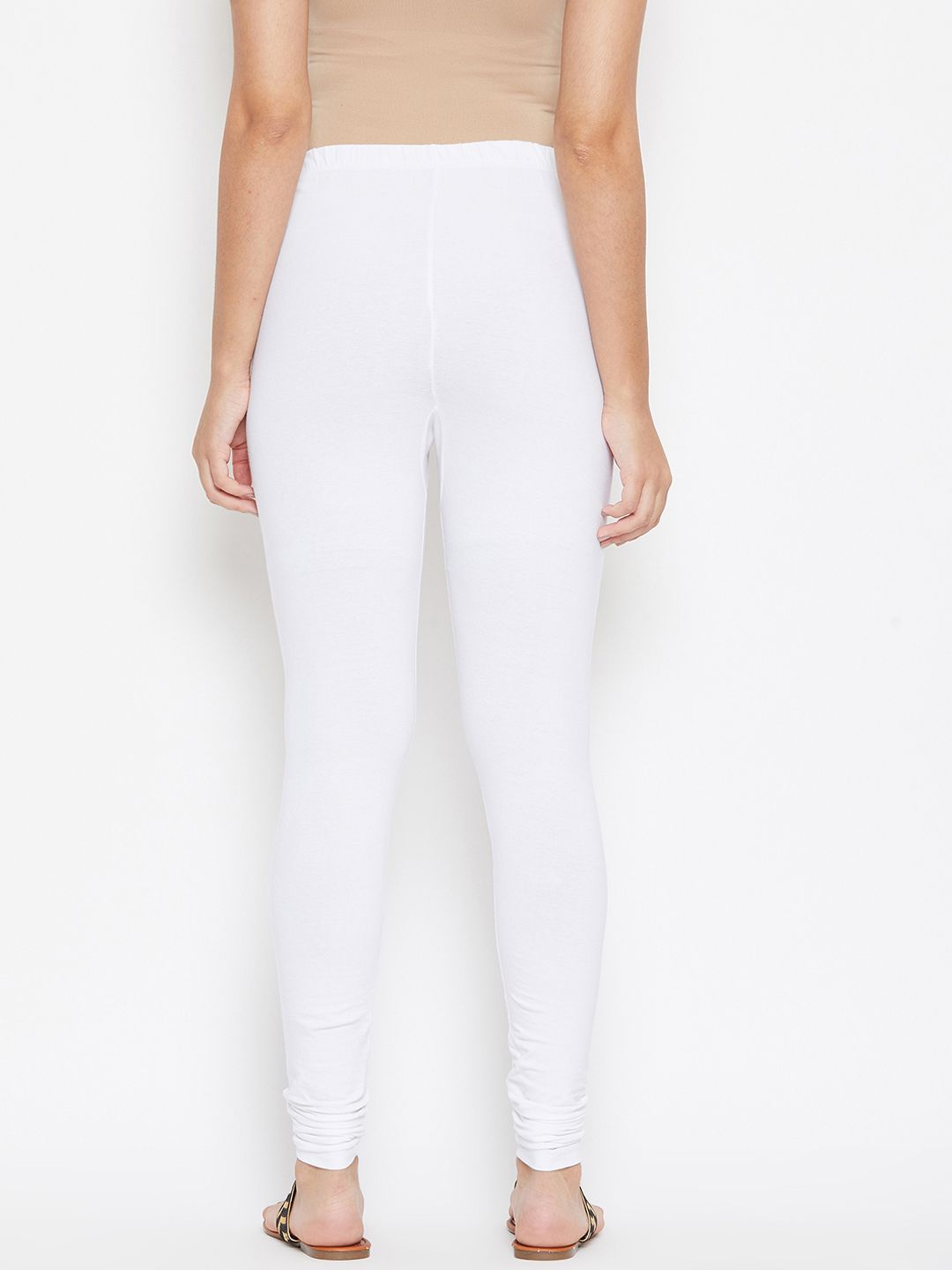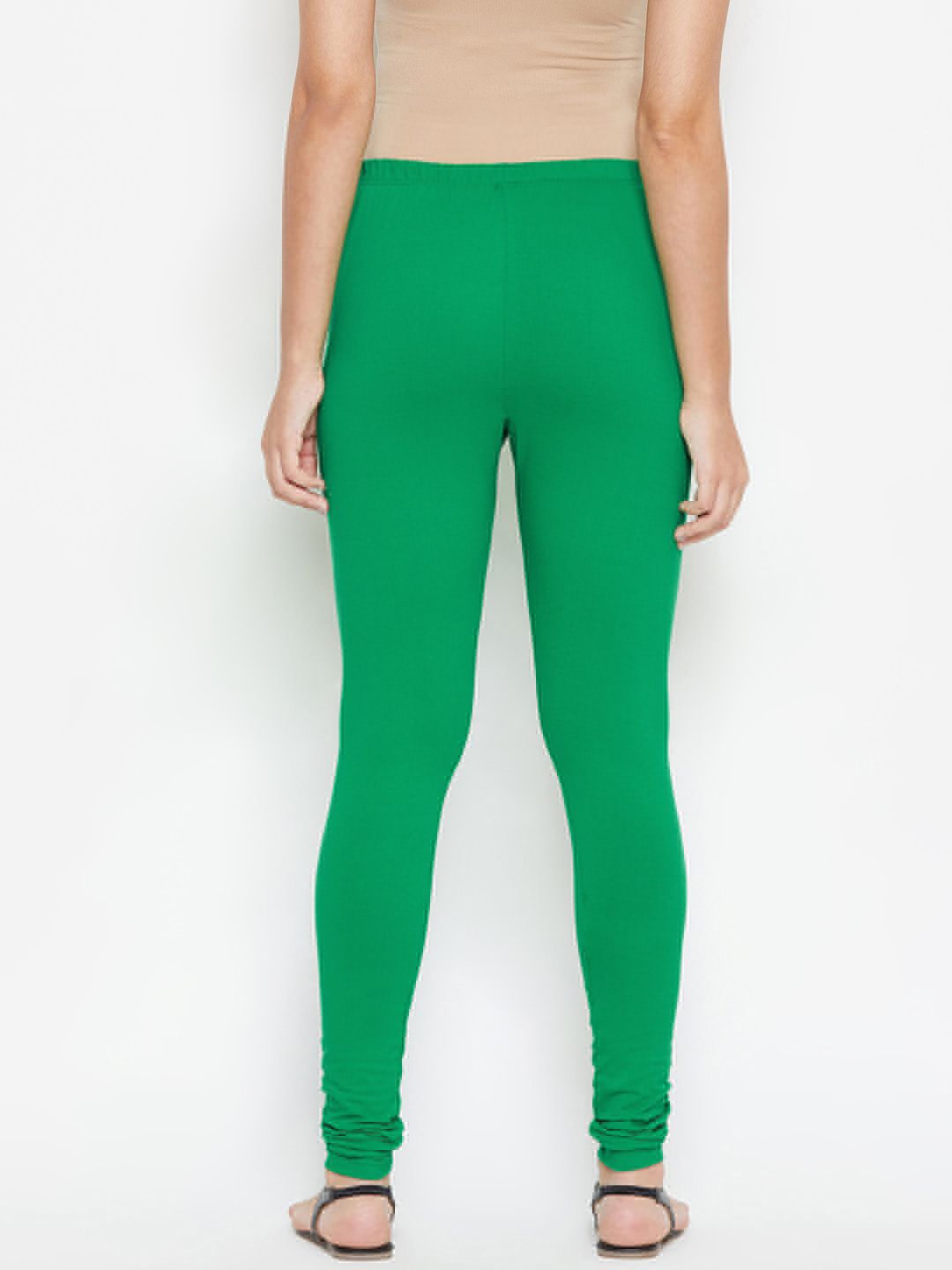 Pack of two solid high-rise bio-wash churidar-length leggings in green and white, has an elasticated waistband and slip-on closure
