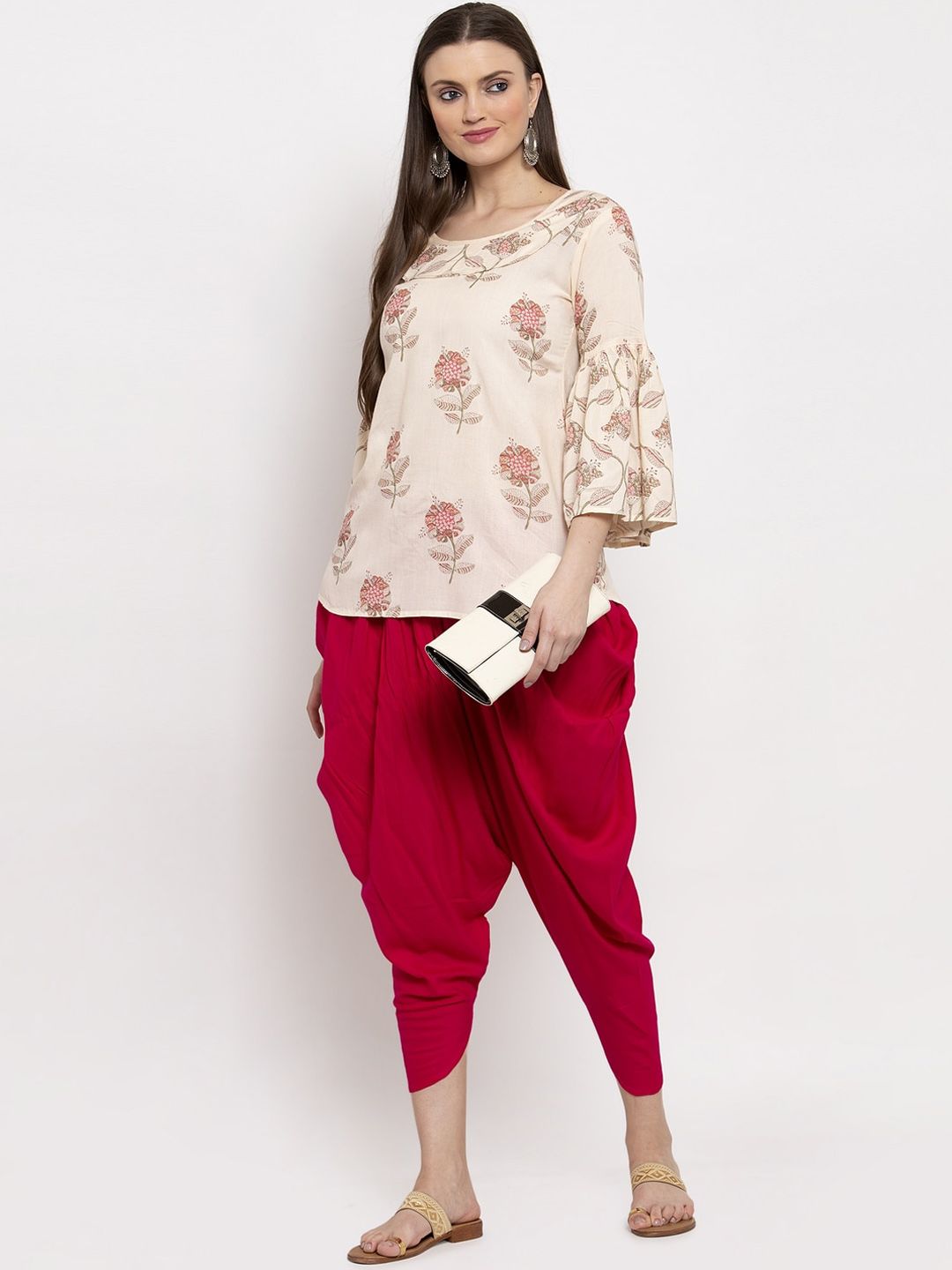 Pink solid woven high-rise dhoti with pleats, has an elasticated waistband, and slip-on closure