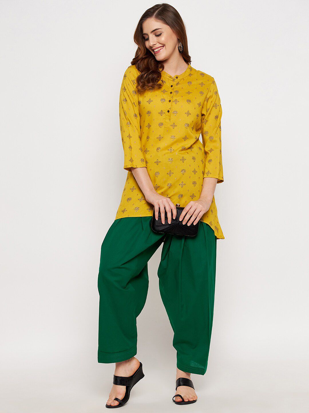 Unlock the secret of ultimate comfort by wearing this Semi-patiala salwar from the house of Clora. Made from cotton fabric, this Salwar is light in weight and comfortable to wear all day long.