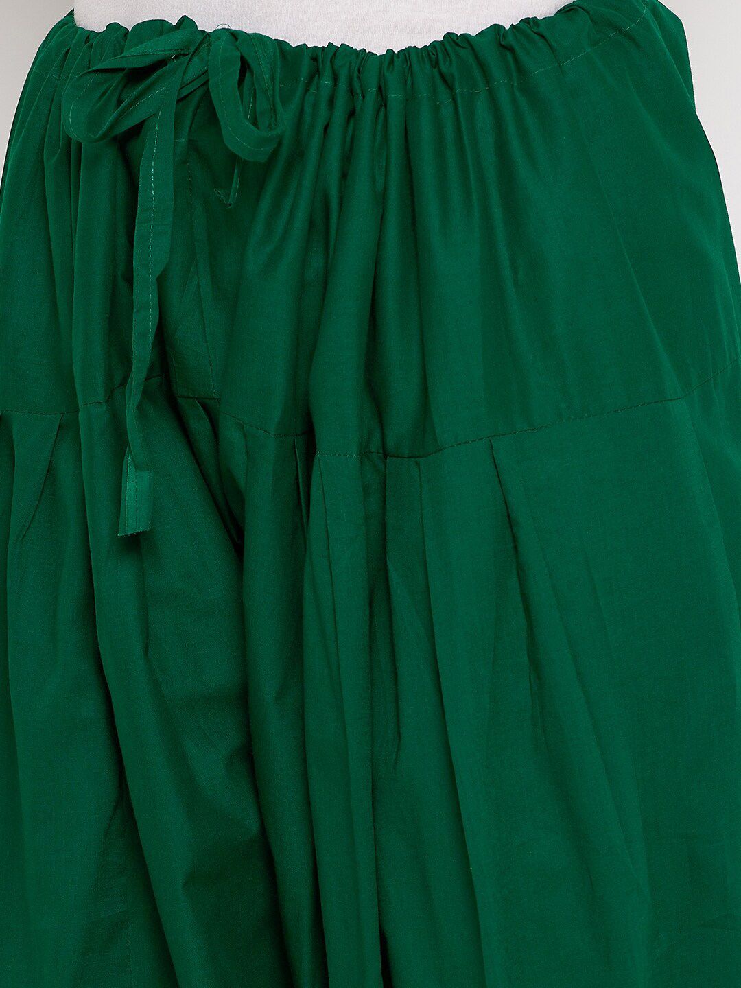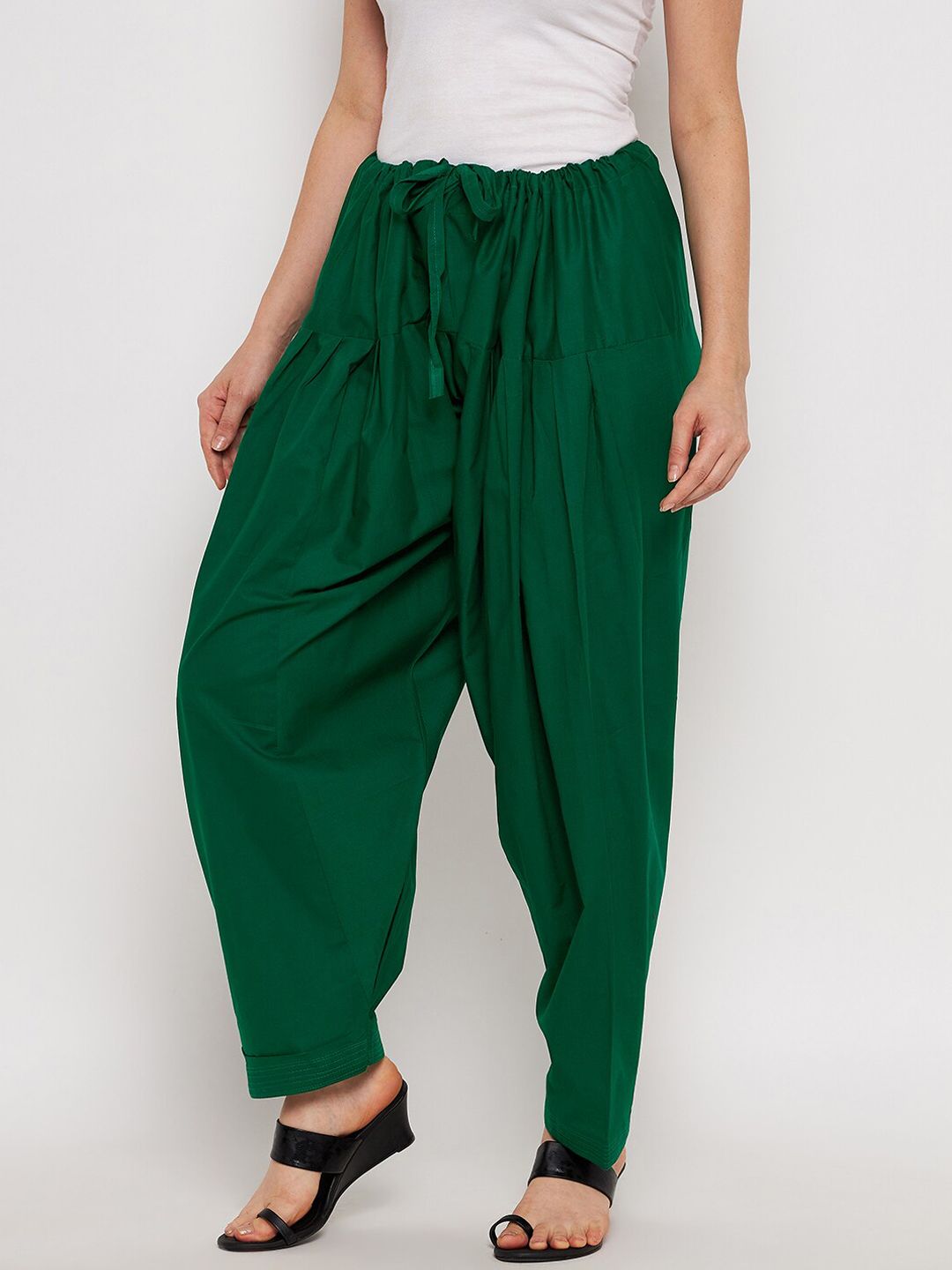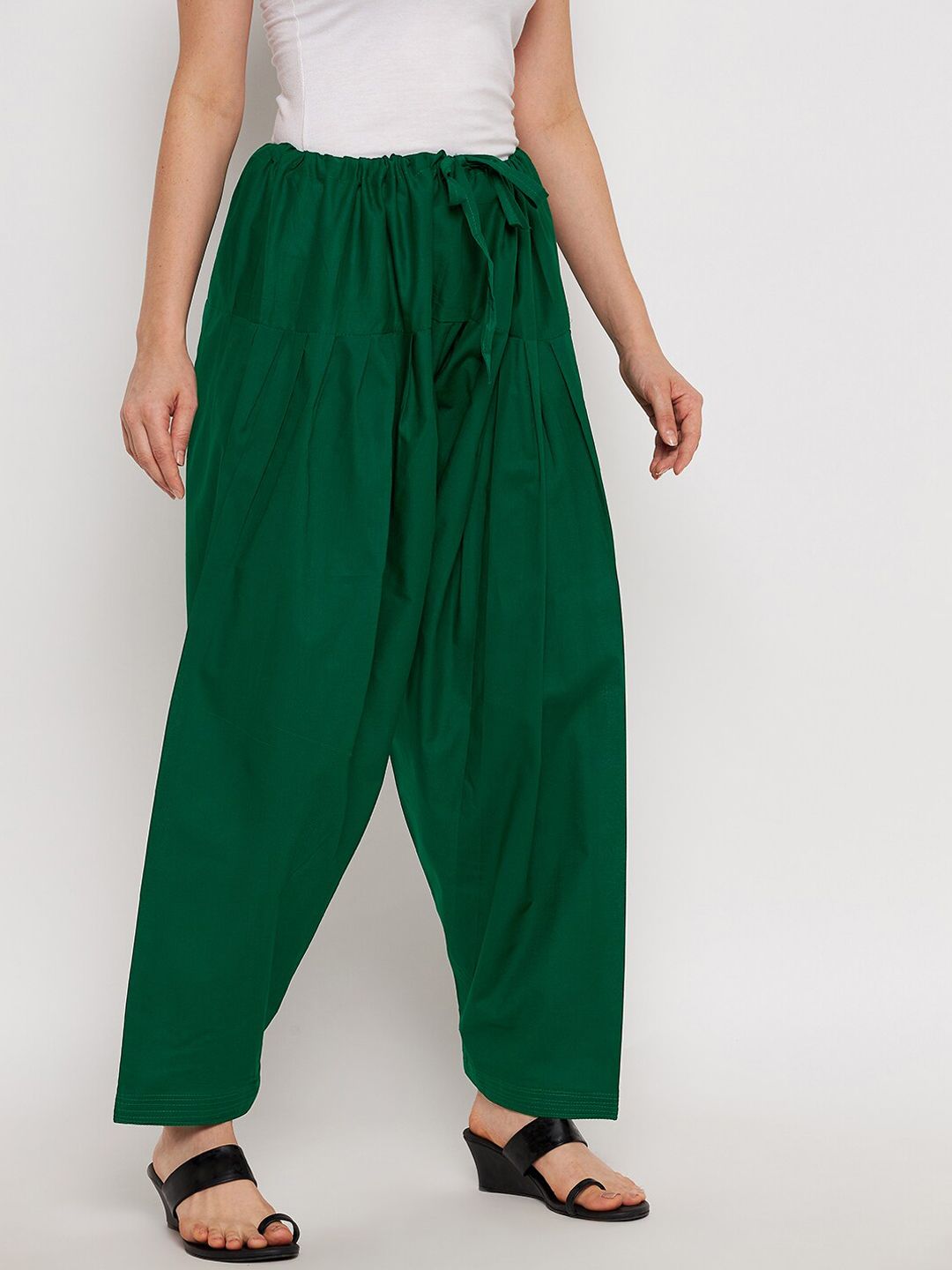 Green solid salwar, has a waistband with drawstring closure
