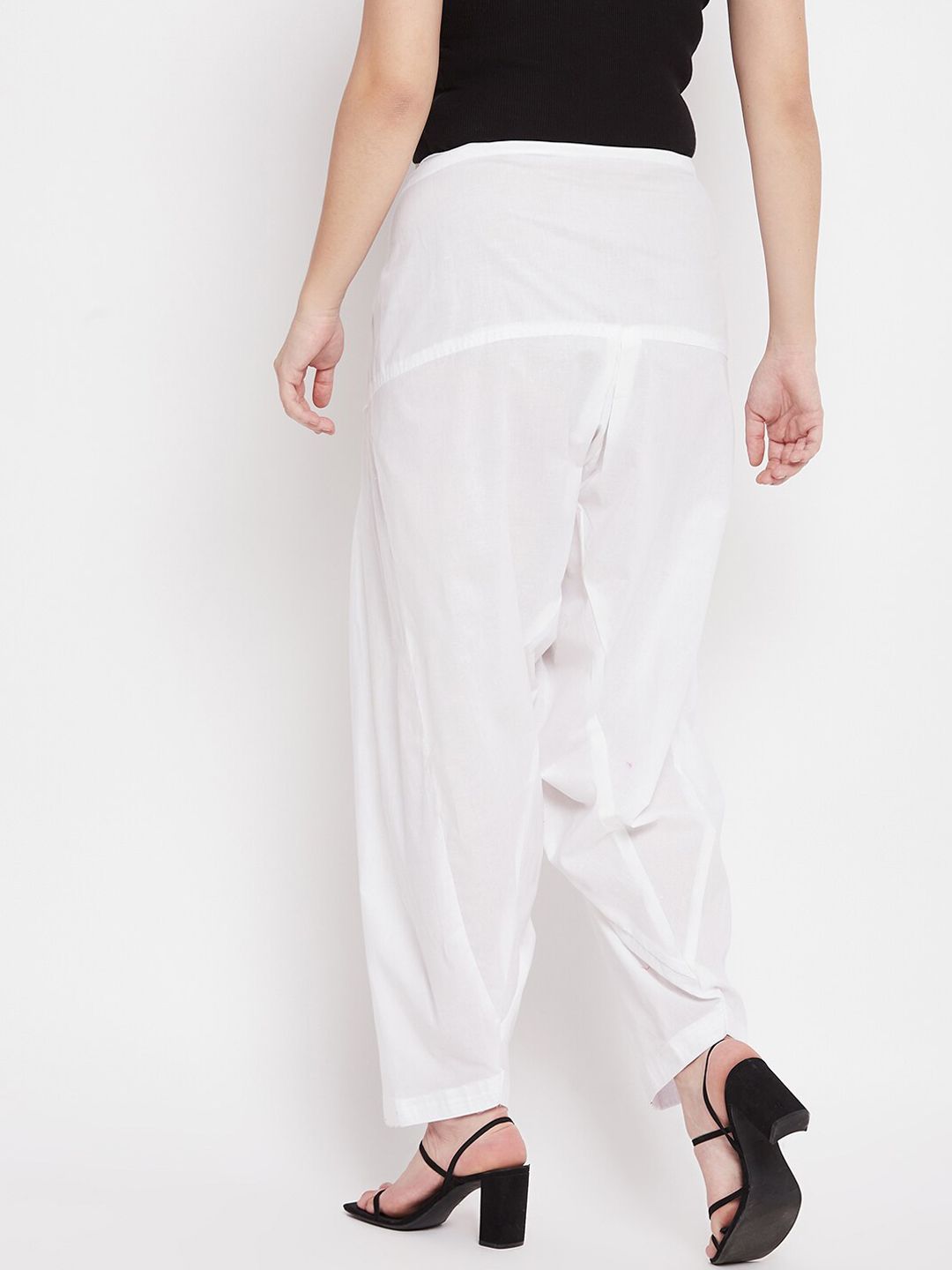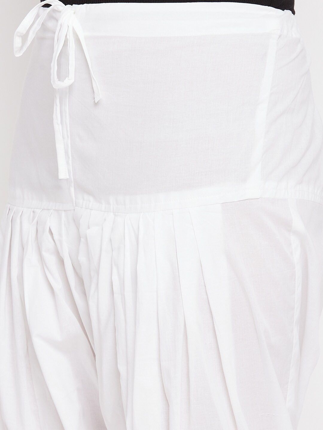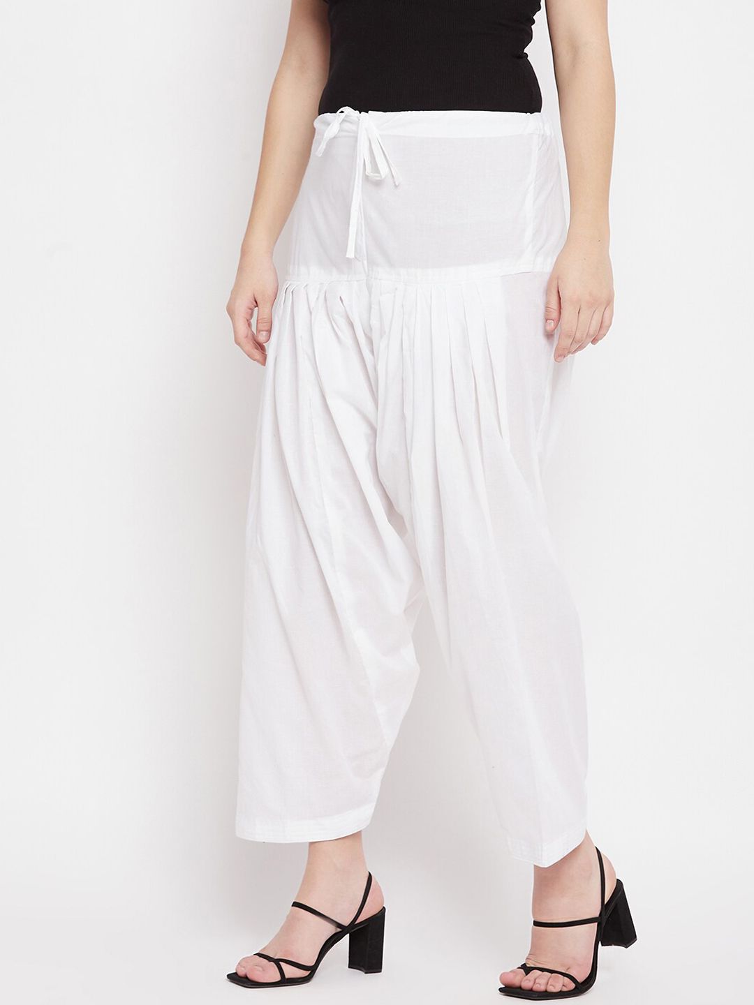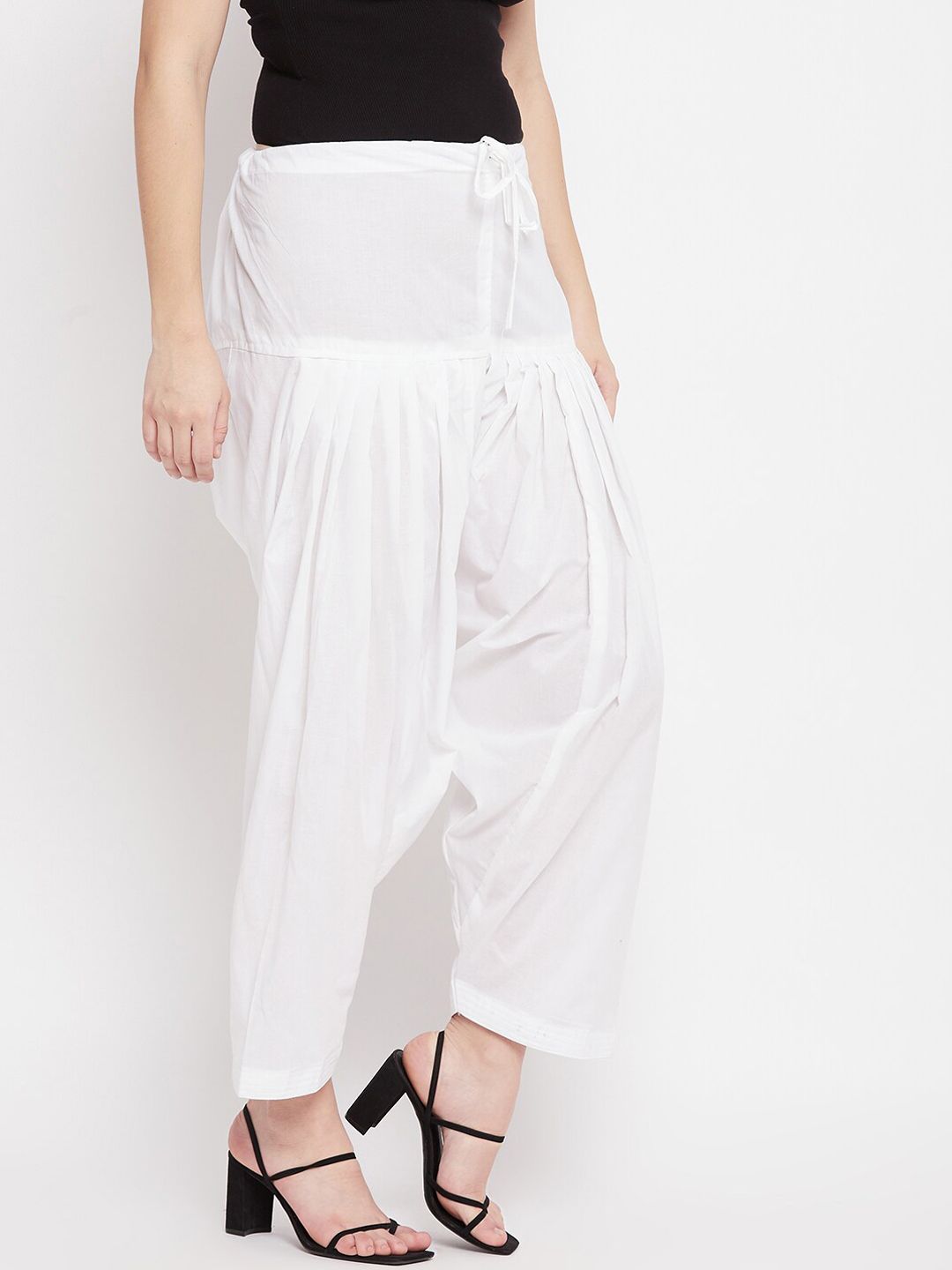 White solid loose-fit salwar, has a waistband with drawstring closure and pleated details