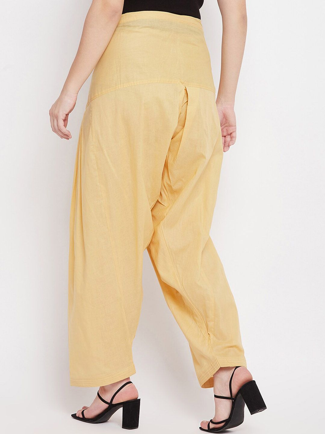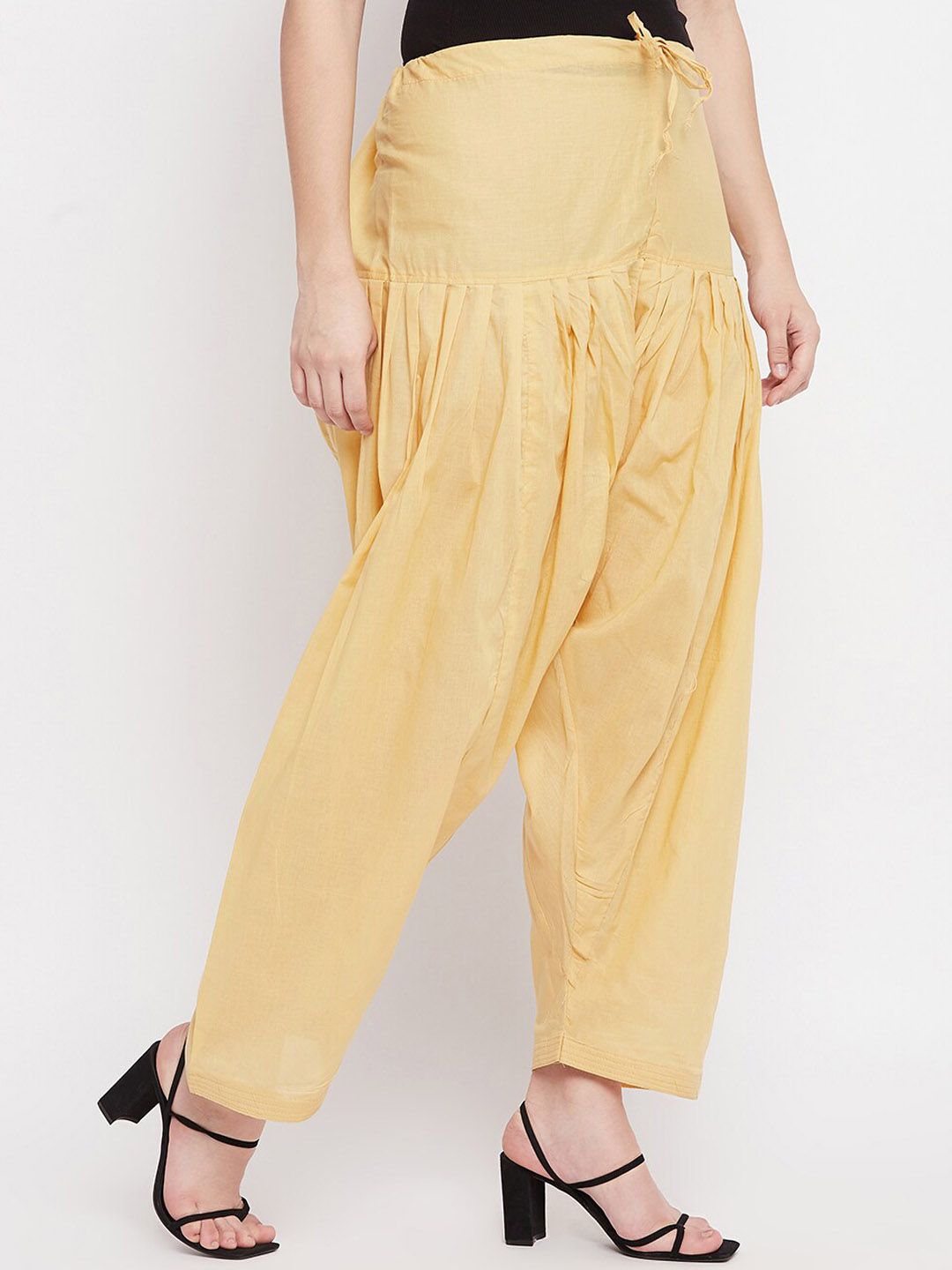 Beige solid mid-rise loose-fit salwar with gathers and pleats, has an elasticated waistband with a drawstring closure