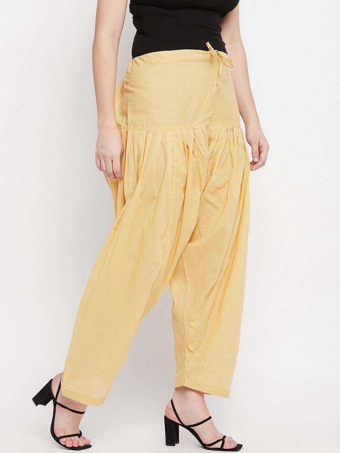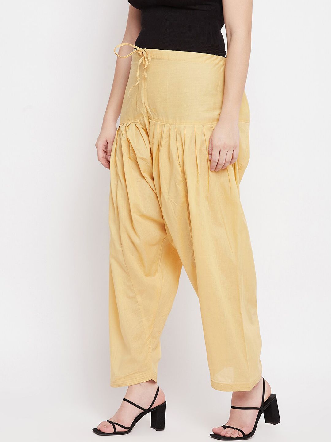 Beige solid loose-fit salwar, has a waistband with drawstring closure and pleated details