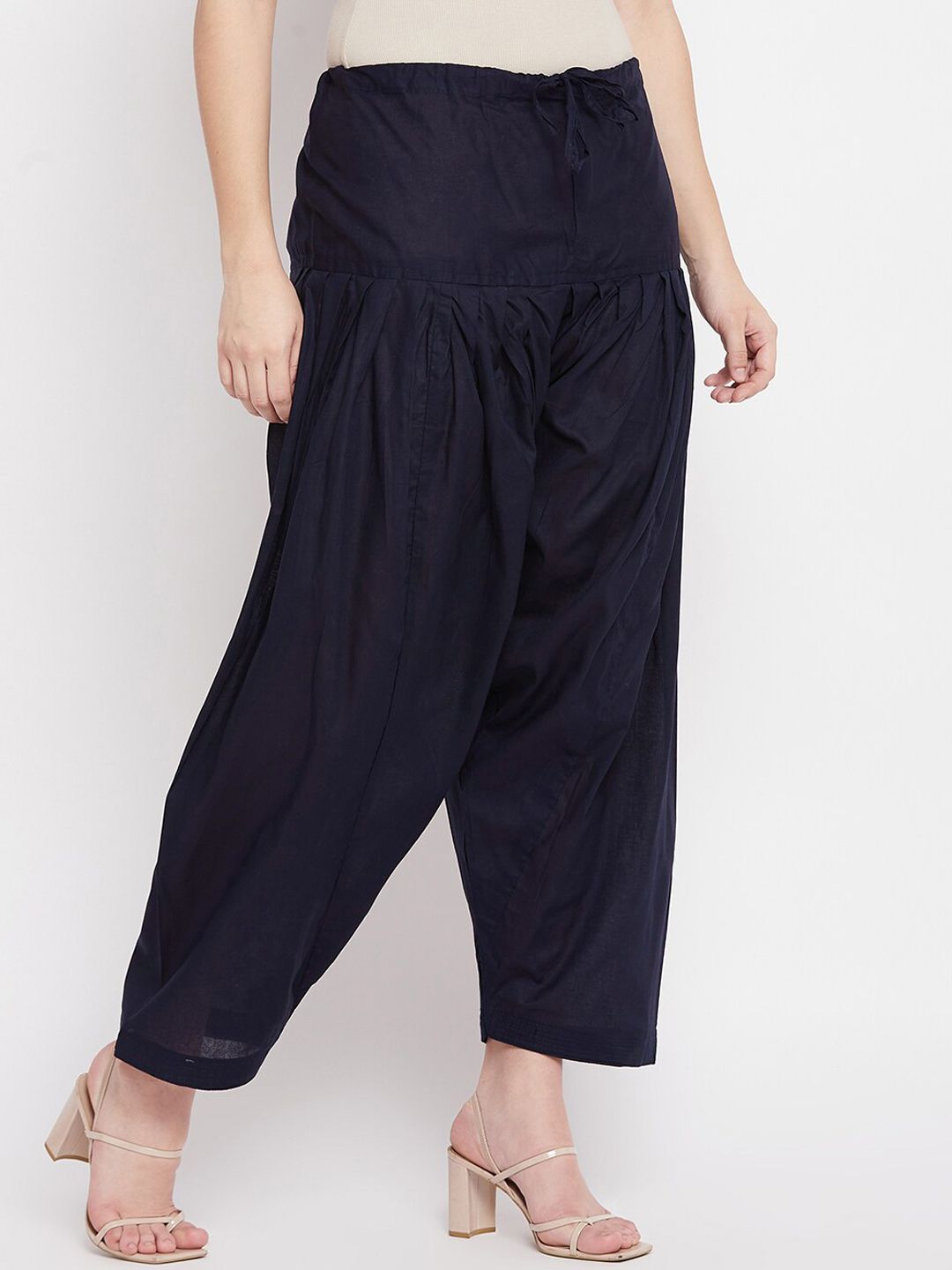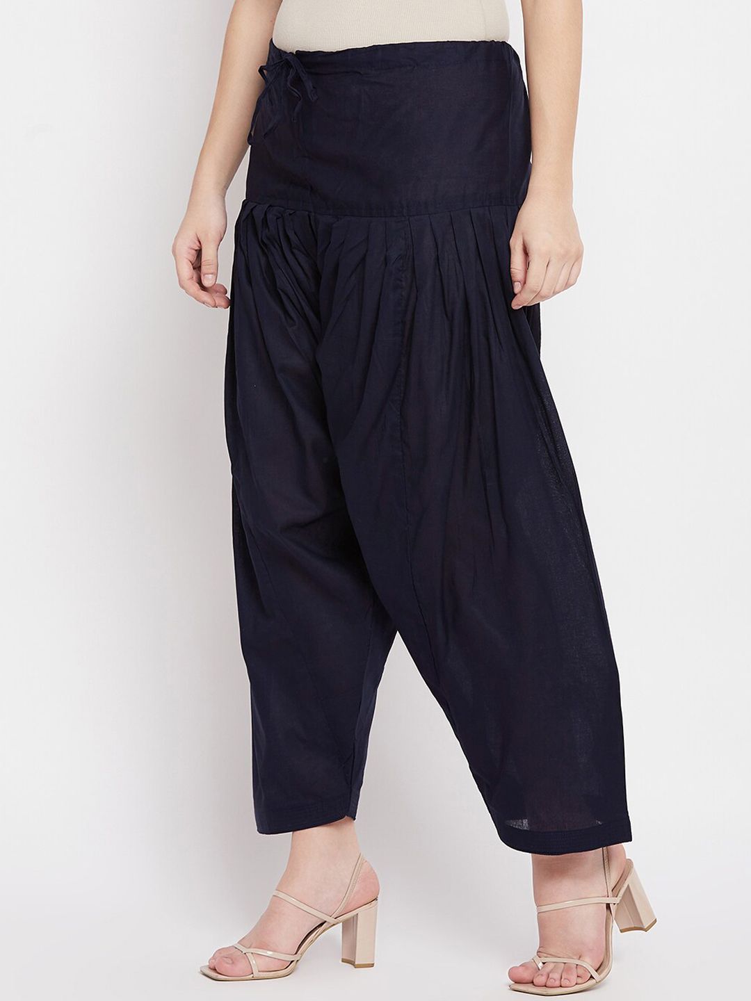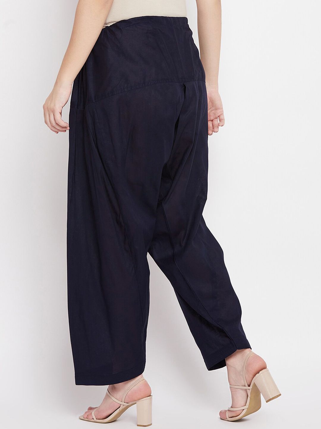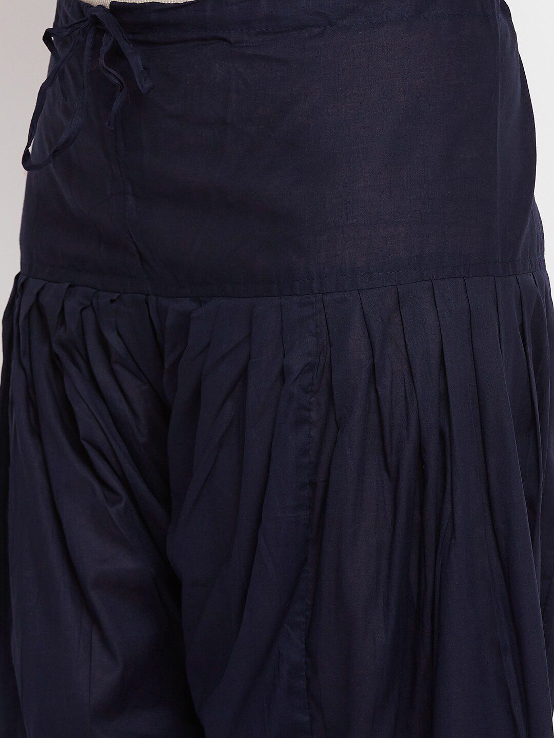 Navy blue solid loose-fit salwar, has a waistband with drawstring closure and pleated details