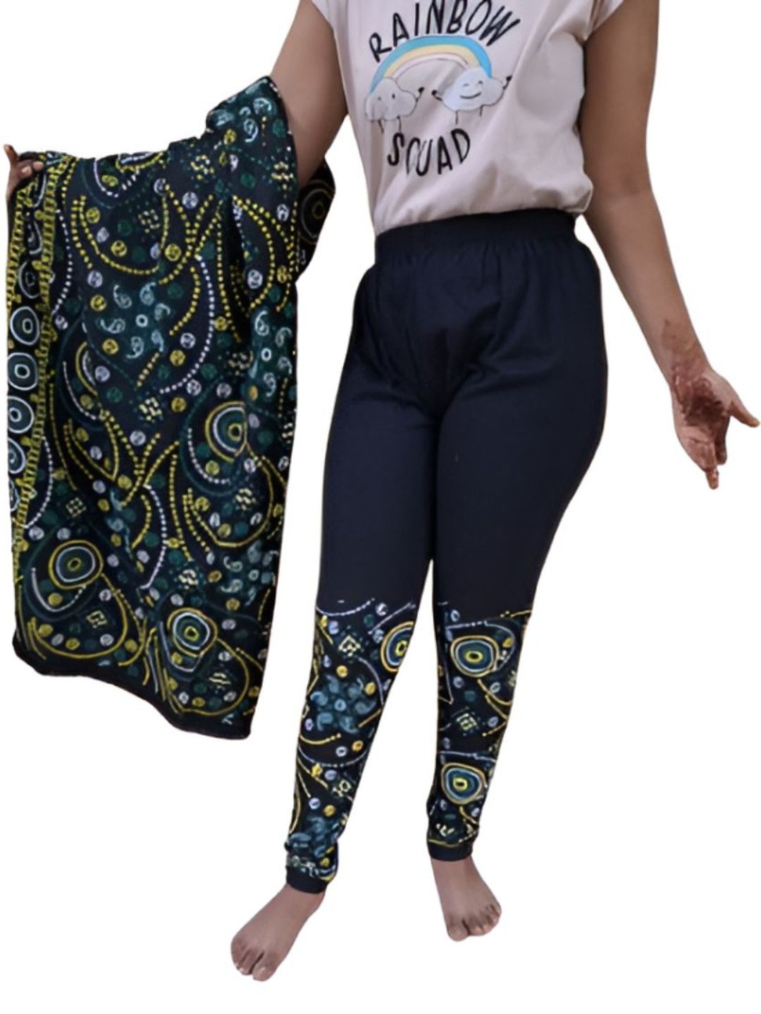 Black printed ankle-length leggings, has an elasticated waistband with slip-on closure