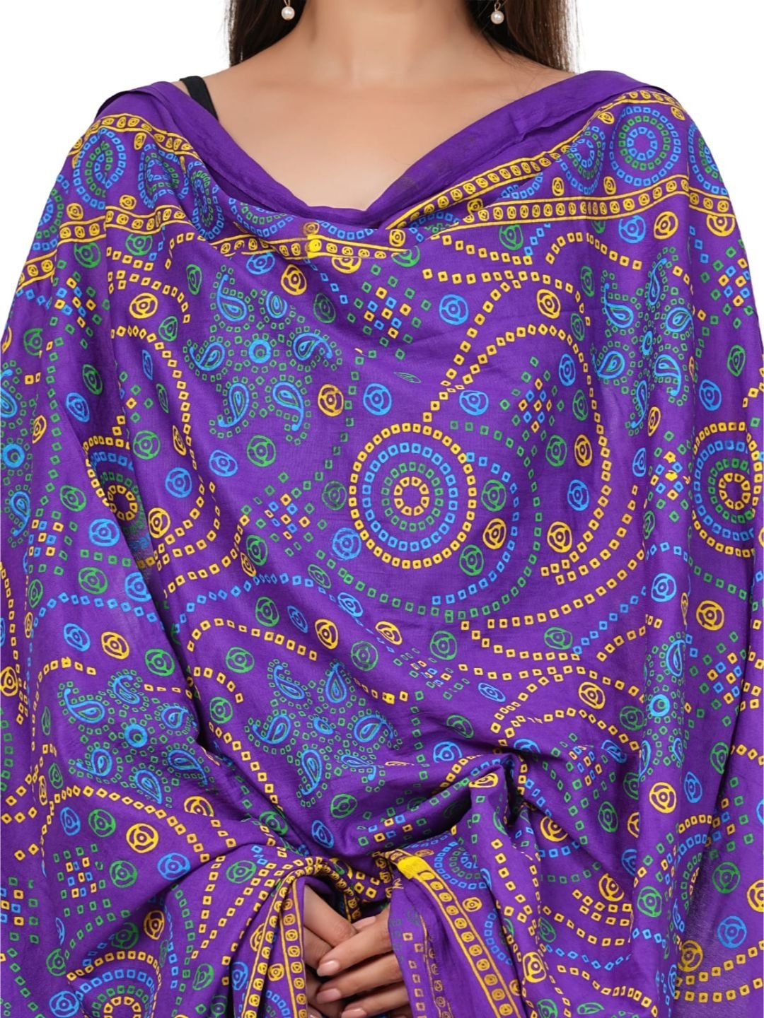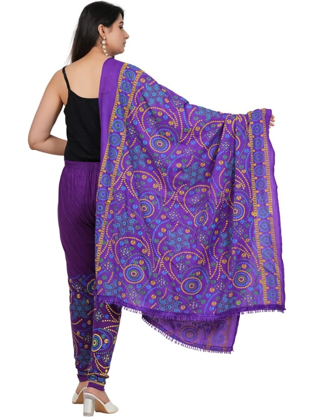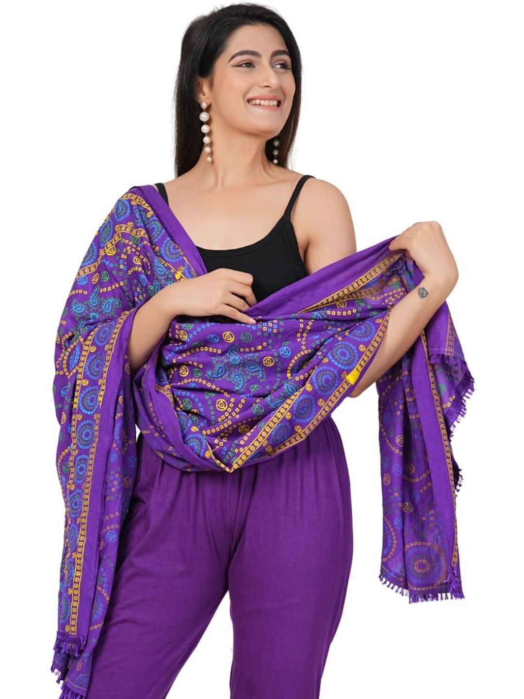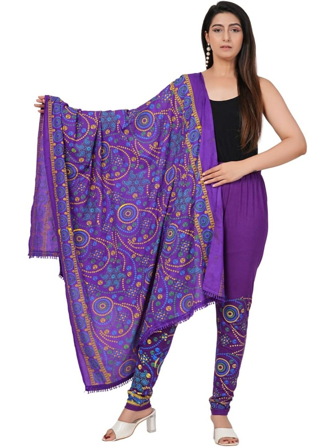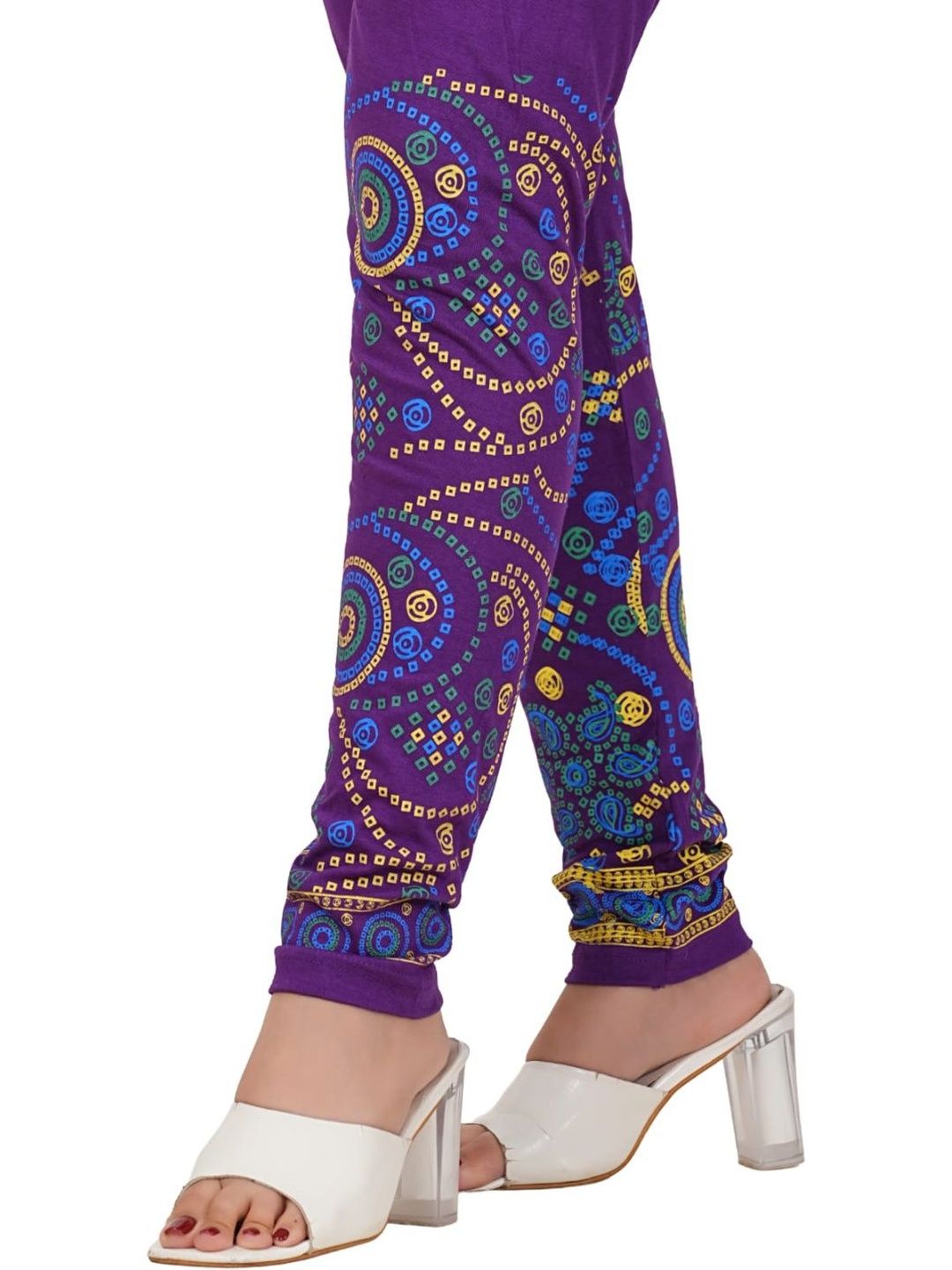 Violet printed ankle-length leggings, has an elasticated waistband with slip-on closure with Dupatta