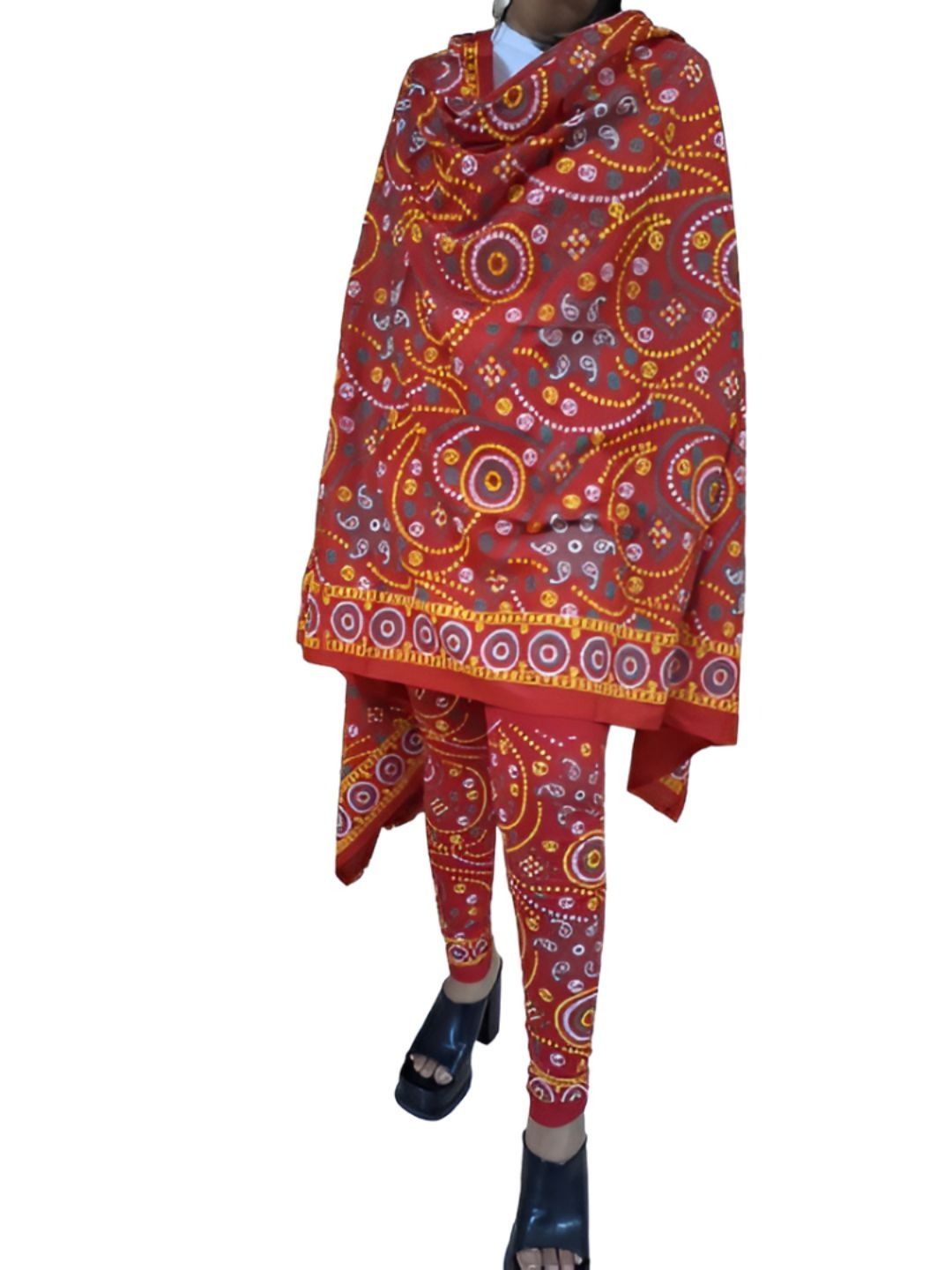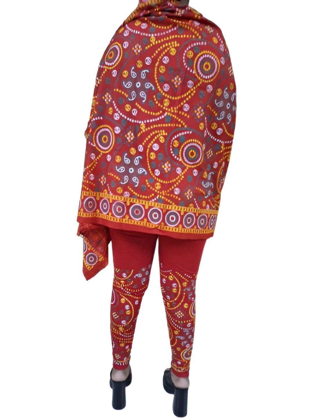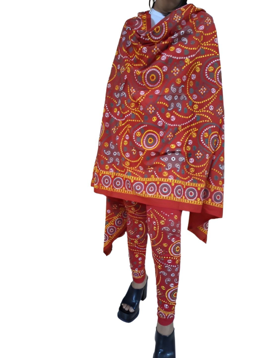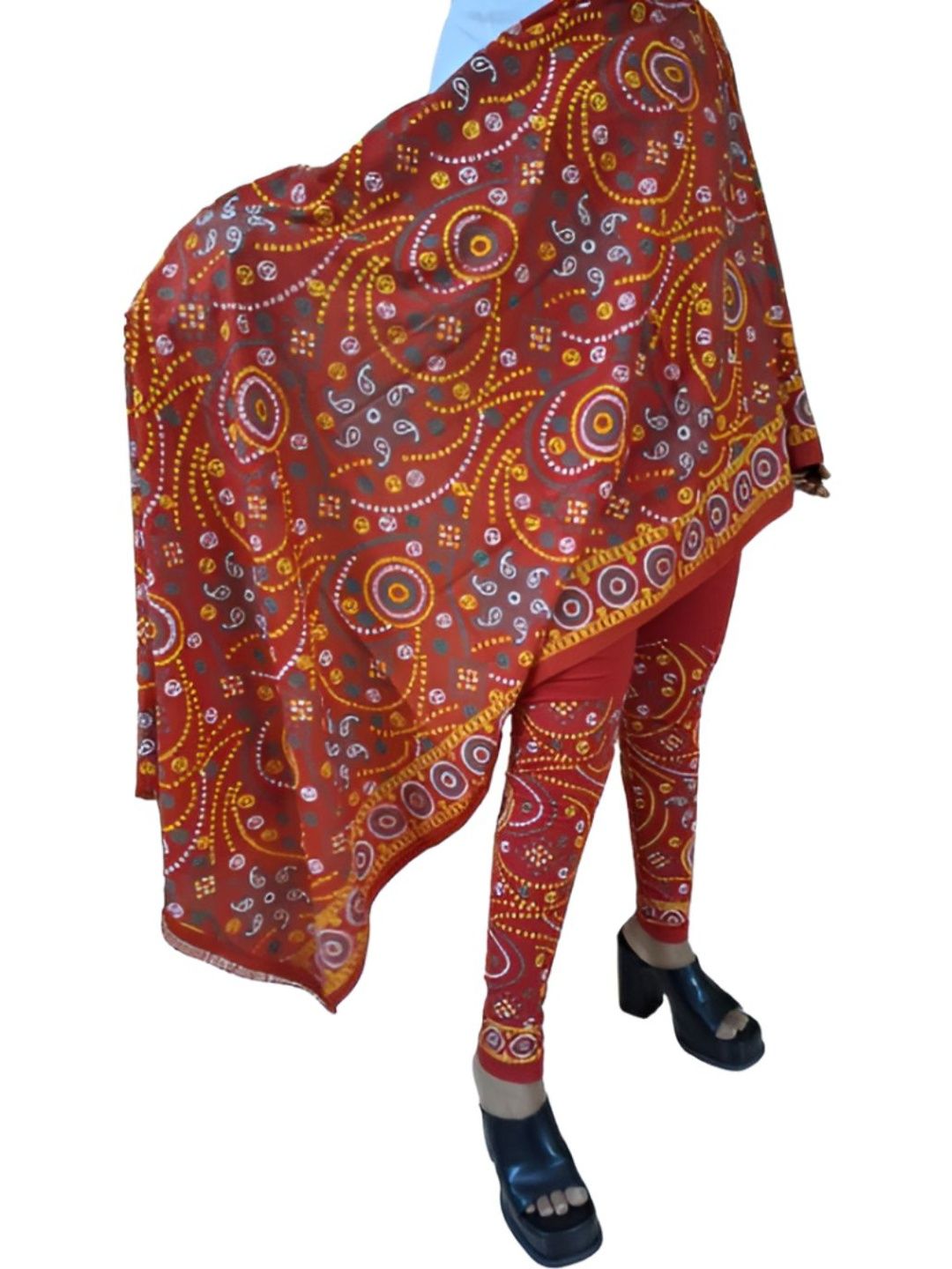 Red printed ankle-length leggings, has an elasticated waistband with slip-on closure with Duppatta