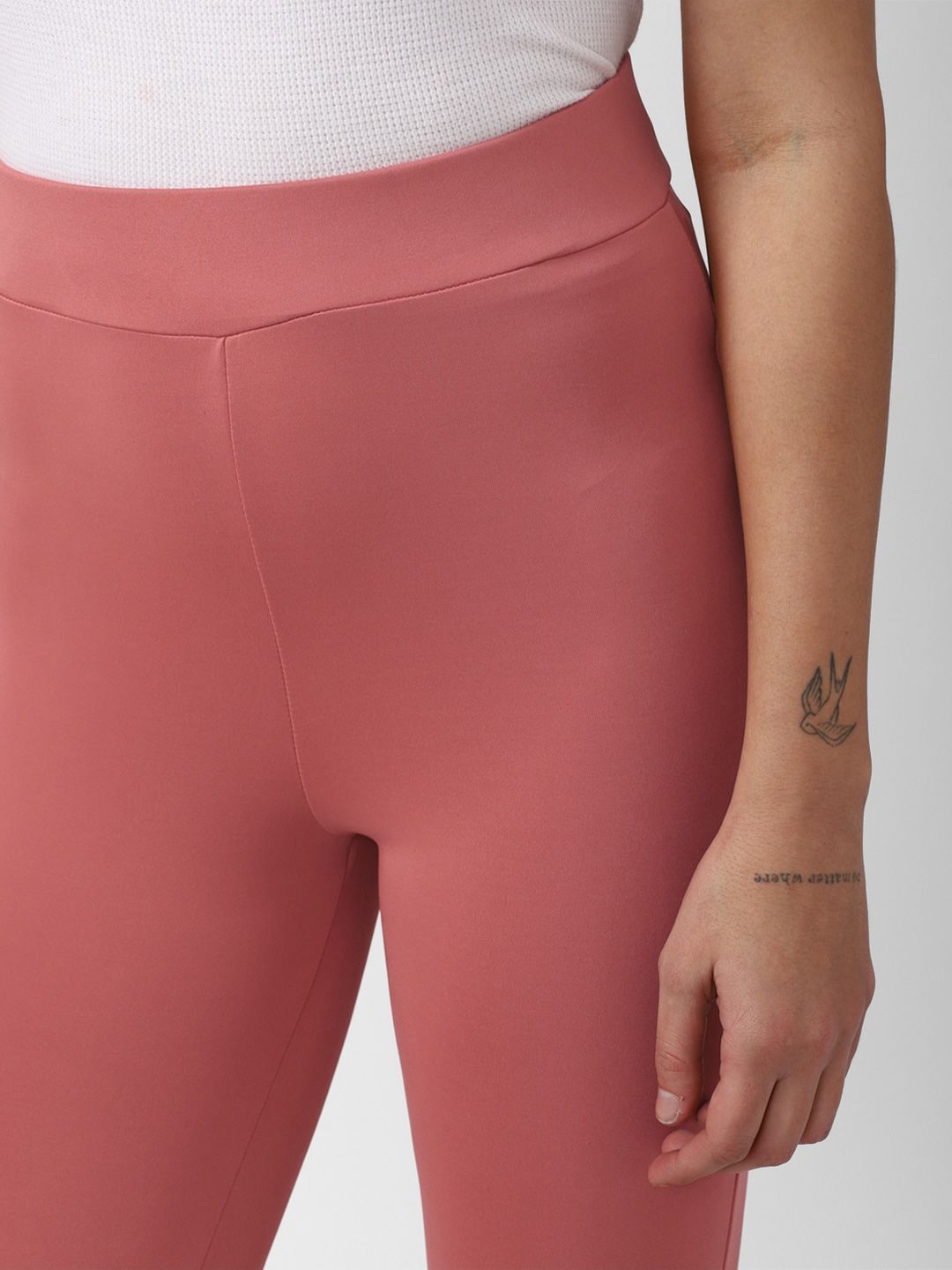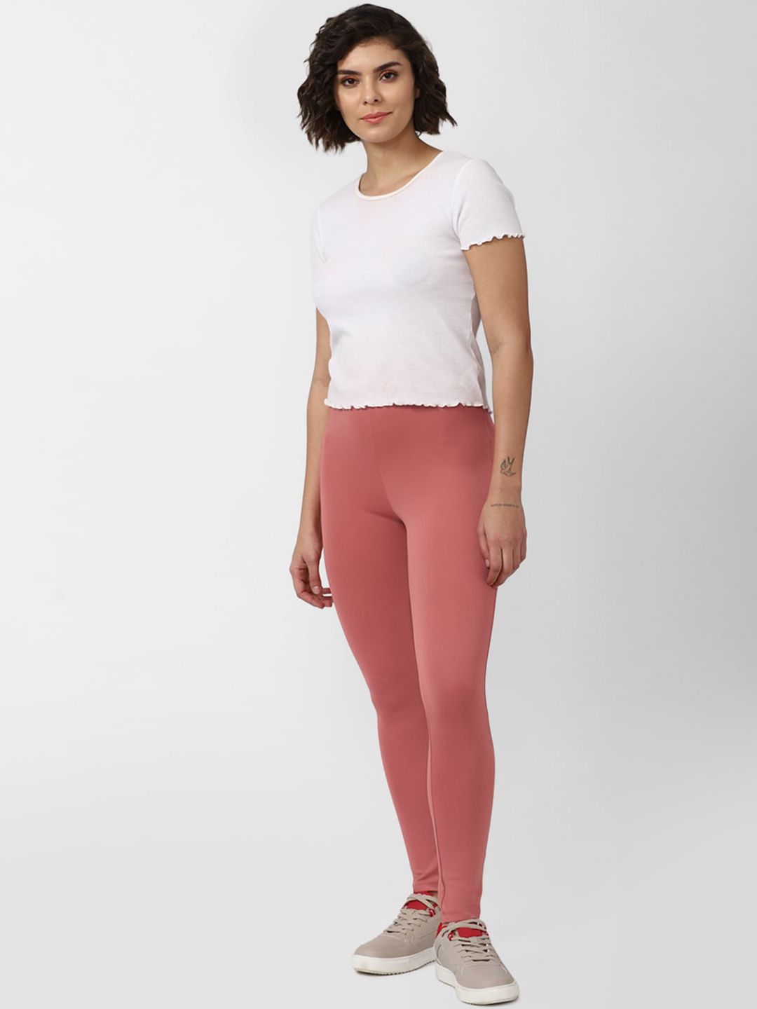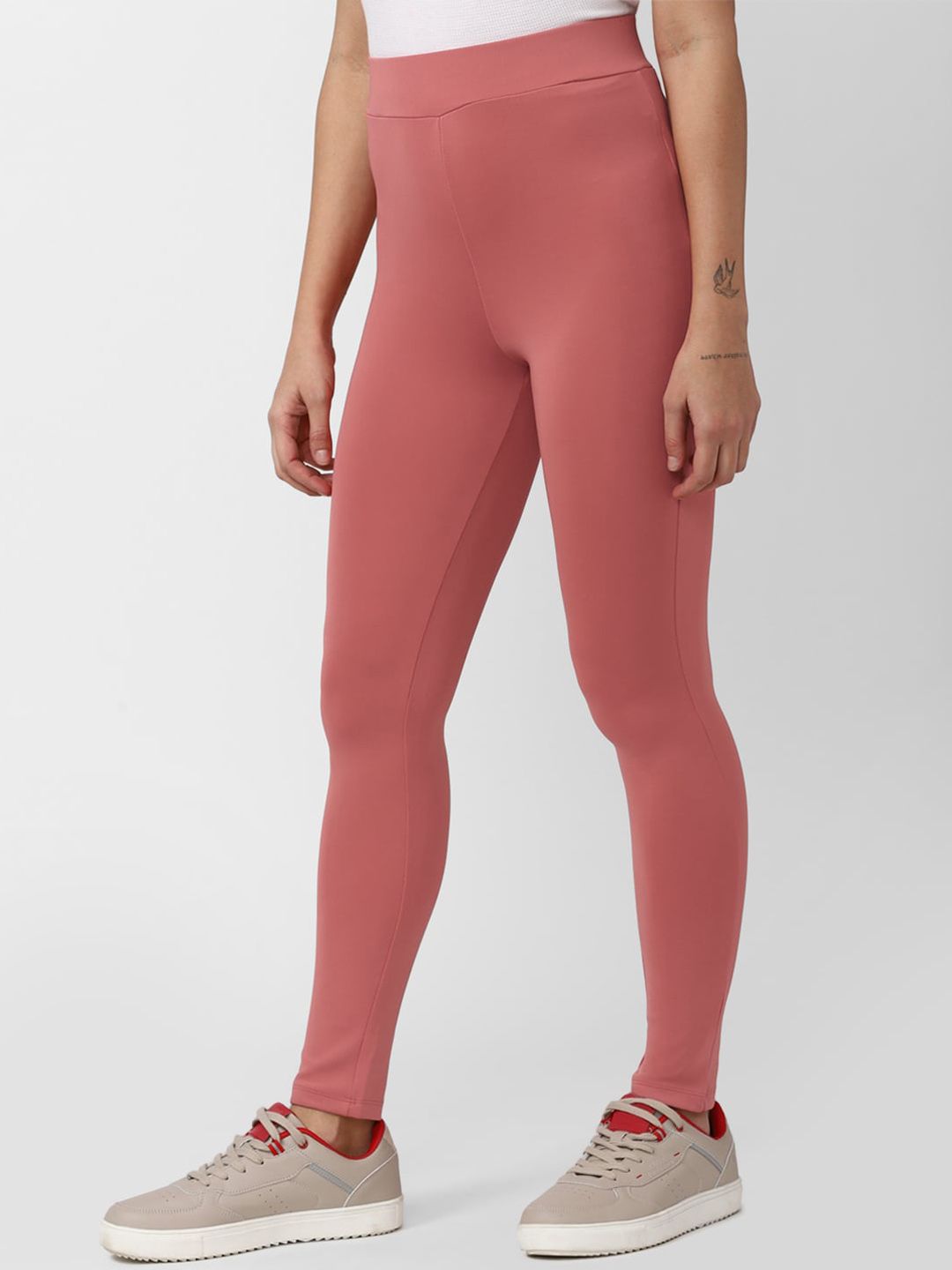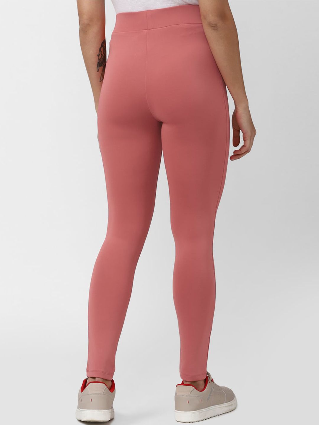 Pink solid regular-fit ankle-length leggings has an elasticated waistband and slip-on closure