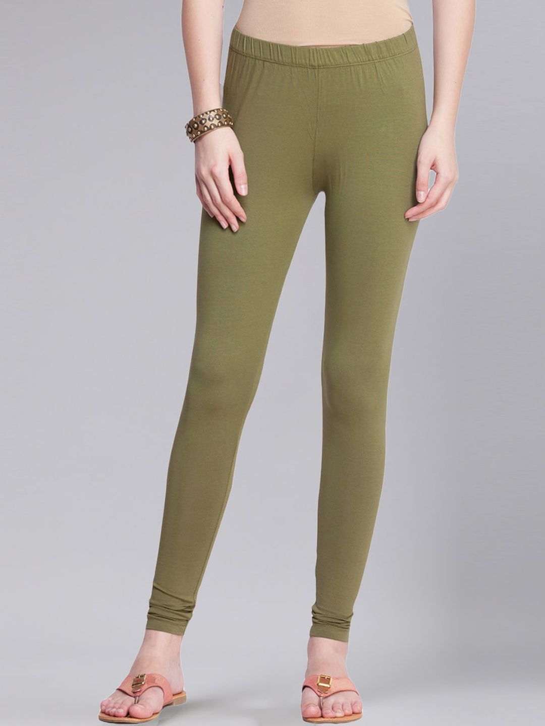 Pack of 2 solid ankle length leggings in White & Olive green color, each has an elasticated waistband and slip-on closure with mid riseFeatures: shape-retain technologyExperience ultimate comfort and styleExperience ultimate comfort and flexibility Four-way stretch technologyMoisture absorbent fabric