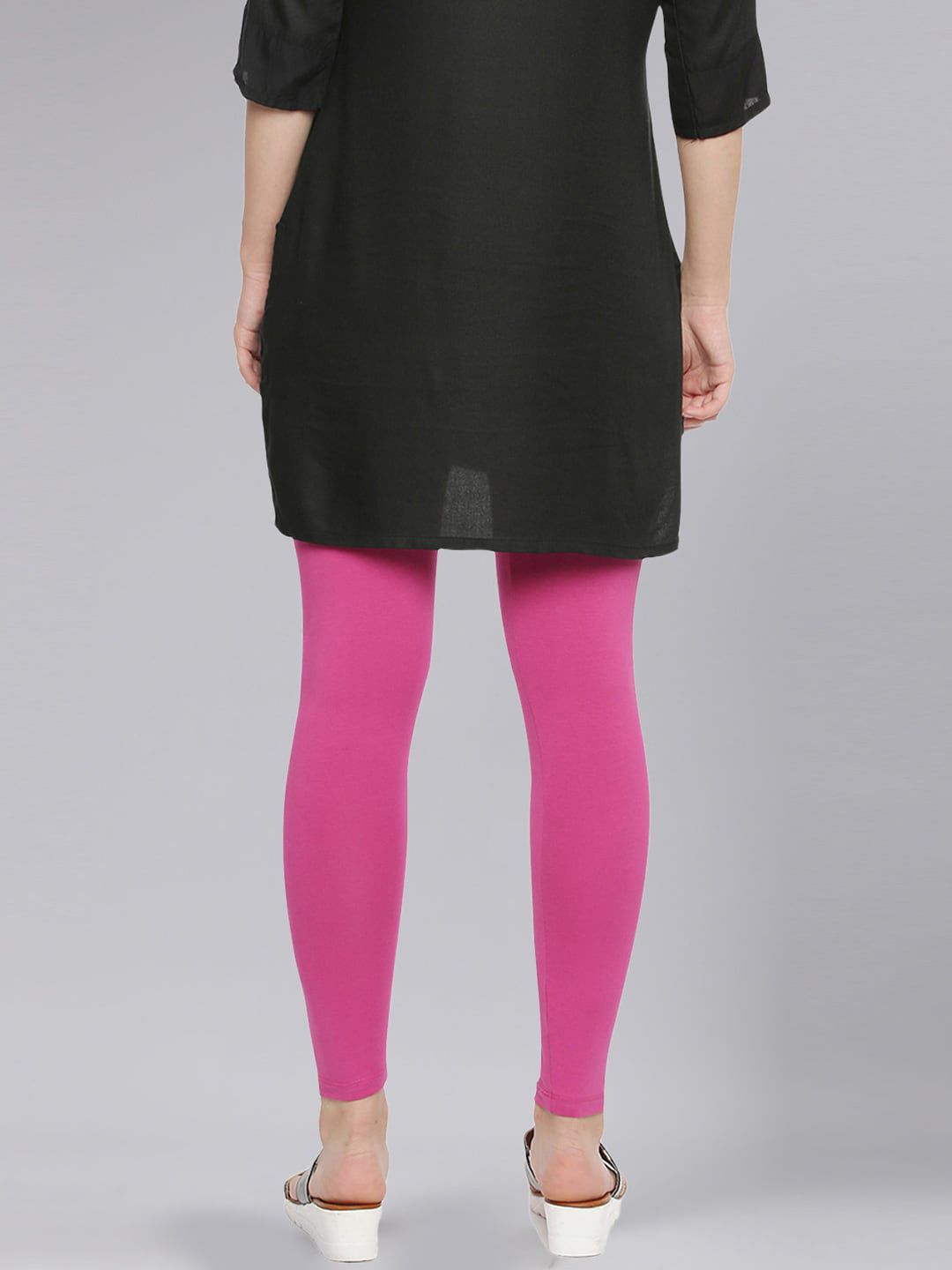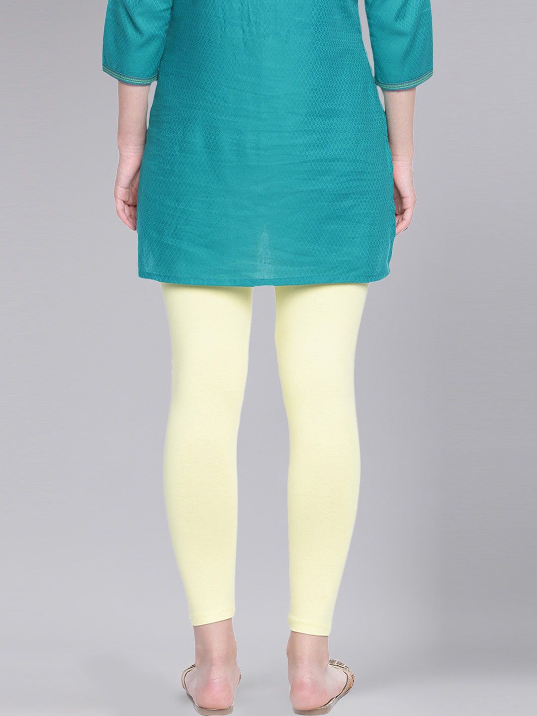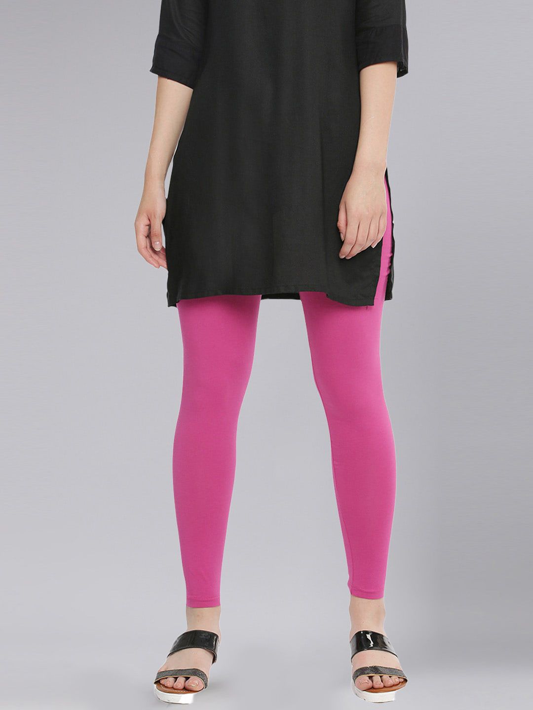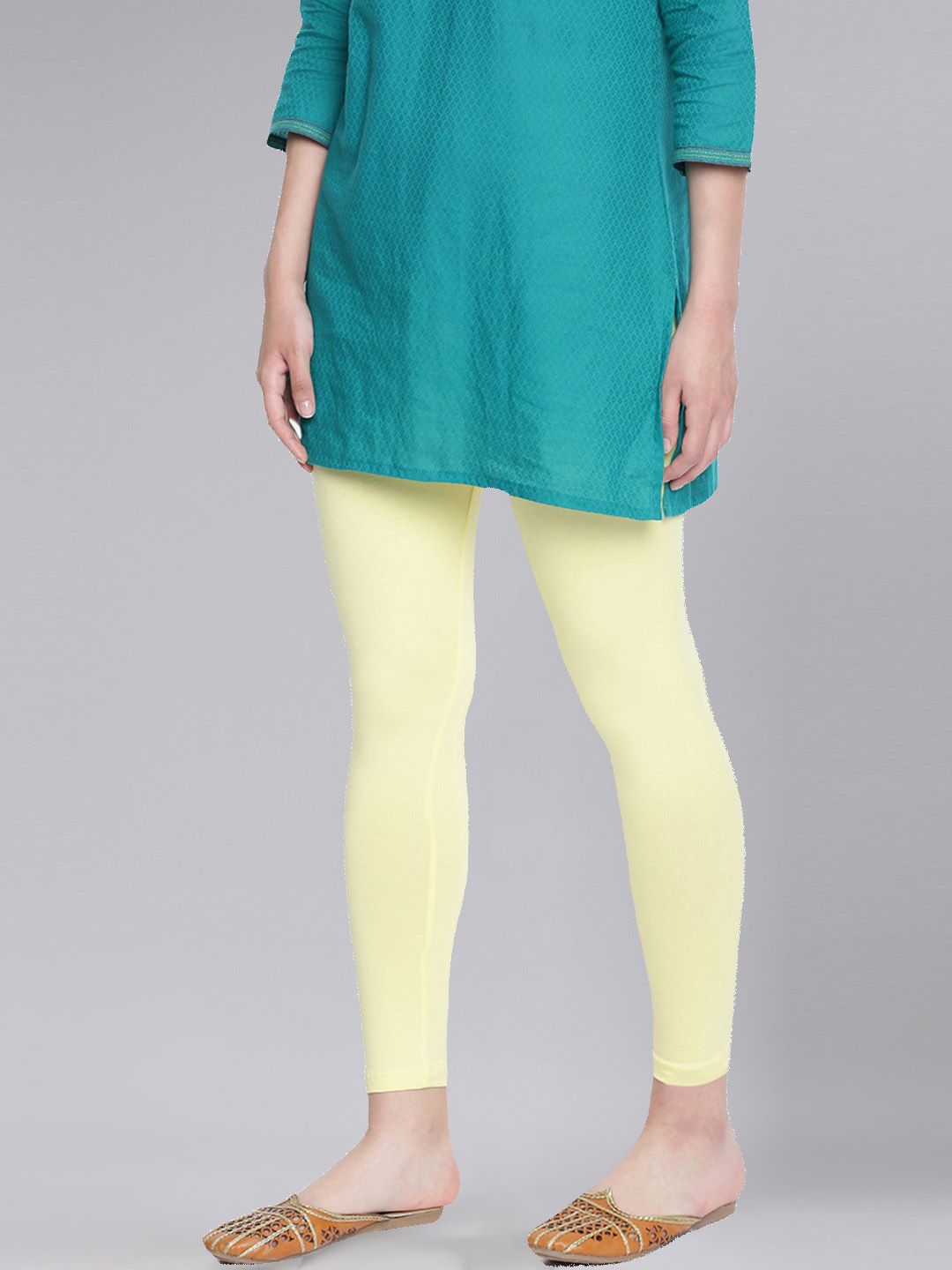 Pack of two solid slim-fit ankle-length leggingsPurple solid slim-fit ankle-length leggings, has an elasticated waistband, and slip-on closureYellow solid slim-fit ankle-length leggings, has an elasticated waistband, and slip-on closureFeatures:Flexibility and comfortFour-way stretch technologyMoisture absorbentLabel-freeShape-retain technology