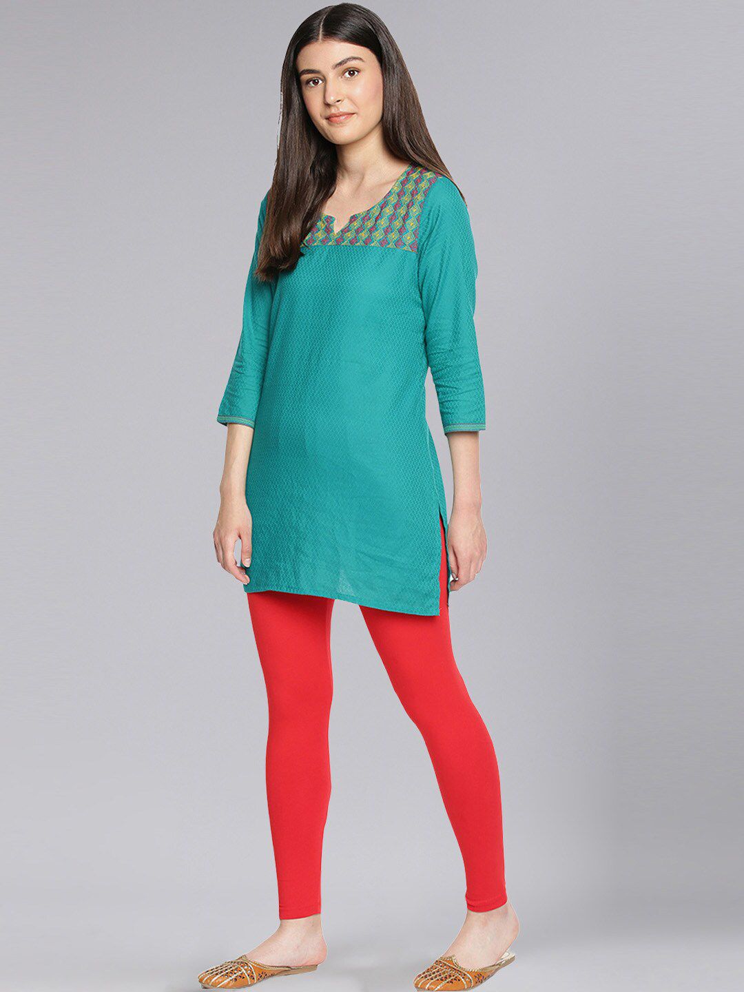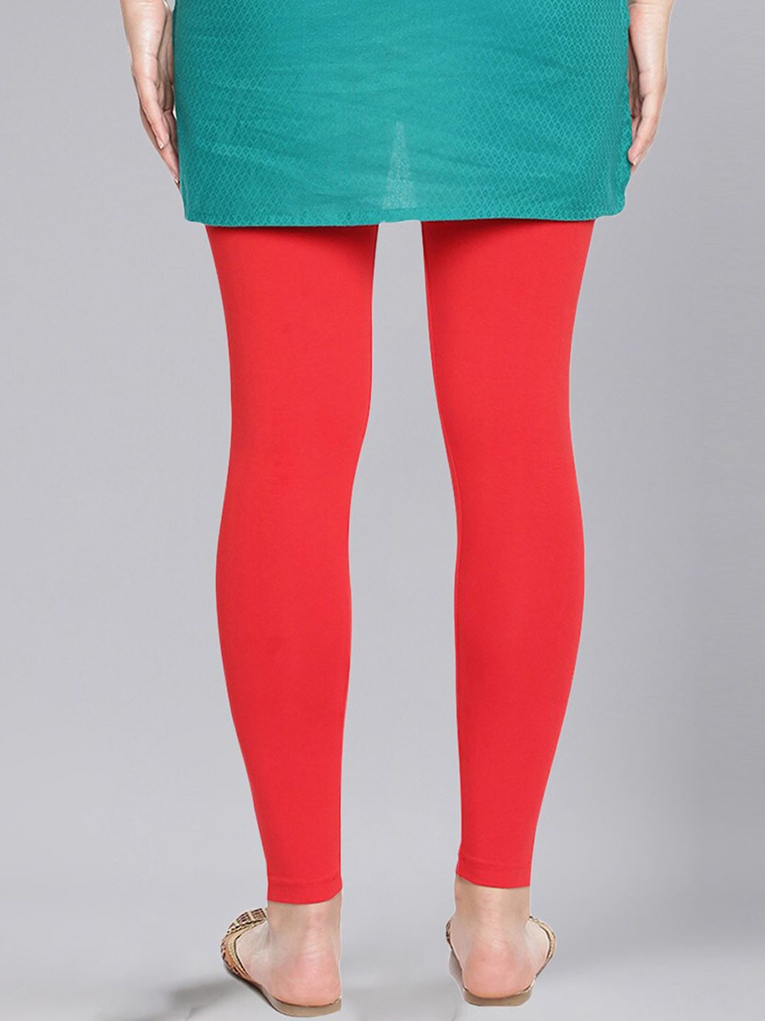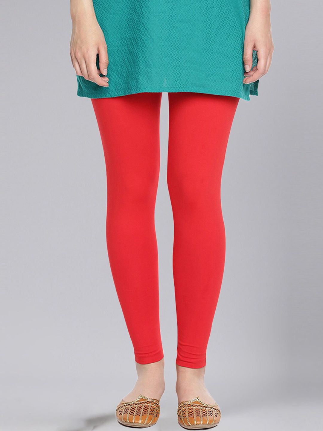 Pack of two solid slim-fit ankle-length leggingsBlue solid slim-fit ankle-length leggings, has an elasticated waistband, and slip-on closureRed solid slim-fit ankle-length leggings, has an elasticated waistband, and slip-on closureFeatures:Flexibility and comfortFour-way stretch technologyMoisture absorbentLabel-freeShape-retain technology