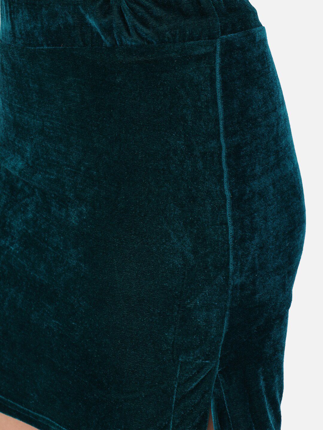 Green solid mid-rise pencil mini skirt has an elasticated waistband with a slip-on closure, straight hem