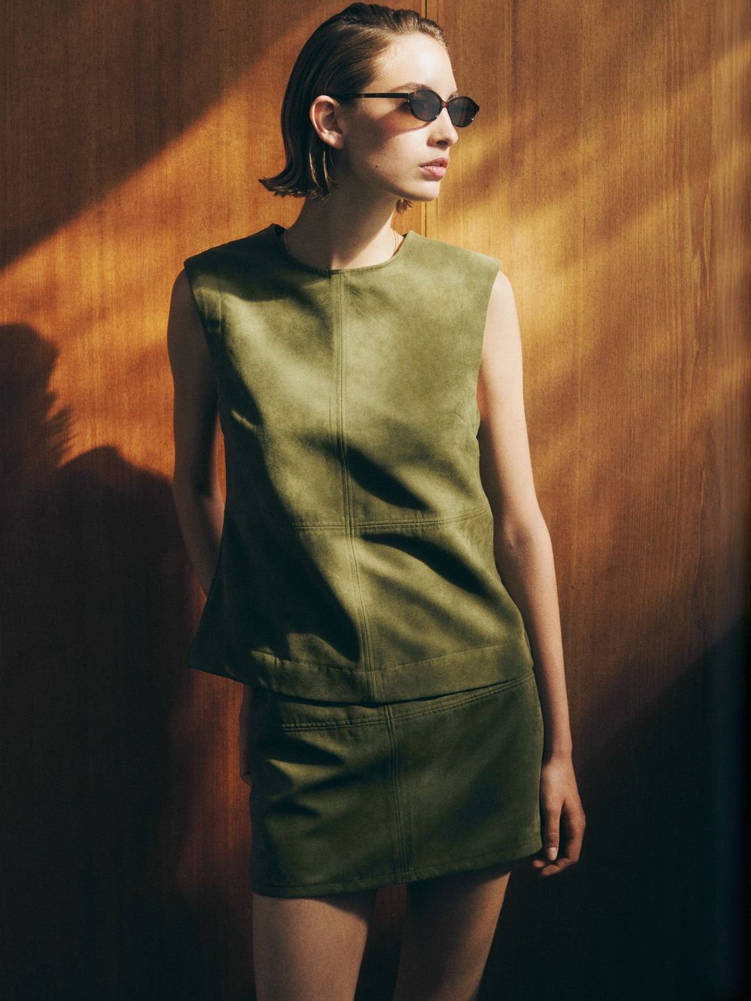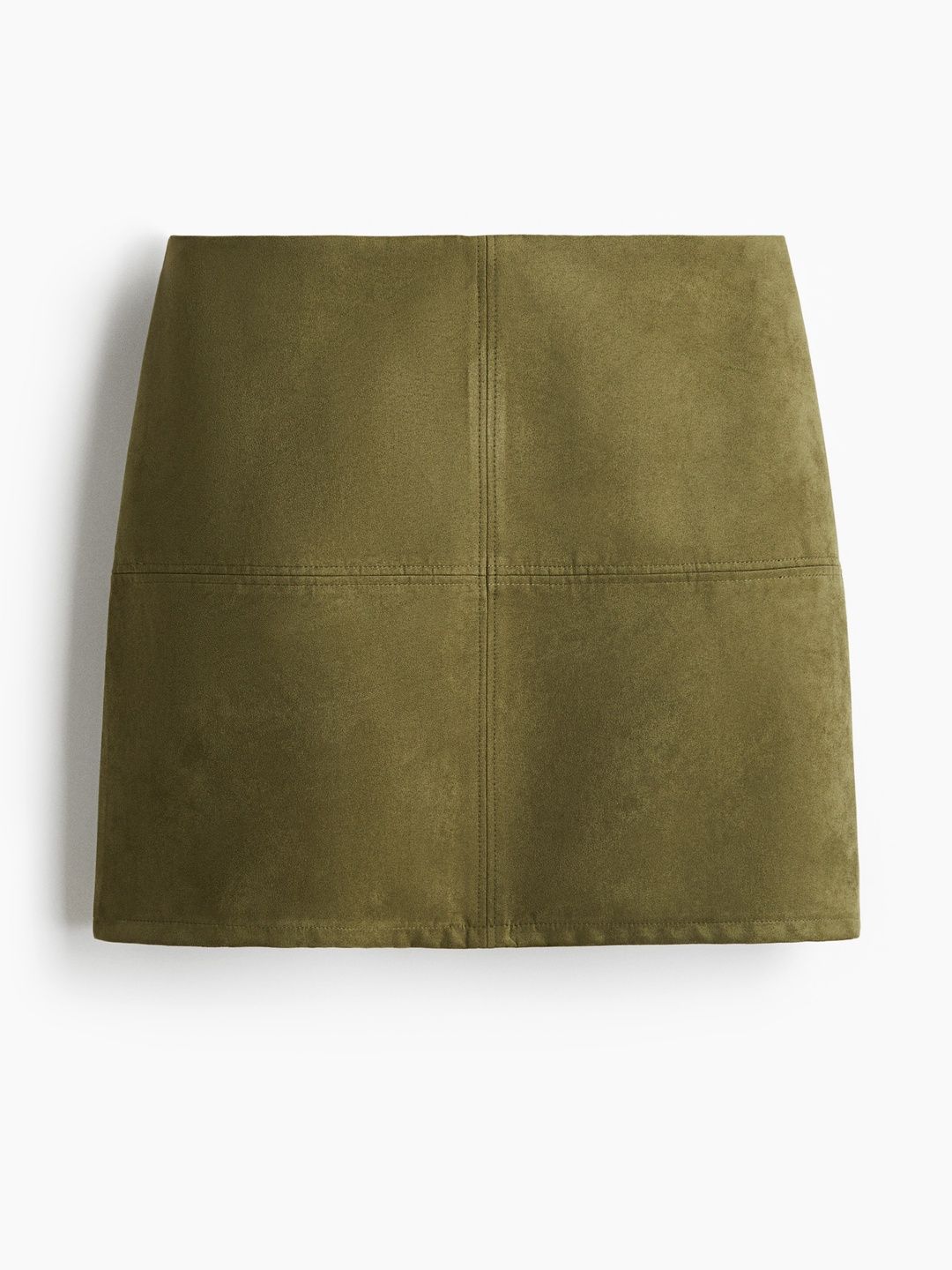 Mini skirt in jersey with a soft, napped finish and visible seams at the front. High waist with shaping darts at the back and a concealed zip and button at one side.