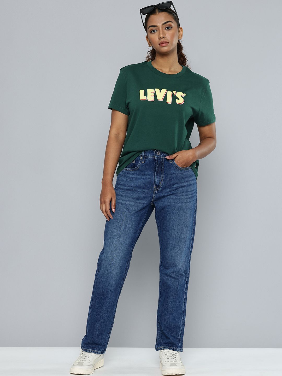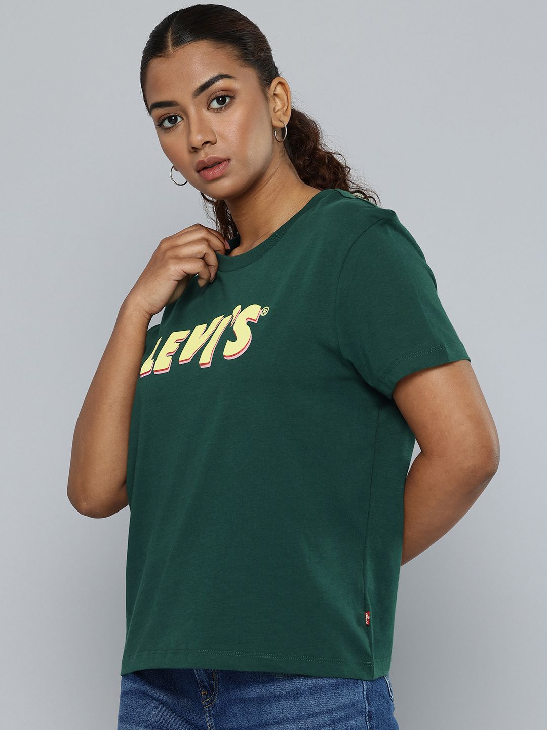 Every woman's wardrobe needs a dependable t-shirt, and this green t-shirt delivers! With a crew neck and short sleeves, this Levi's t-shirt exudes charm. Effortlessly cool, it's guaranteed to elevate your casual wardrobe like no other.1. Style it with your favourite jeans for a cool funky look.2. Made from comfortable pure cotton3. Cut in a flattering relaxed fit