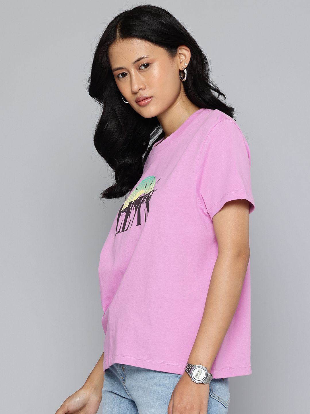 Every woman's wardrobe needs a dependable T-shirt, and this purple t-shirt delivers! With a crew neck and short sleeves, this Levi's t-shirt exudes charm. Effortlessly cool, it's guaranteed to elevate your casual wardrobe like no other.1. Style it with your favourite jeans for a cool funky look.2. Made from comfortable pure cotton3. Cut in a flattering relaxed fit