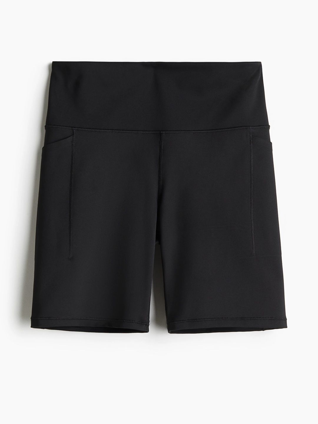 Sports cycling shorts in DryMove functional fabric that helps to wick away moisture from your skin, keeping you comfortably dry while you move. High waist with a wide waist panel and an open pocket on one leg for easy access to your mobile phone or keys.