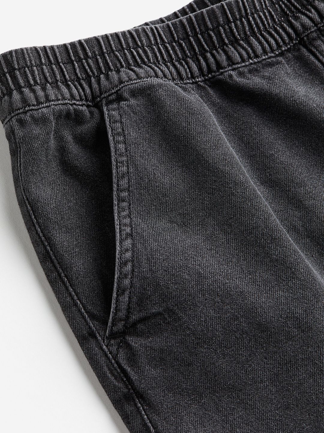 Loose-fit shorts in cotton denim with elasticated smocking at the waist and diagonal front pockets.