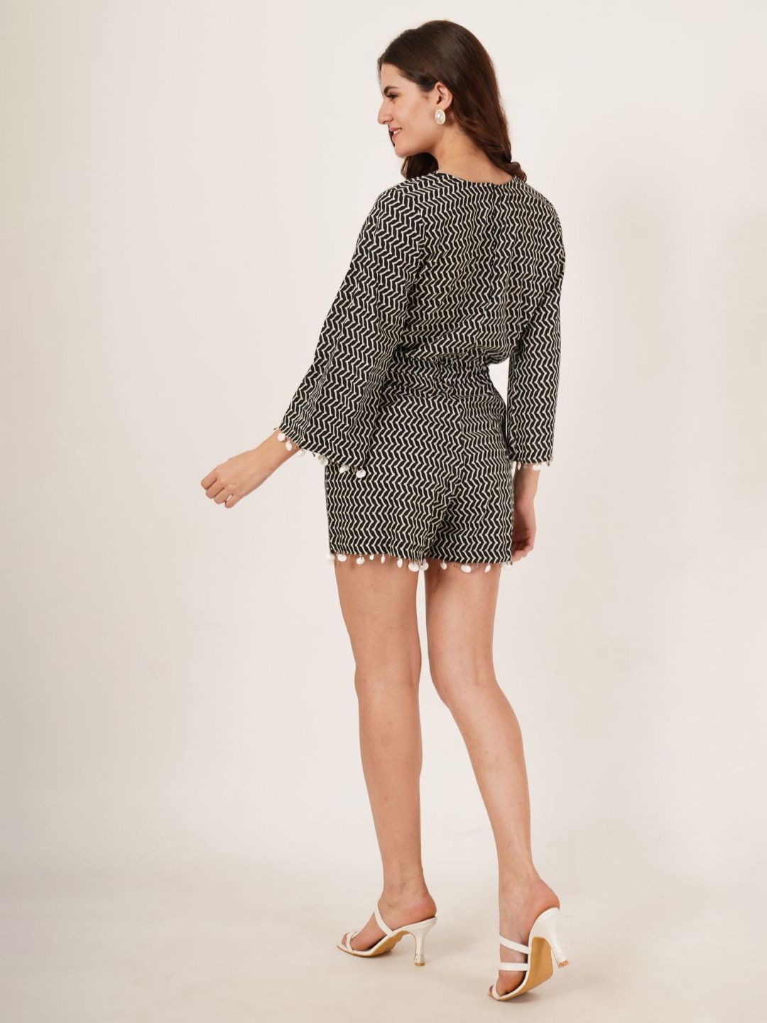 The bold pattern and relaxed fit make this playsuit a standout piece. Its lightweight fabric ensures comfort, while the intricate details add a touch of elegance.