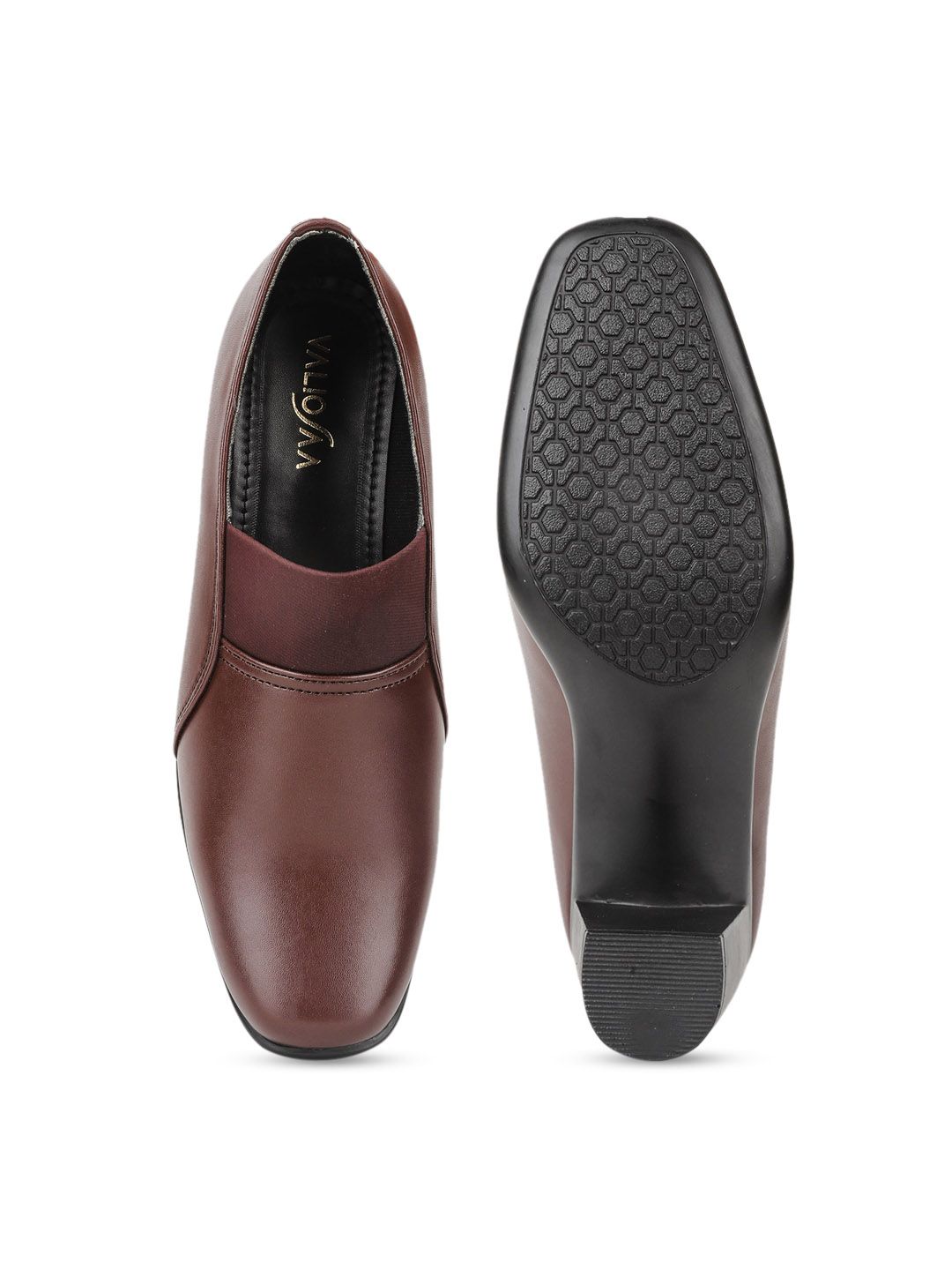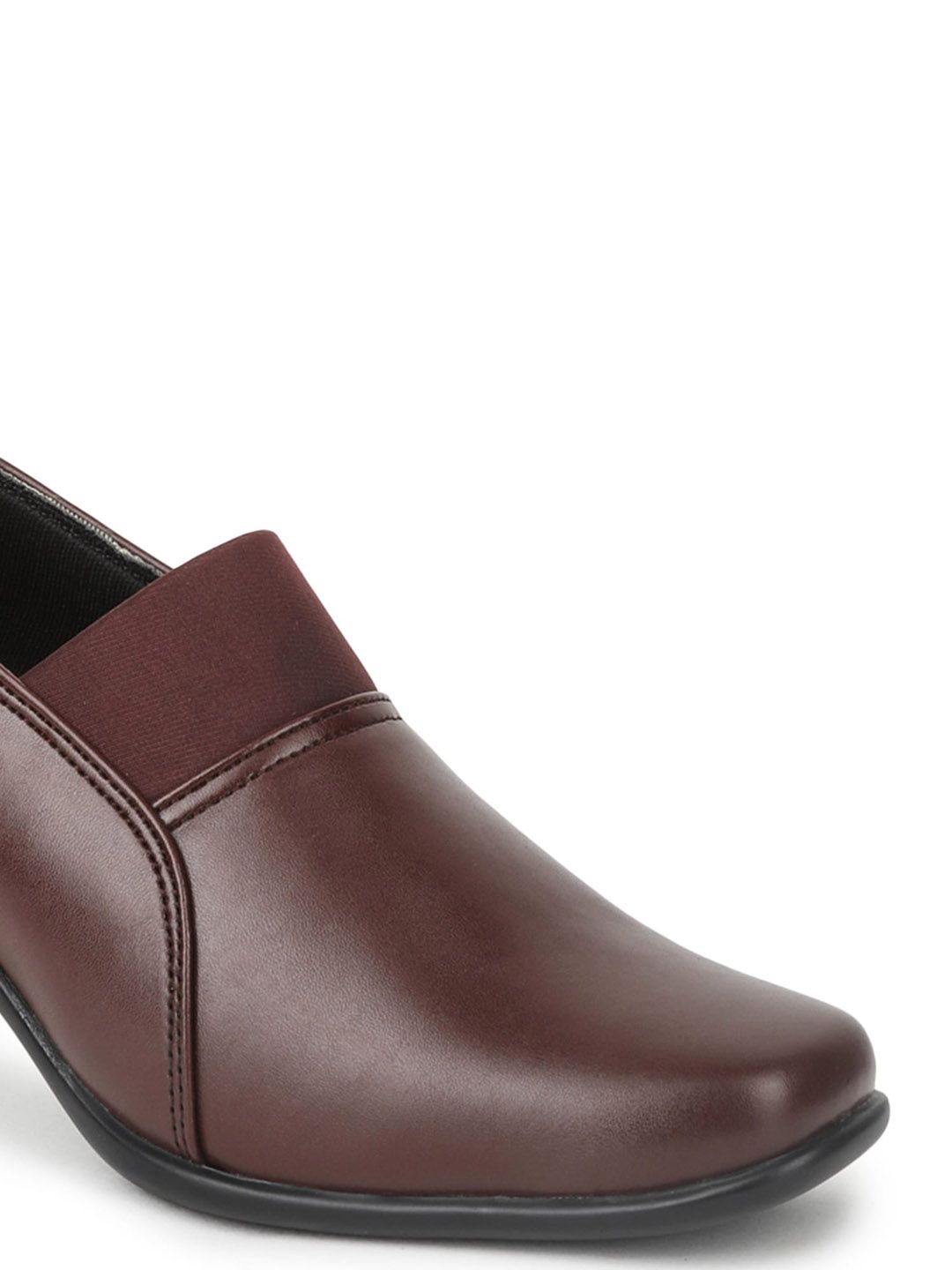 A pair of brown square-toe solid boots, has slip-on fasteningsSynthetic upperCushioned footbedTextured and patterned PU outsoleHeel height: 3 inchesWarranty: Limited warranty against manufacturing defectsWarranty provided by Brand Owner / Manufacturer