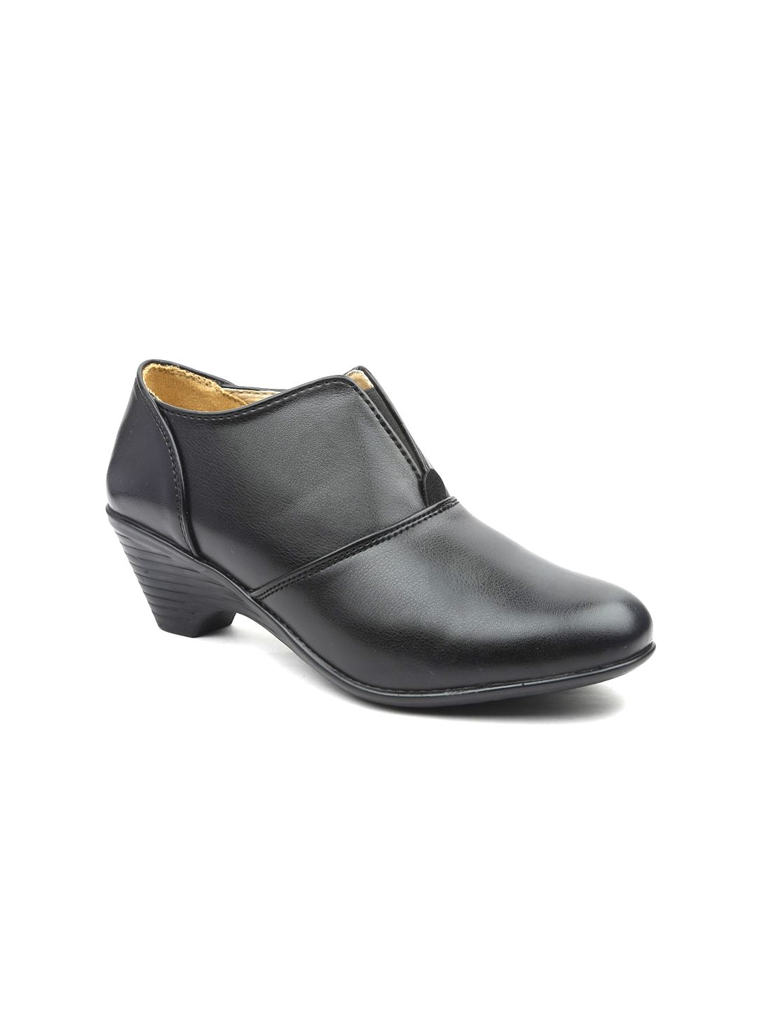 A pair of Black solid pointed toe boots ,has mid-top styling and lace-ups detailSynthetic upperCushioned footbedPU outsole