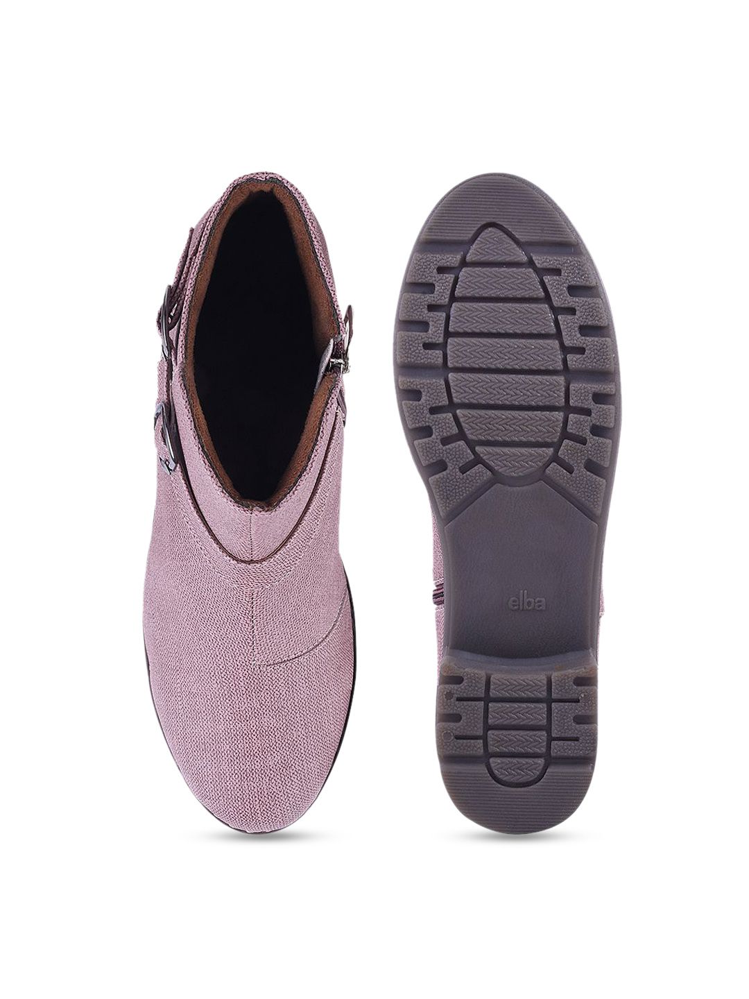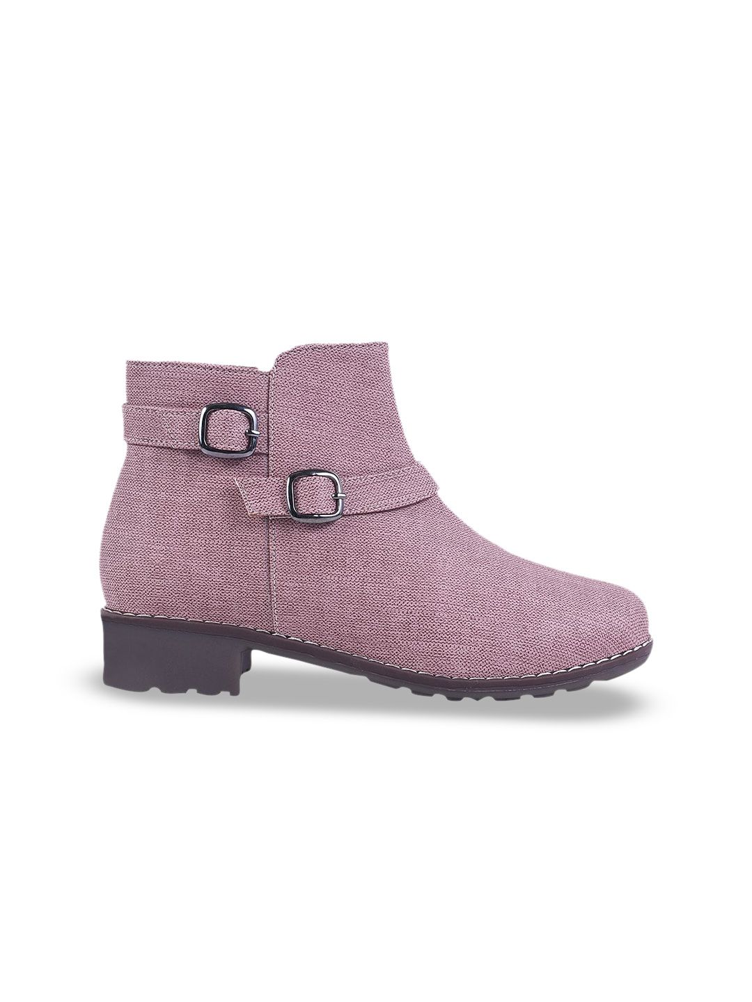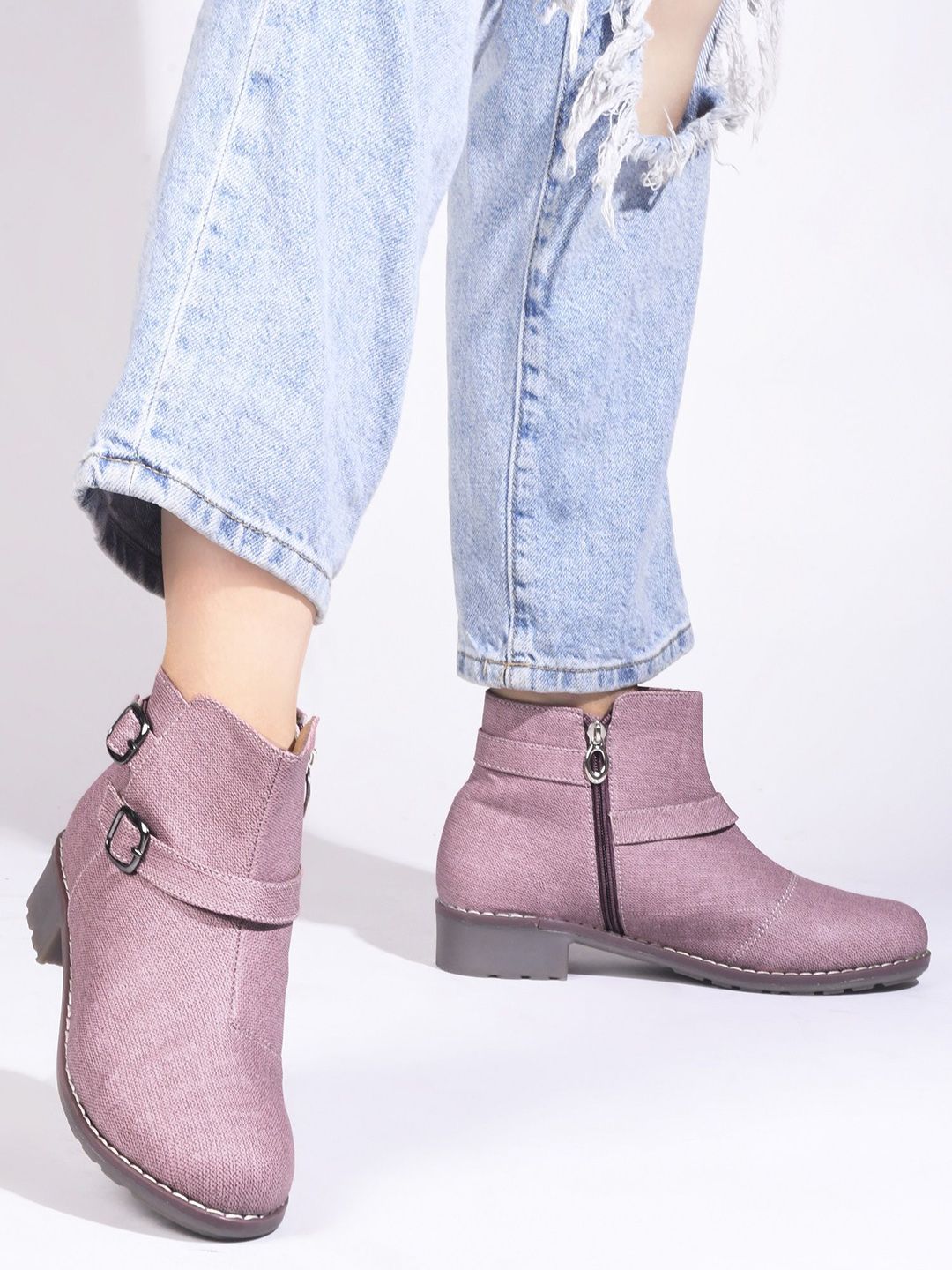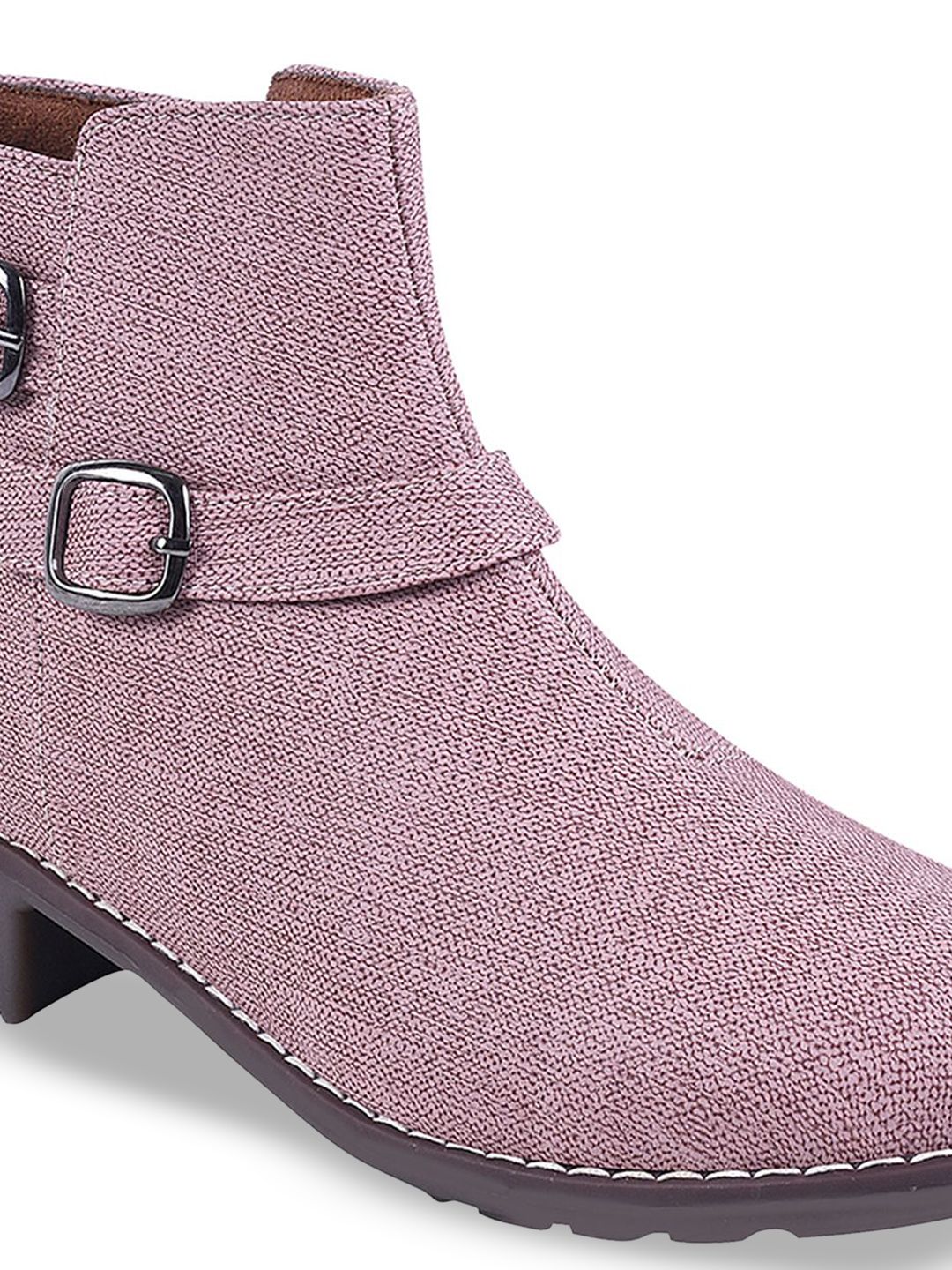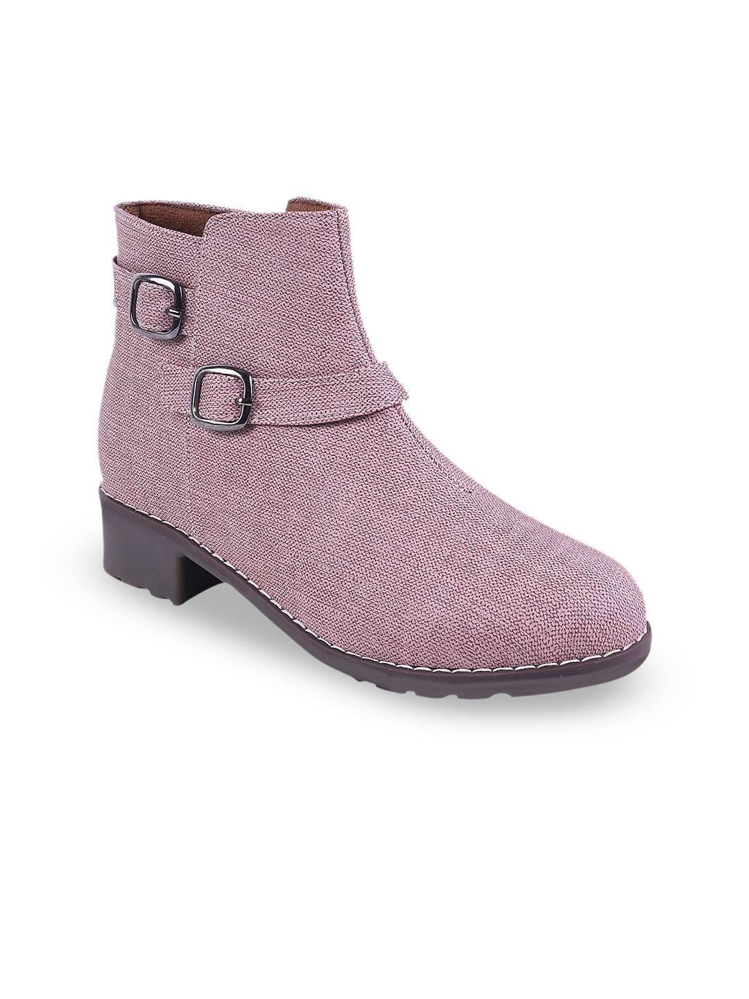 A pair of nude regular boots, has mid-top ankle and zip-on fastening and back detailCanvas Solid upper materialCushioned footbedTextured and patterned TPR outsole, has a block-heeled