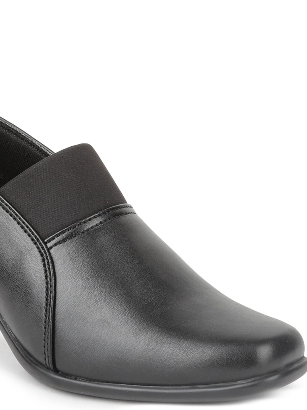 A pair of black square toe heeled boots, has regular styling, slip-on detailSynthetic upperCushioned footbedPU outsole, has a 3 inches block heel heightWarranty: limited warrantyWarranty provided by brand/manufacturer