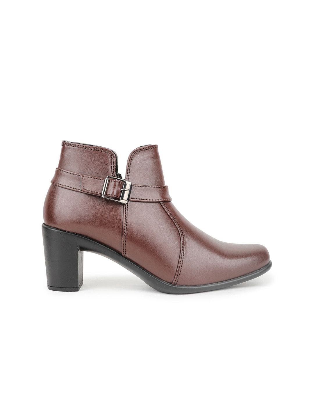 A pair of Brown solid Square toe Cow Boy boots has mid-top Buckle Detail styling and Slip on detailSynthetic upperCushioned footbedSynthetic outsoleWarranty: Limited WarrantyWarranty provided by brand/manufacturer