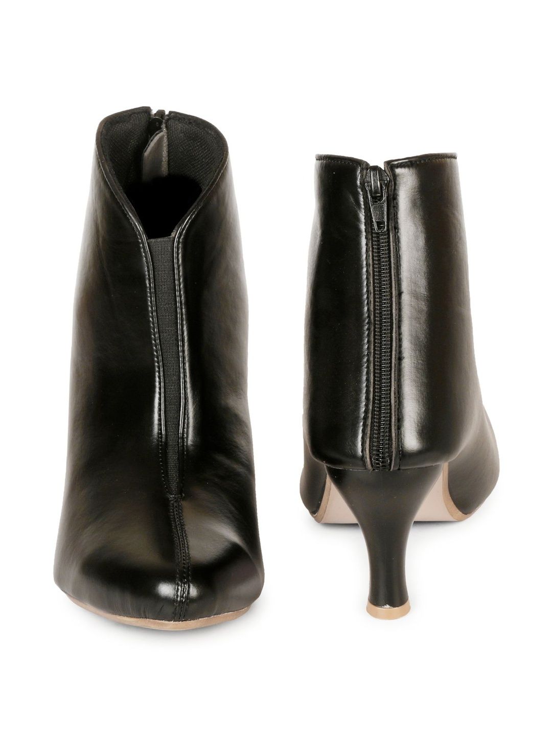 A pair of Black cowboy boots, has high-top ankle and zip fastening and back detailpu Solid upper materialCushioned footbedTextured and patterned rubber outsole, has a stiletto
