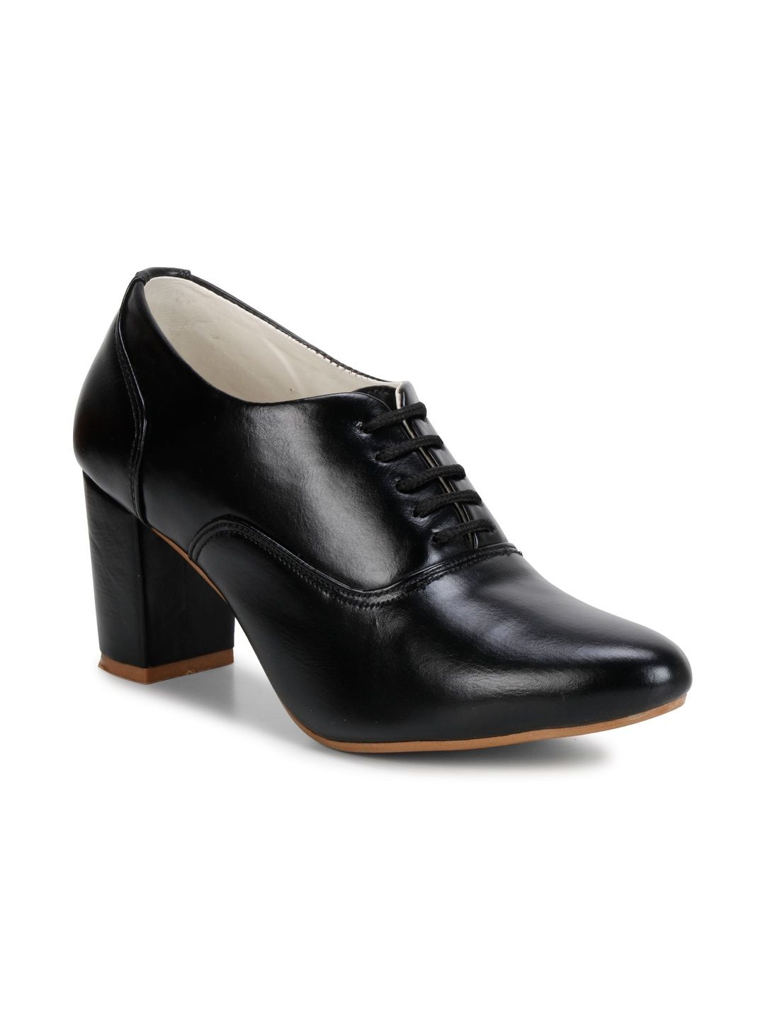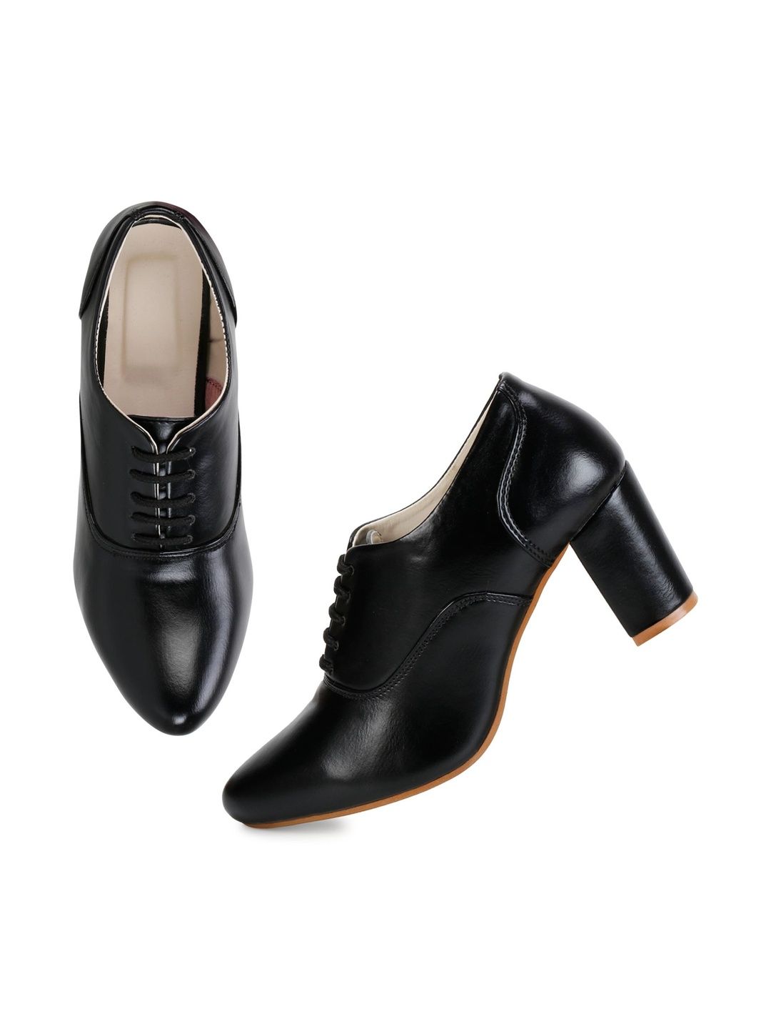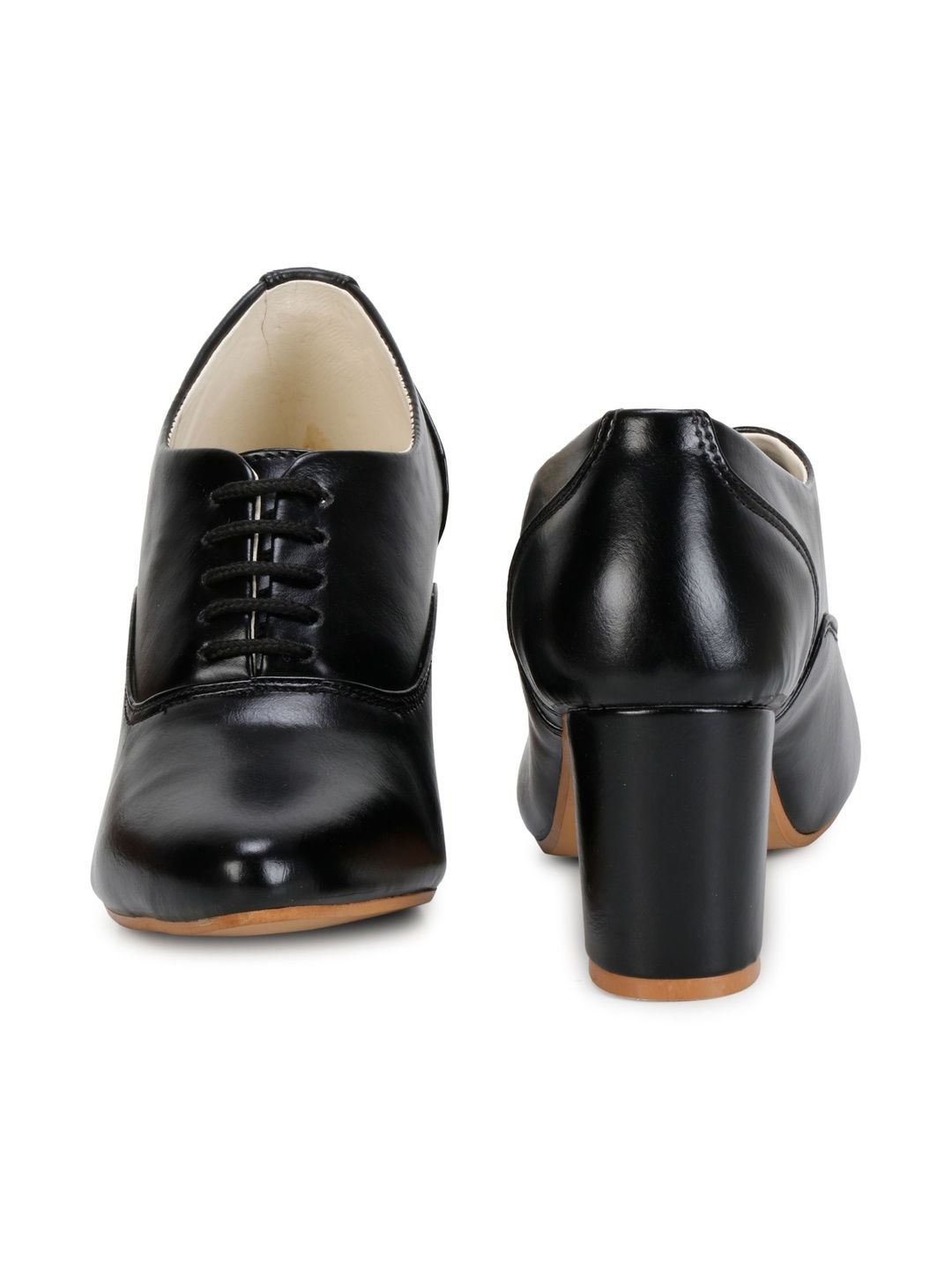 A pair of black cowboy boots, has regular ankle and lace-ups fastening and back detailPu solid upper materialCushioned footbedTextured and patterned rubber outsole, has a block heels
