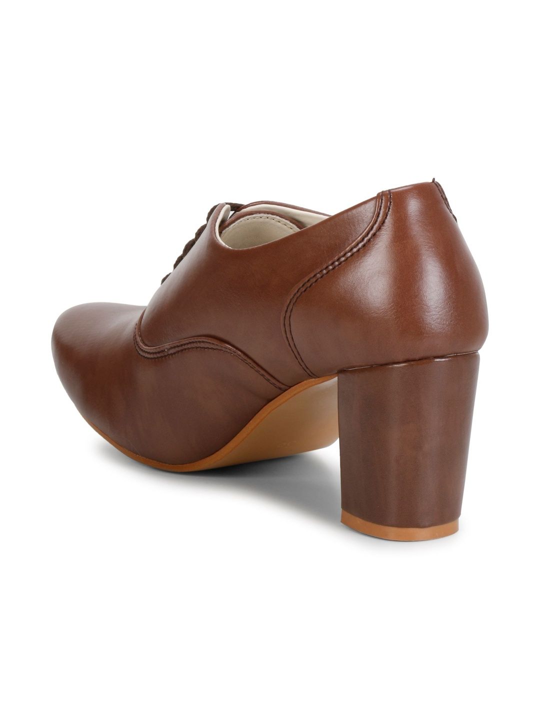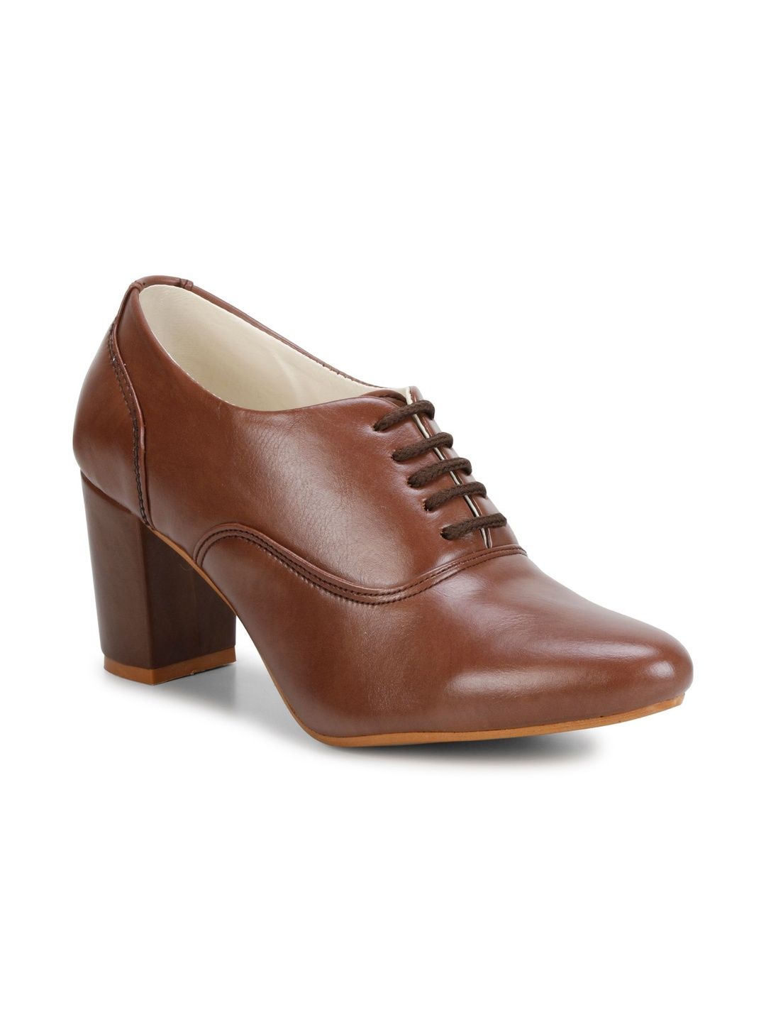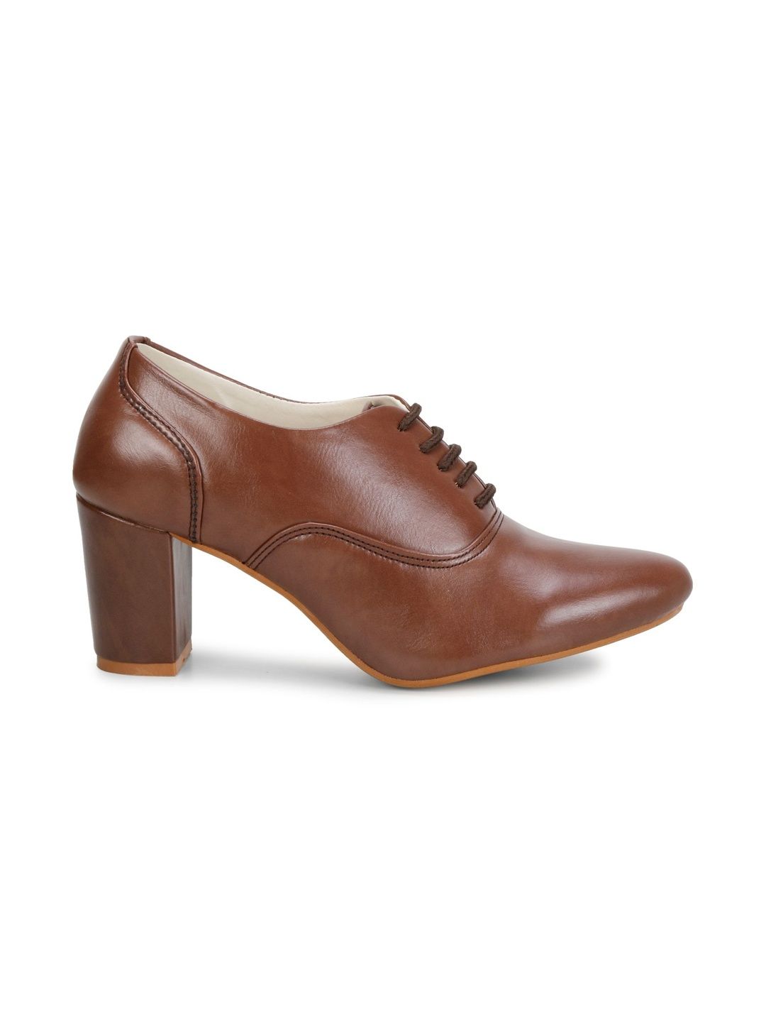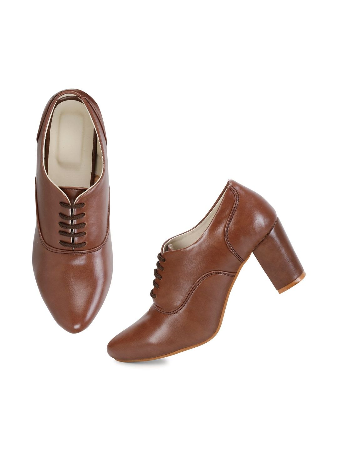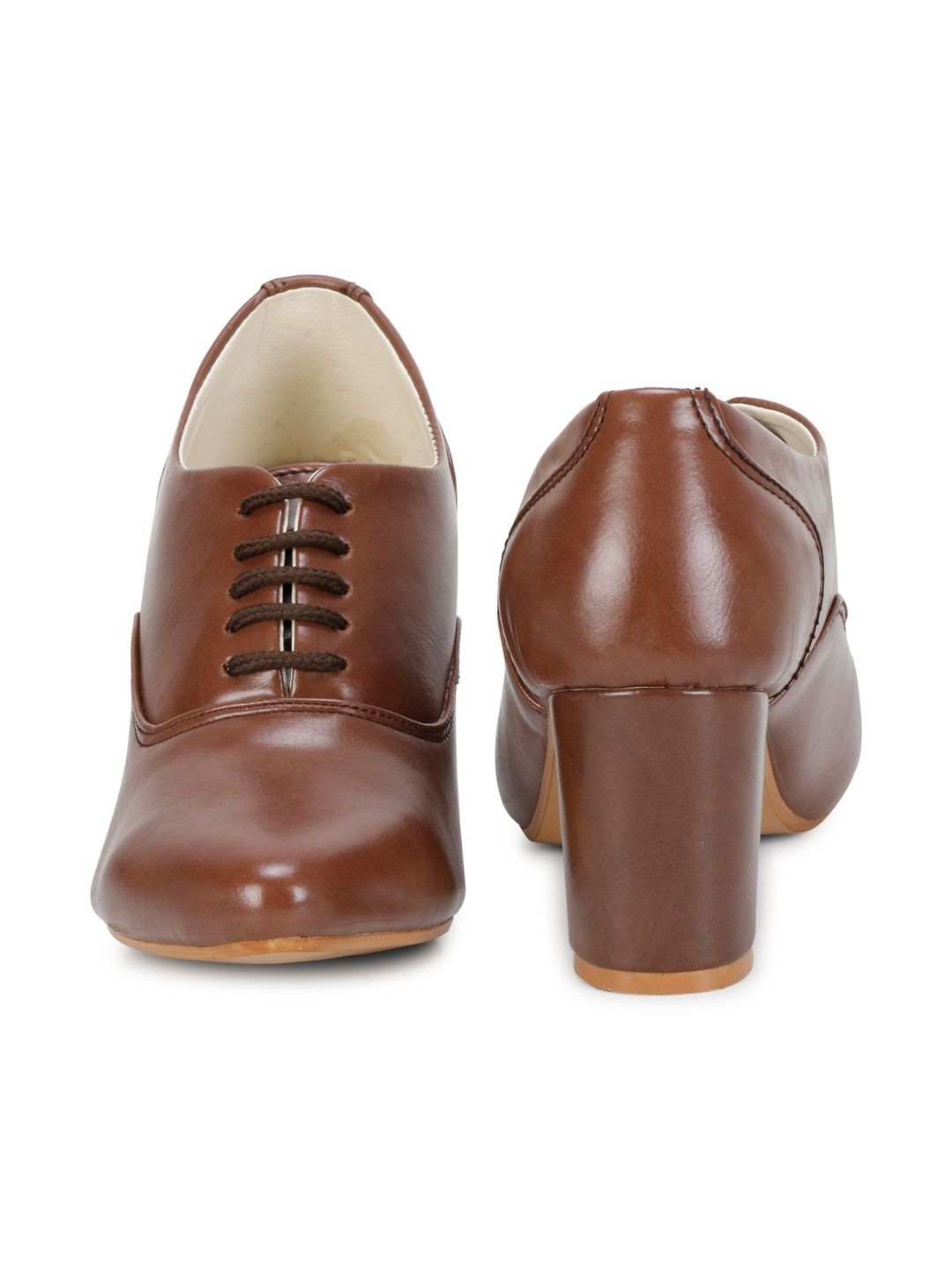 A pair of brown cowboy boots, has regular ankle and lace-ups fastening and back detailPu solid upper materialCushioned footbedTextured and patterned rubber outsole, has a block heels