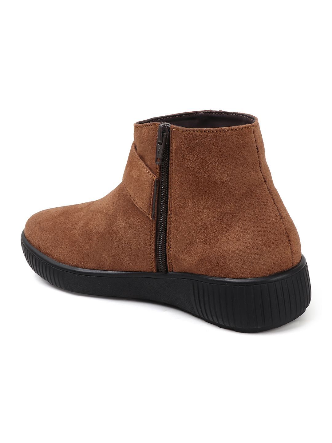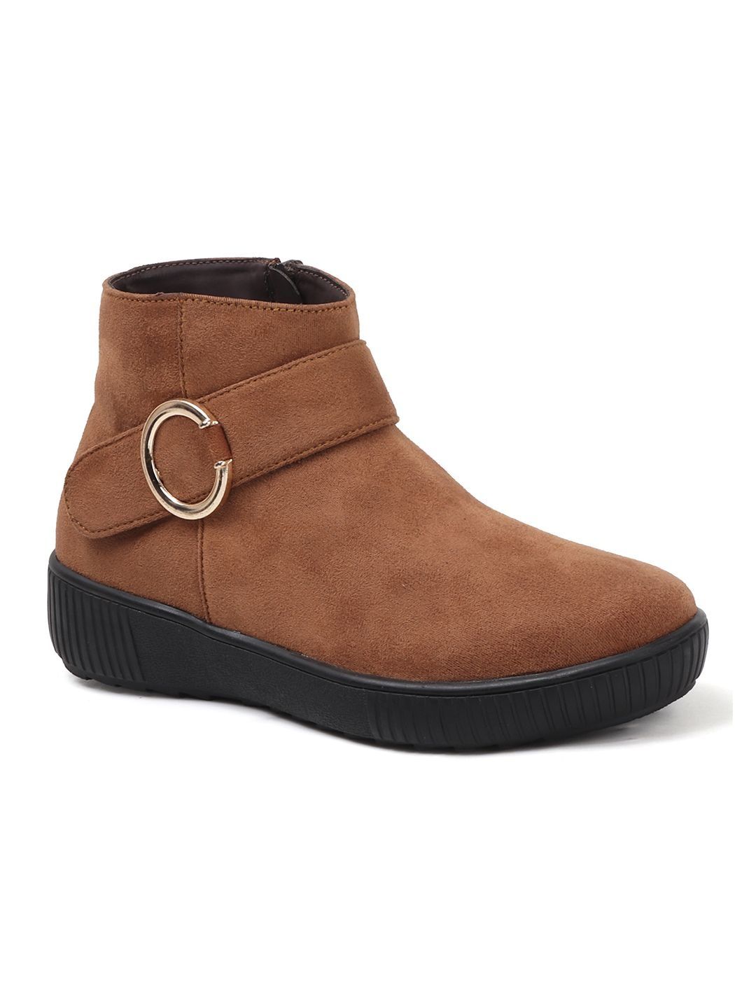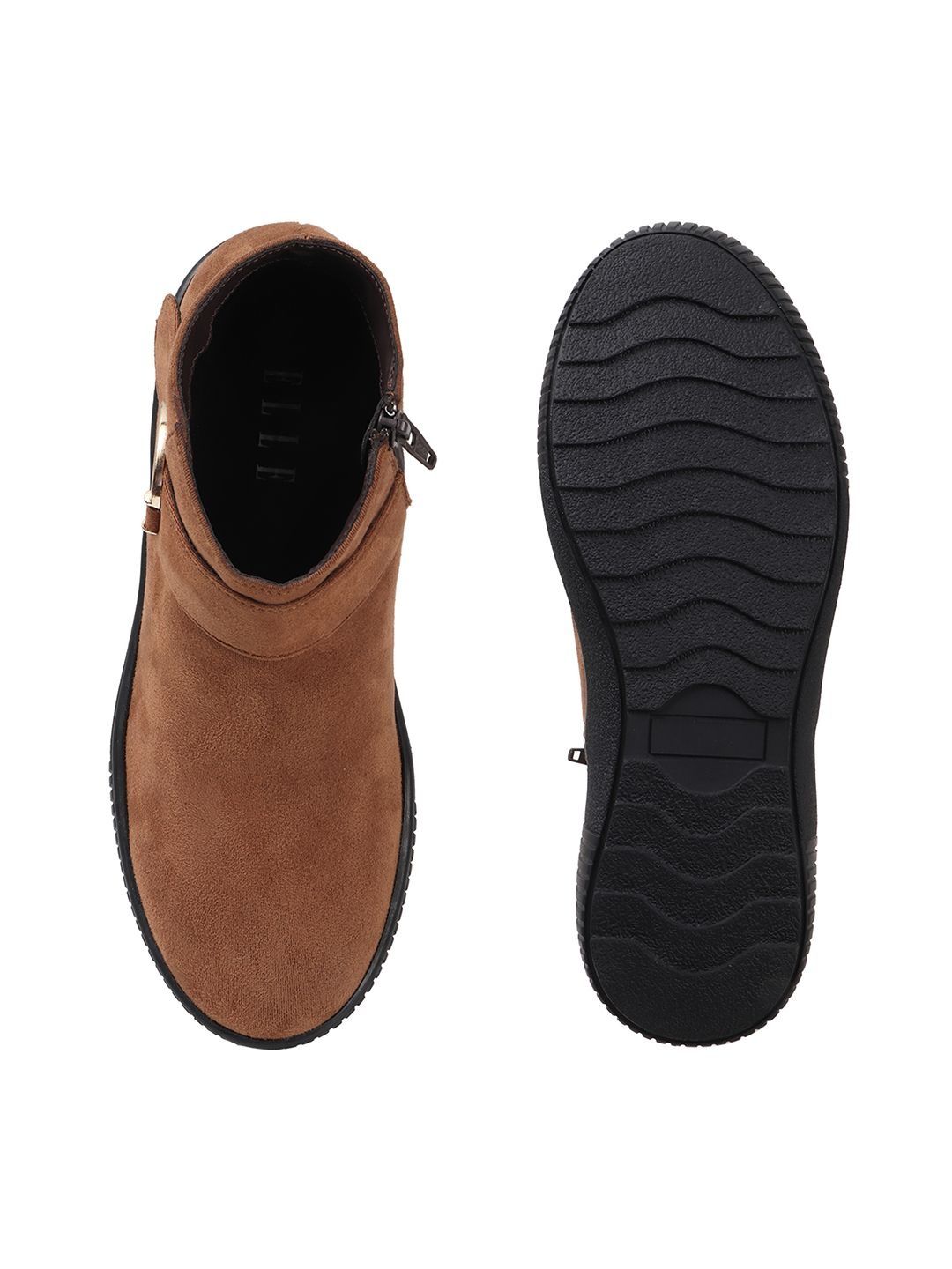 A pair of Brown boots, has mid-top ankle and slip-on fastening and back detailSynthetic Solid upper materialCushioned footbedTextured and patterned TPR outsole, has a block-heeledWarranty: 7 daysWarranty provided by brand/manufacturer