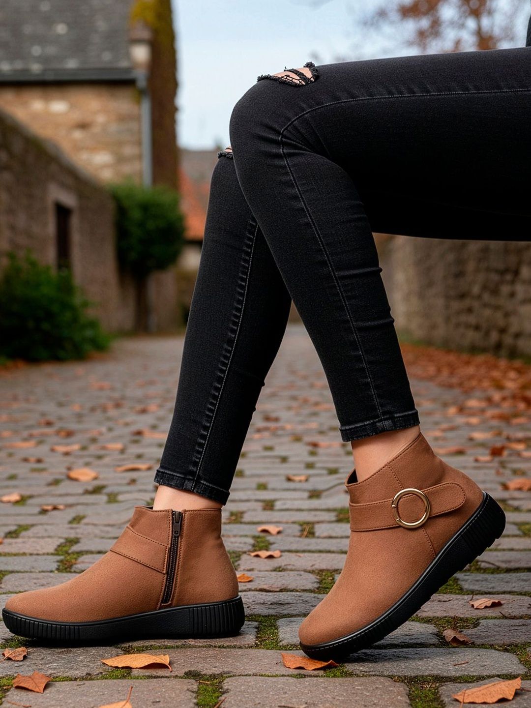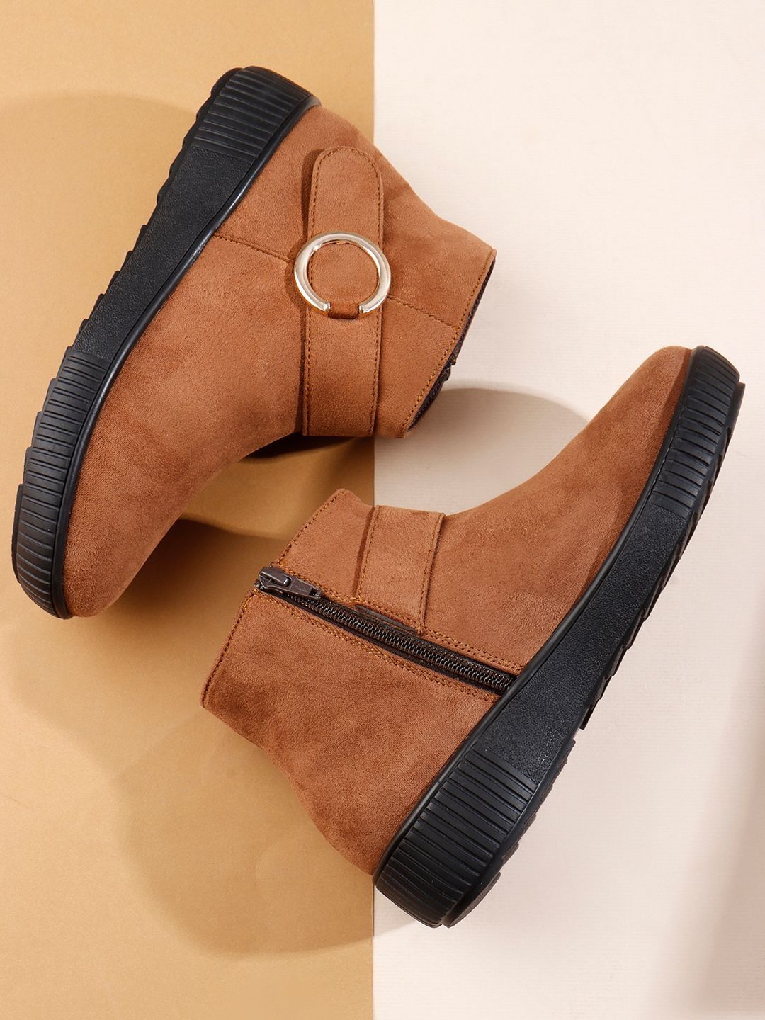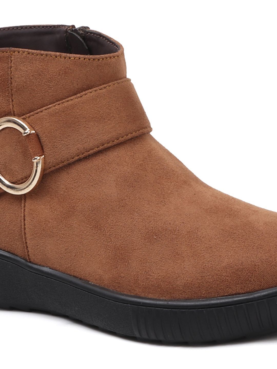 A pair of Brown boots, has mid-top ankle and slip-on fastening and back detailSynthetic Solid upper materialCushioned footbedTextured and patterned TPR outsole, has a block-heeledWarranty: 7 daysWarranty provided by brand/manufacturer