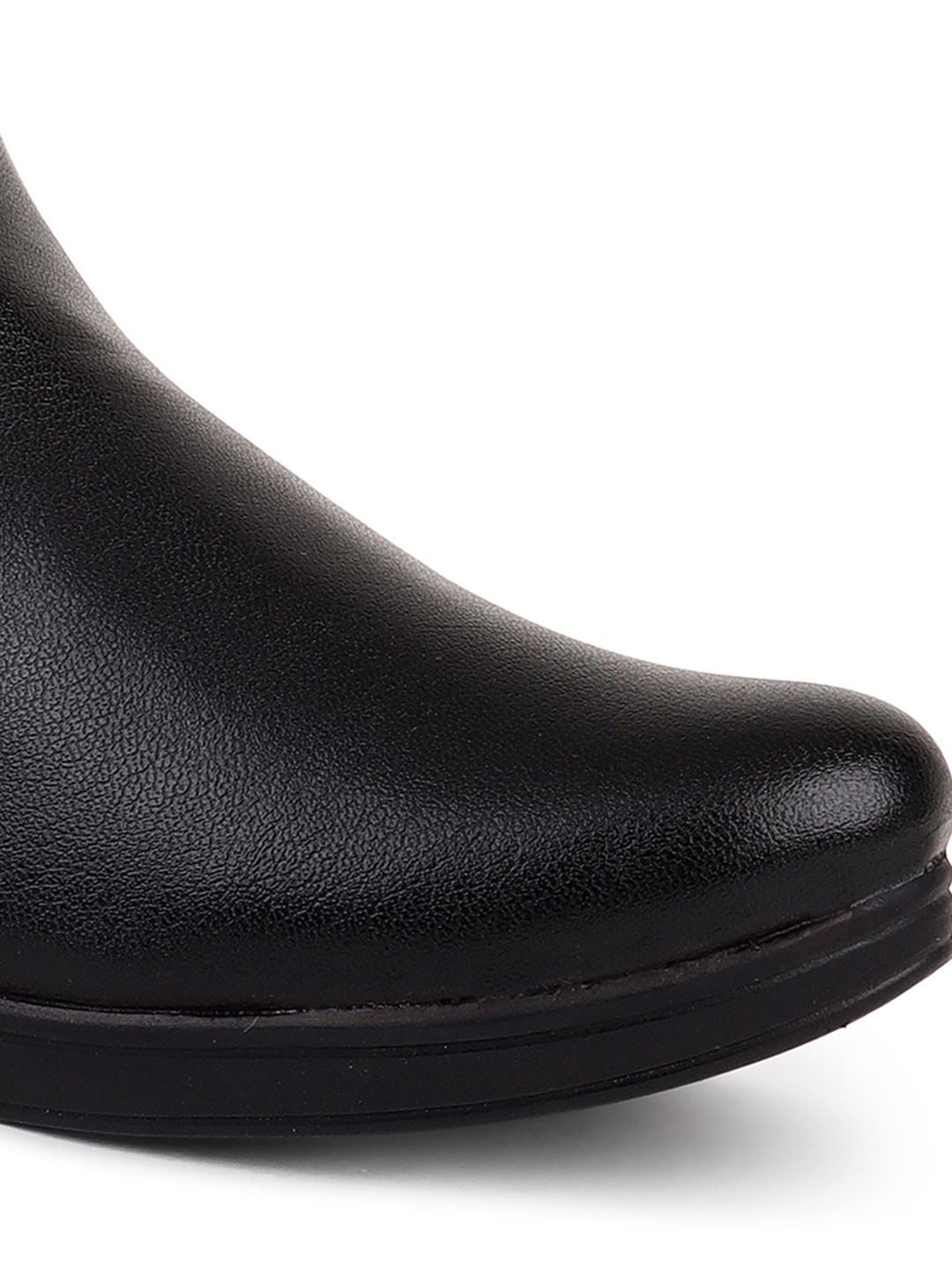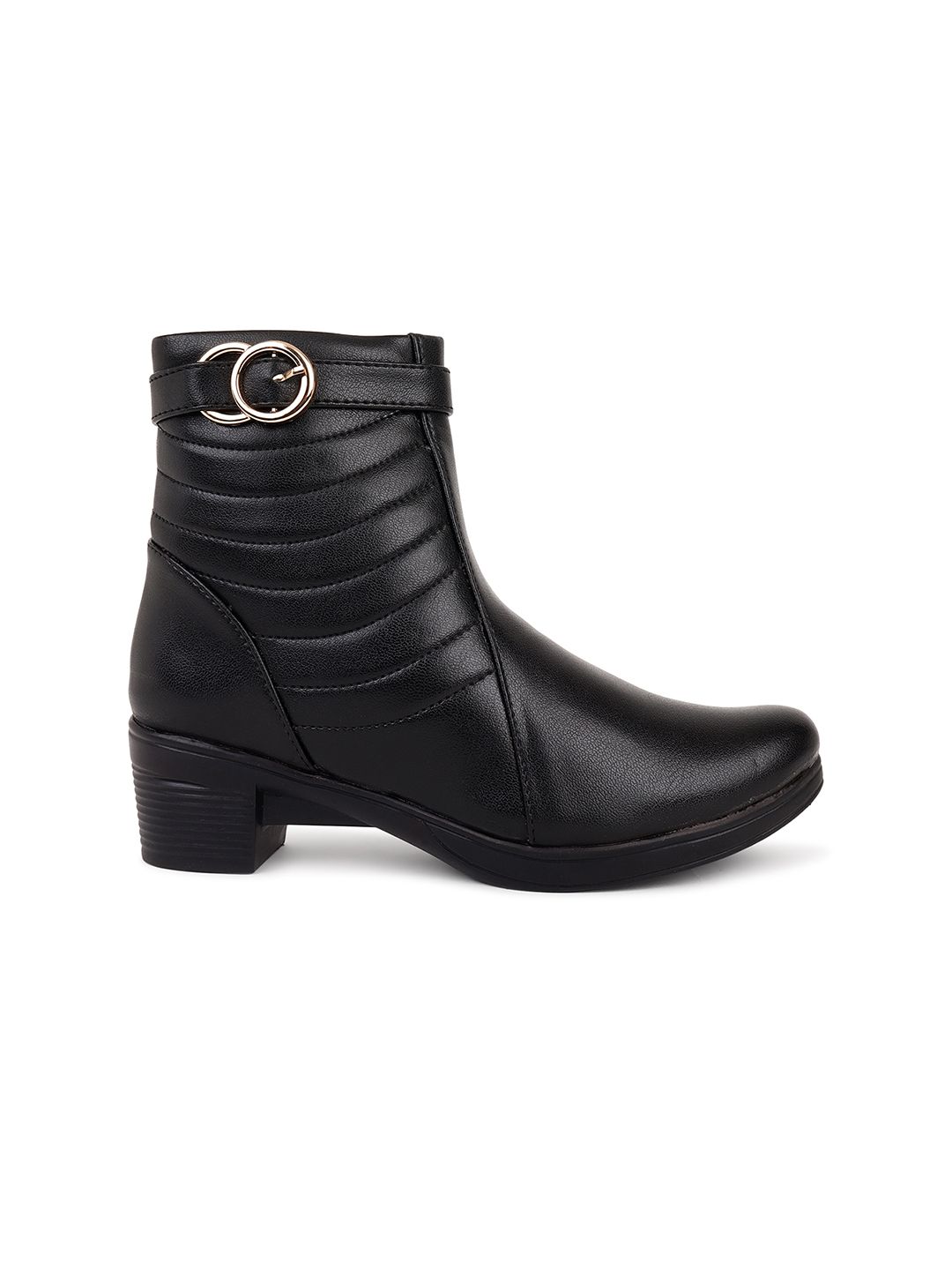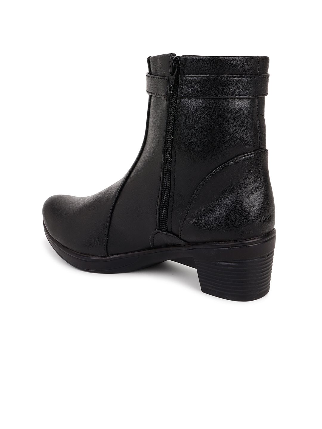 A pair of black solid pointed-toe ankle high heel boots ,has mid-top styling and buckle detail Synthetic Leather upperWarranty: 1 month WarrantyWarranty provided by brand/manufacturer