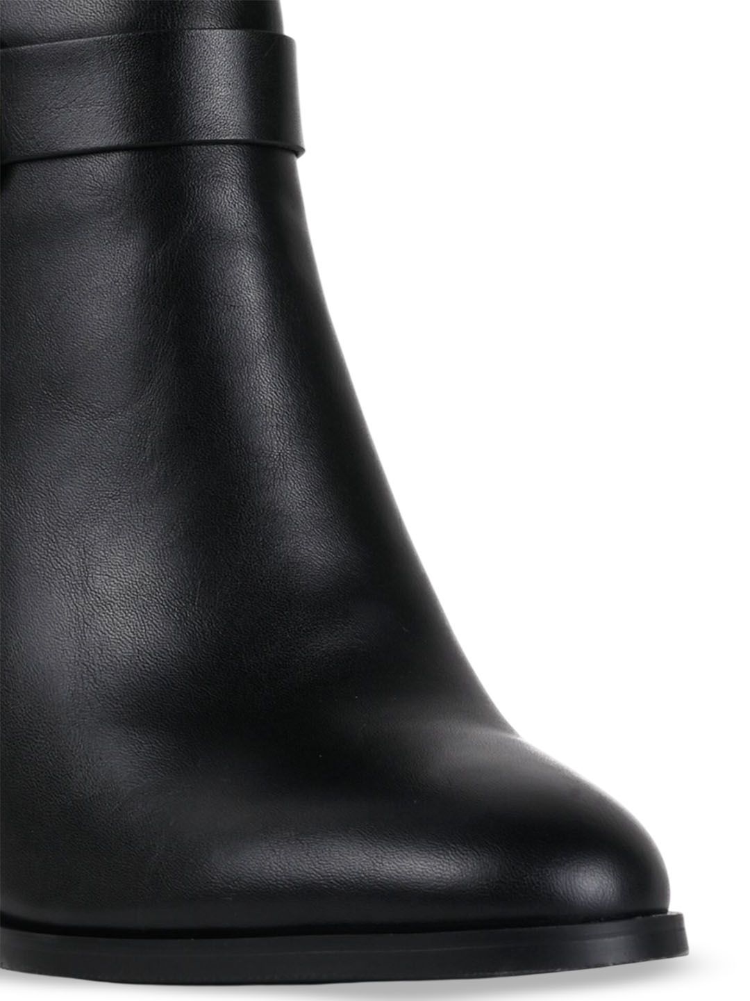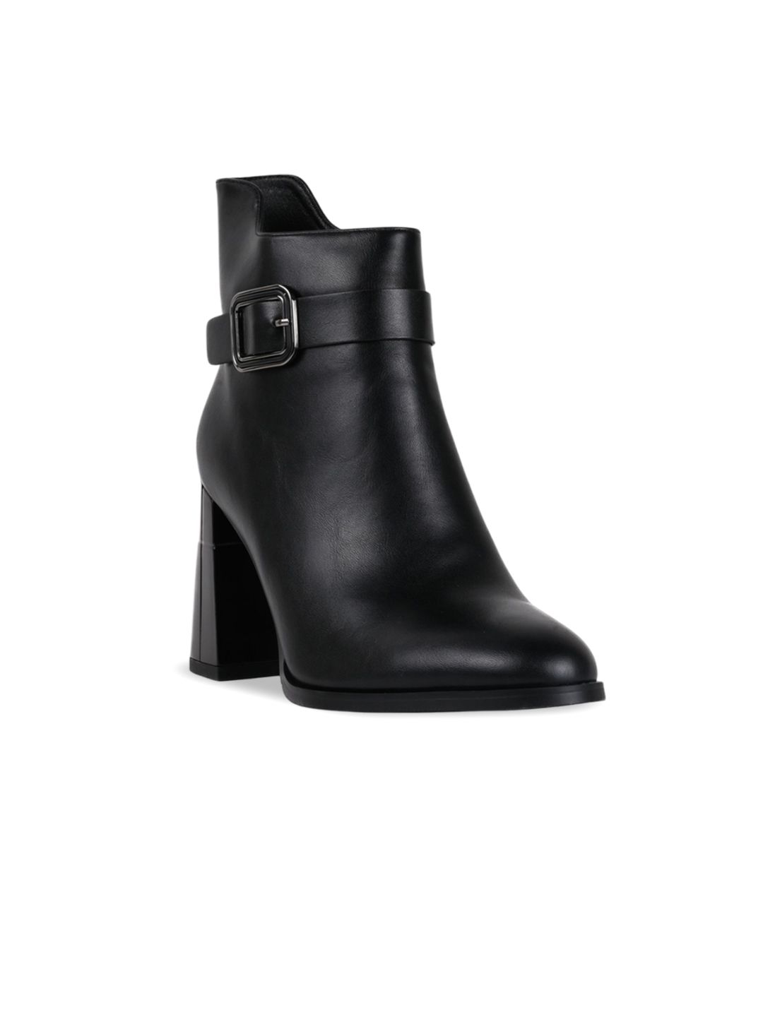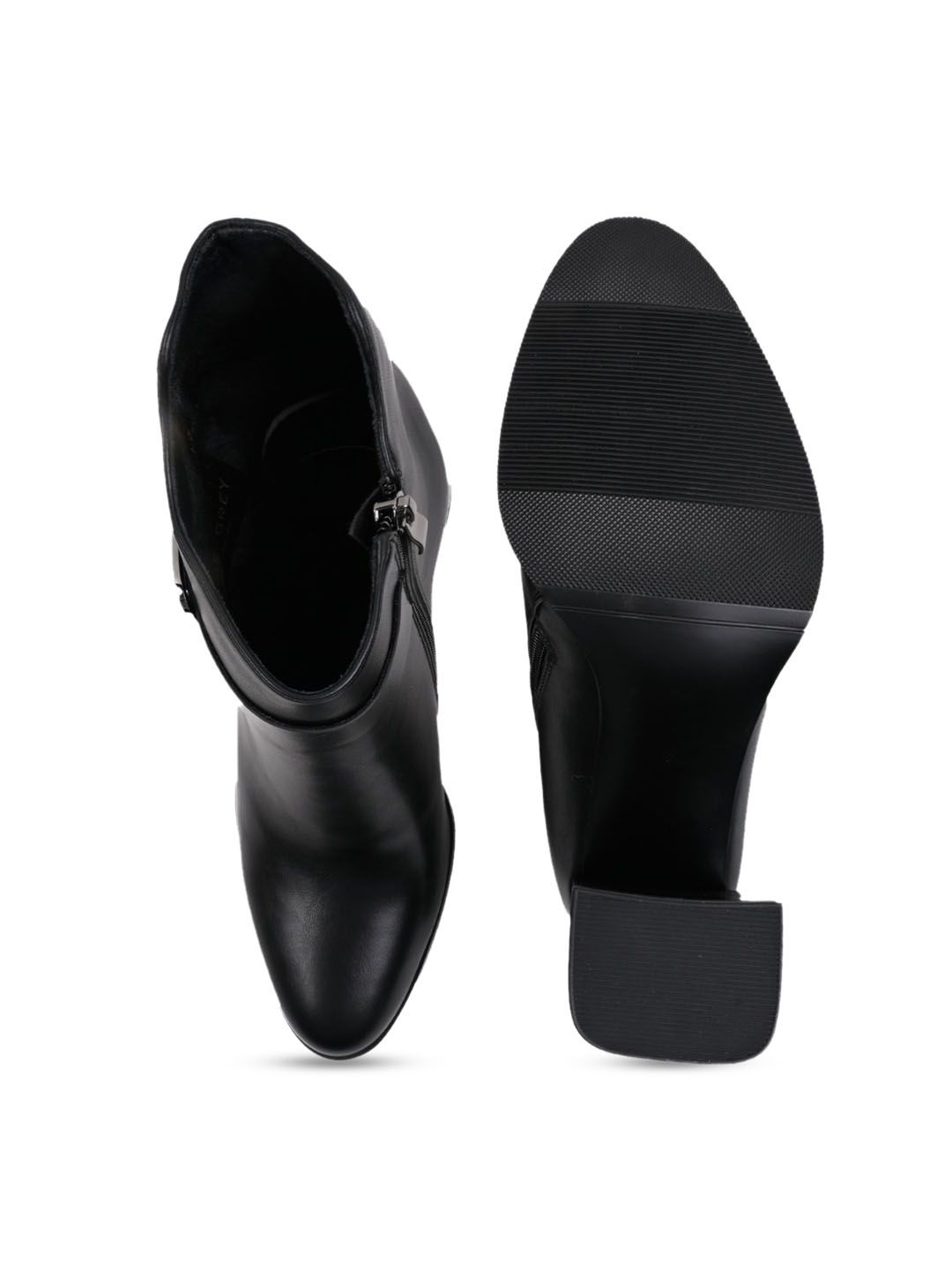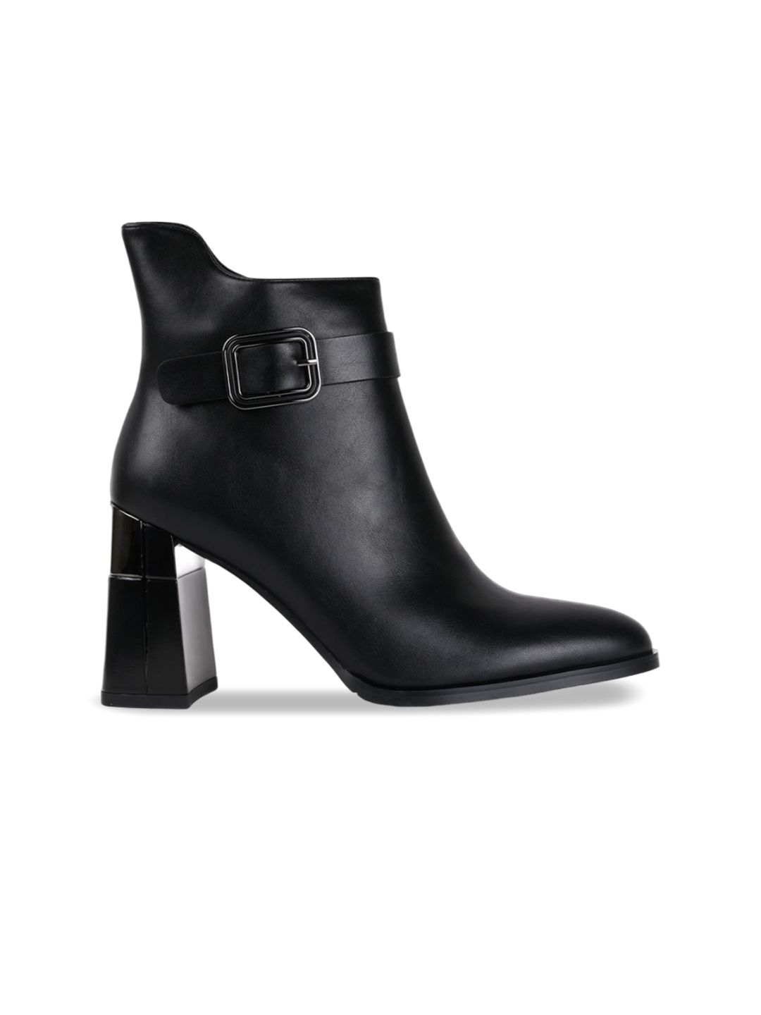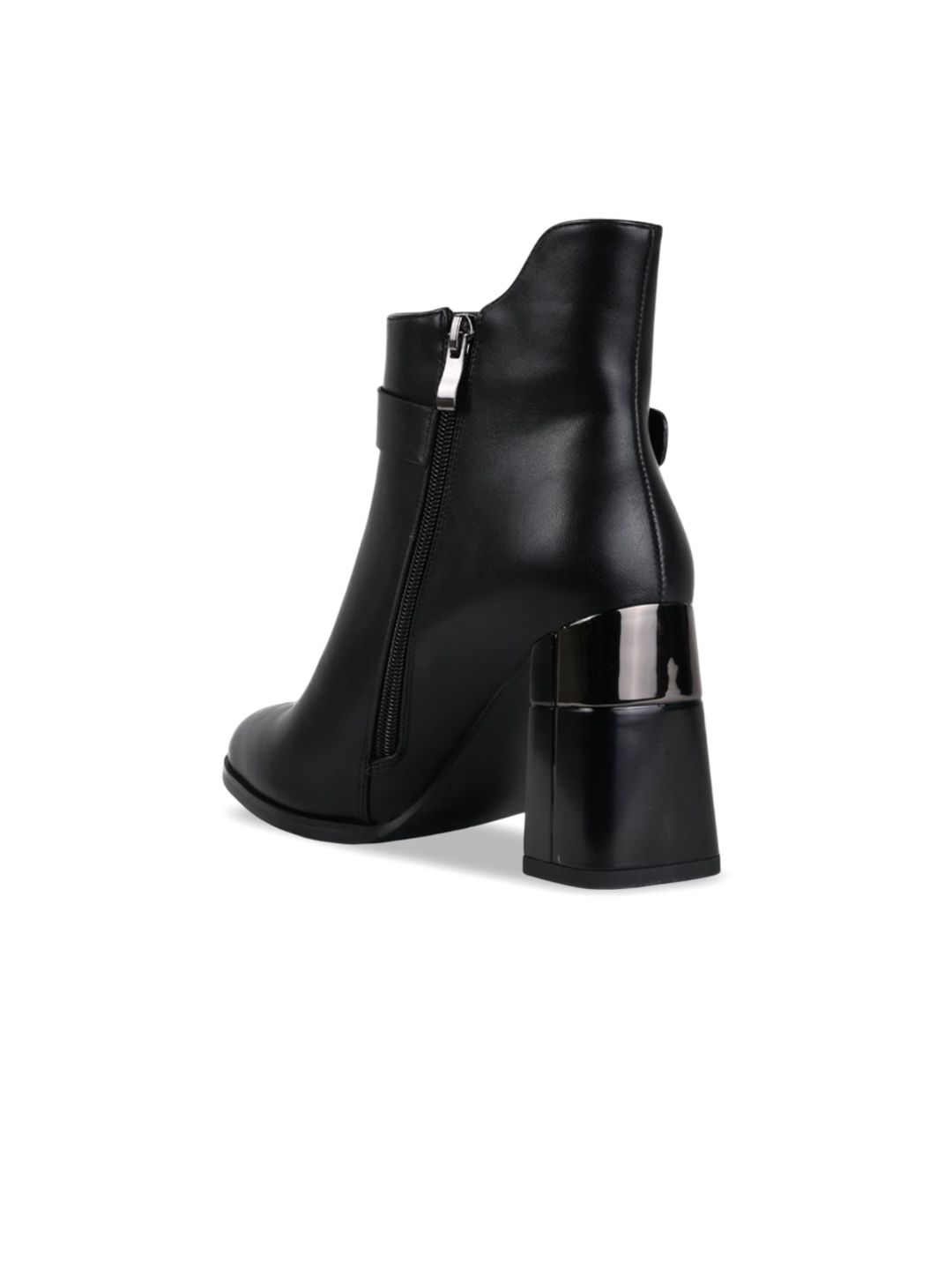 A pair of Black ankle-length Regular boots, has mid-top ankle and ZIP fastening and back detailPU Solid upper materialCushioned footbedTextured and patterned TPR outsole, has a block-heeledWarranty: 1 MonthWarranty provided by brand/manufacturer