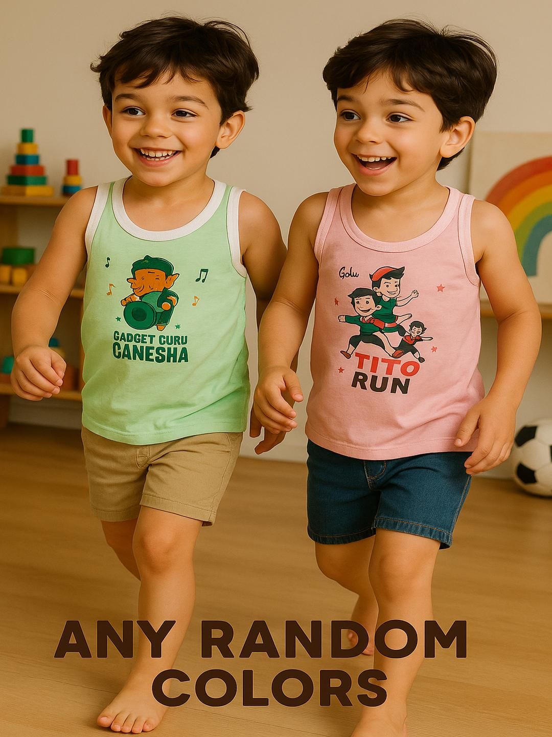 1.Pack Of 2 pcs New Born baby kids inner wear baniyan | unisex printed cotton baby sando | 100% Cotton vest for baby | daily wear infant vest | sleeveless vest for baby | toddlers vest cotton. 2.Sleeveless Vest for Baby & Toddlers | A versatile and stylish innerwear option| perfect as a banyan undershirt, or layering piece for casual wear| sleepwear | summer outfits.3.Unisex Printed Cotton Baby Sando | Made from 100% premium cotton | These lightweight and stretchable vests offer a gentle touch on delicate skin | keeping babies cool and sweat-free.4.100% Cotton Vest for Baby | Crafted with high-quality | skin-friendly cotton | This daily wear infant vest is soft | durable | Retains color and print even after multiple washes.5.Age Limit:- It is for all ages from newboarn baby to Kids upto 9 Years sizes are like;- 0-3 Month, 3-6 Months, 6-12 Months, 12-24 Months, 2-3 years, 3-4 years , 4-5 Years , 5-6 Years , 6-7 Years.6.Perfect Gift Option:- Not sure what to buy a baby, baby shower, or birthday gift? This cute and functional Shamriz Baby Tank Top Set blends style, comfort, and affordability in one delightful package sleeveless vests is excellent for baby showers or as a welcome present. Holidays, birthdays, and other special occasions These soft pyjamas make great gifts for infants on Diwali, Christmas, Eid, and Rakhi for everyday wear, playing, or going away