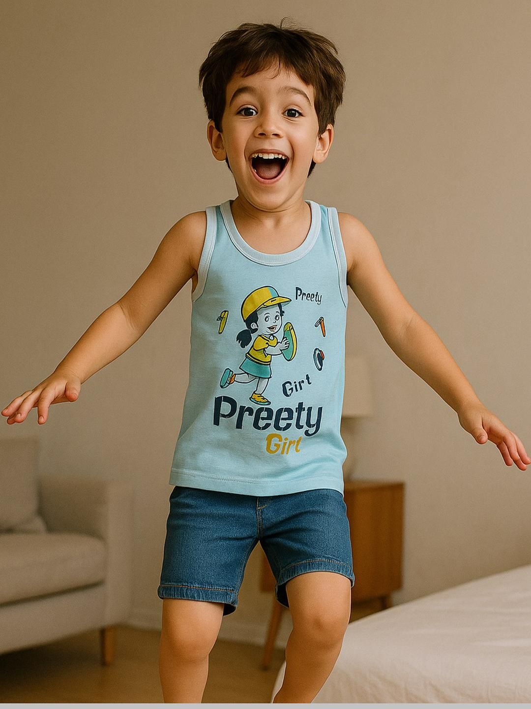 This 2-piece set of Cortica newborn baby innerwear baniyan is perfect for both boys and girls, and it will keep them warm, dry, and looking great. Infants, toddlers, and small children will be comfortable all day long in this sleeveless vest made of 100% cotton. Ideal for everyday use, this unisex patterned cotton baby sando is lightweight and stretchy, keeping your little one cool and comfortable.This set of toddler vests is ideal for hot weather since they absorb perspiration and keep little ones comfortable without causing any skin irritation. This versatile cotton vest is perfect for your little one's wardrobe, serving multiple purposes such as an undershirt, a sleeveless shirt, or baby inner-wear. Your young one will be comfortable all day long thanks to the delicate cotton fabric.A long-lasting and sturdy option, the high-quality fabric keeps its color and design over numerous washing. This fashionable and practical baby vest is perfect for lounging about the house, playing, or as an undergarment. Parents can rest easy knowing that the toddler banian is simple to care forjust give it a regular or moderate wash.This lightweight cotton vest set is of exceptional quality and will be a great addition to your child's summer wardrobe. Get the best in comfort, breathability, and long-term durability by placing your order today!