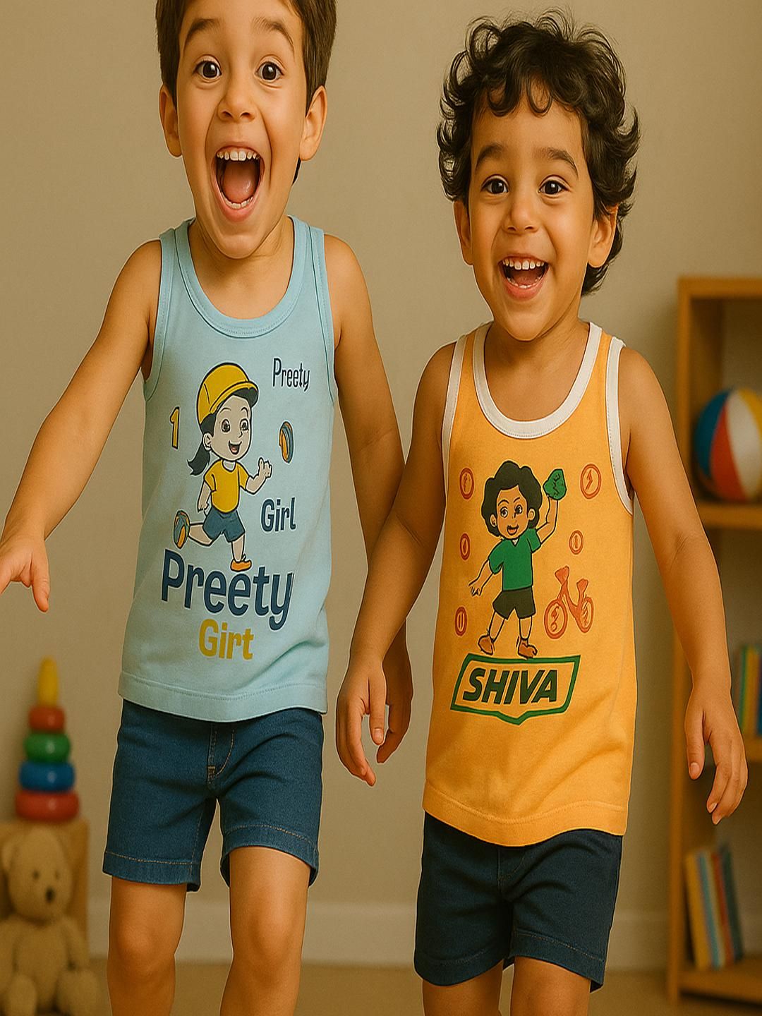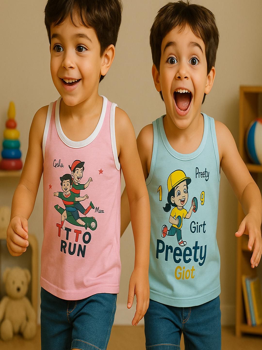 1.Pack Of 2 pcs New Born baby kids inner wear baniyan | unisex printed cotton baby sando | 100% Cotton vest for baby | daily wear infant vest | sleeveless vest for baby | toddlers vest cotton. 2.Sleeveless Vest for Baby & Toddlers | A versatile and stylish innerwear option| perfect as a banyan undershirt, or layering piece for casual wear| sleepwear | summer outfits.3.Unisex Printed Cotton Baby Sando | Made from 100% premium cotton | These lightweight and stretchable vests offer a gentle touch on delicate skin | keeping babies cool and sweat-free.4.100% Cotton Vest for Baby | Crafted with high-quality | skin-friendly cotton | This daily wear infant vest is soft | durable | Retains color and print even after multiple washes.5.Age Limit:- It is for all ages from newboarn baby to Kids upto 9 Years sizes are like;- 0-3 Month, 3-6 Months, 6-12 Months, 12-24 Months, 2-3 years, 3-4 years , 4-5 Years , 5-6 Years , 6-7 Years.6.Perfect Gift Option:- Not sure what to buy a baby, baby shower, or birthday gift? This cute and functional Shamriz Baby Tank Top Set blends style, comfort, and affordability in one delightful package sleeveless vests is excellent for baby showers or as a welcome present. Holidays, birthdays, and other special occasions These soft pyjamas make great gifts for infants on Diwali, Christmas, Eid, and Rakhi for everyday wear, playing, or going away
