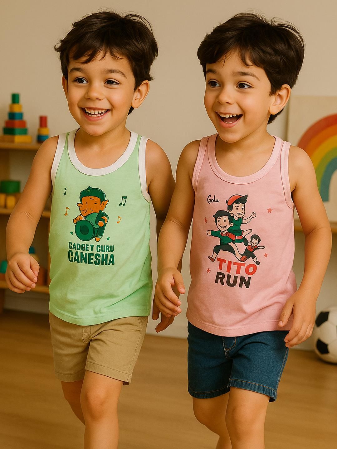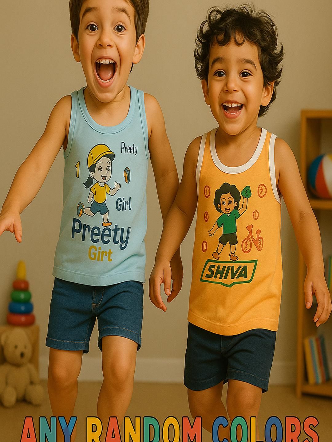 1.Pack Of 2 pcs New Born baby kids inner wear baniyan | unisex printed cotton baby sando | 100% Cotton vest for baby | daily wear infant vest | sleeveless vest for baby | toddlers vest cotton. 2.Sleeveless Vest for Baby & Toddlers | A versatile and stylish innerwear option| perfect as a banyan undershirt, or layering piece for casual wear| sleepwear | summer outfits.3.Unisex Printed Cotton Baby Sando | Made from 100% premium cotton | These lightweight and stretchable vests offer a gentle touch on delicate skin | keeping babies cool and sweat-free.4.100% Cotton Vest for Baby | Crafted with high-quality | skin-friendly cotton | This daily wear infant vest is soft | durable | Retains color and print even after multiple washes.5.Age Limit:- It is for all ages from newboarn baby to Kids upto 9 Years sizes are like;- 0-3 Month, 3-6 Months, 6-12 Months, 12-24 Months, 2-3 years, 3-4 years , 4-5 Years , 5-6 Years , 6-7 Years.6.Perfect Gift Option:- Not sure what to buy a baby, baby shower, or birthday gift? This cute and functional Shamriz Baby Tank Top Set blends style, comfort, and affordability in one delightful package sleeveless vests is excellent for baby showers or as a welcome present. Holidays, birthdays, and other special occasions These soft pyjamas make great gifts for infants on Diwali, Christmas, Eid, and Rakhi for everyday wear, playing, or going away