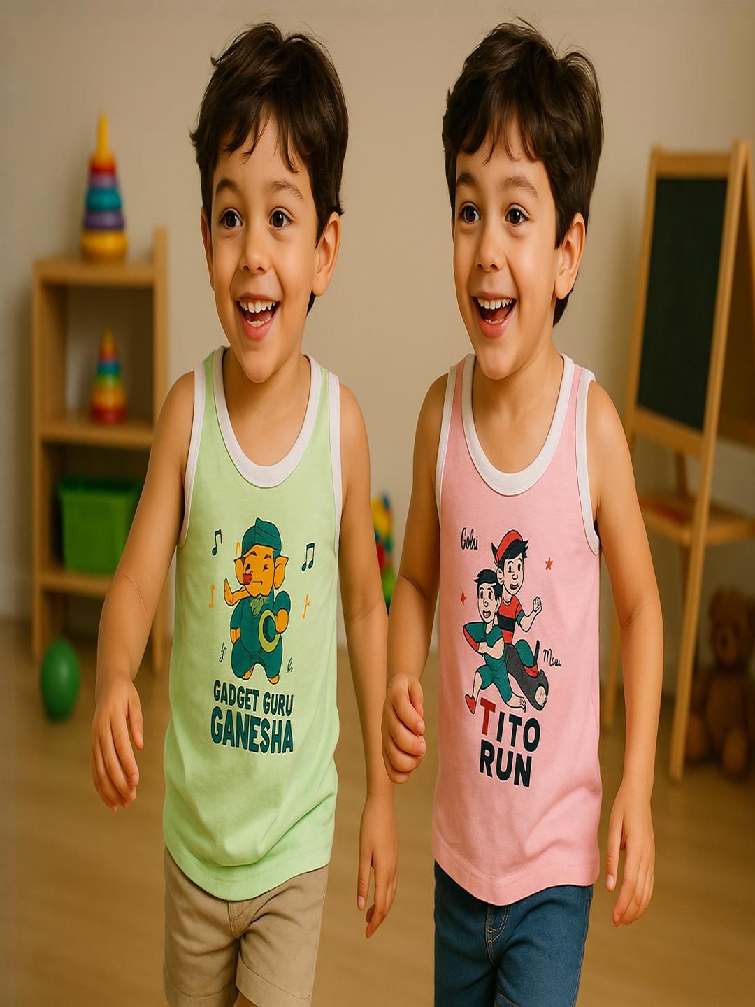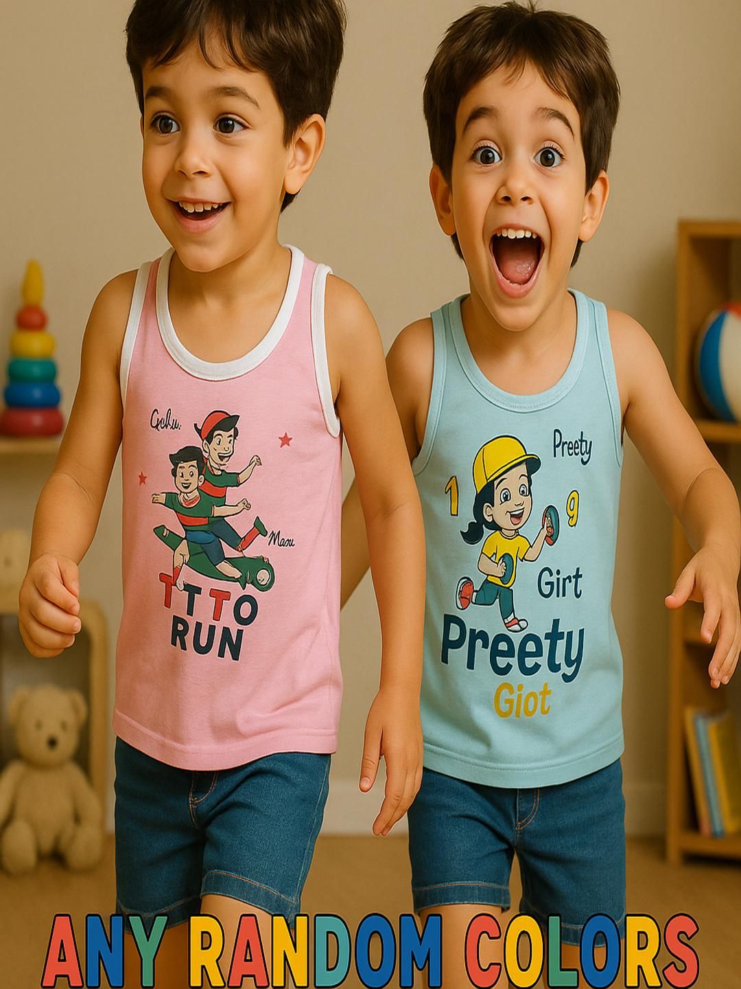 1.Pack Of 2 pcs New Born baby kids inner wear baniyan | unisex printed cotton baby sando | 100% Cotton vest for baby | daily wear infant vest | sleeveless vest for baby | toddlers vest cotton. 2.Sleeveless Vest for Baby & Toddlers | A versatile and stylish innerwear option| perfect as a banyan undershirt, or layering piece for casual wear| sleepwear | summer outfits.3.Unisex Printed Cotton Baby Sando | Made from 100% premium cotton | These lightweight and stretchable vests offer a gentle touch on delicate skin | keeping babies cool and sweat-free.4.100% Cotton Vest for Baby | Crafted with high-quality | skin-friendly cotton | This daily wear infant vest is soft | durable | Retains color and print even after multiple washes.5.Age Limit:- It is for all ages from newboarn baby to Kids upto 9 Years sizes are like;- 0-3 Month, 3-6 Months, 6-12 Months, 12-24 Months, 2-3 years, 3-4 years , 4-5 Years , 5-6 Years , 6-7 Years.6.Perfect Gift Option:- Not sure what to buy a baby, baby shower, or birthday gift? This cute and functional Shamriz Baby Tank Top Set blends style, comfort, and affordability in one delightful package sleeveless vests is excellent for baby showers or as a welcome present. Holidays, birthdays, and other special occasions These soft pyjamas make great gifts for infants on Diwali, Christmas, Eid, and Rakhi for everyday wear, playing, or going away
