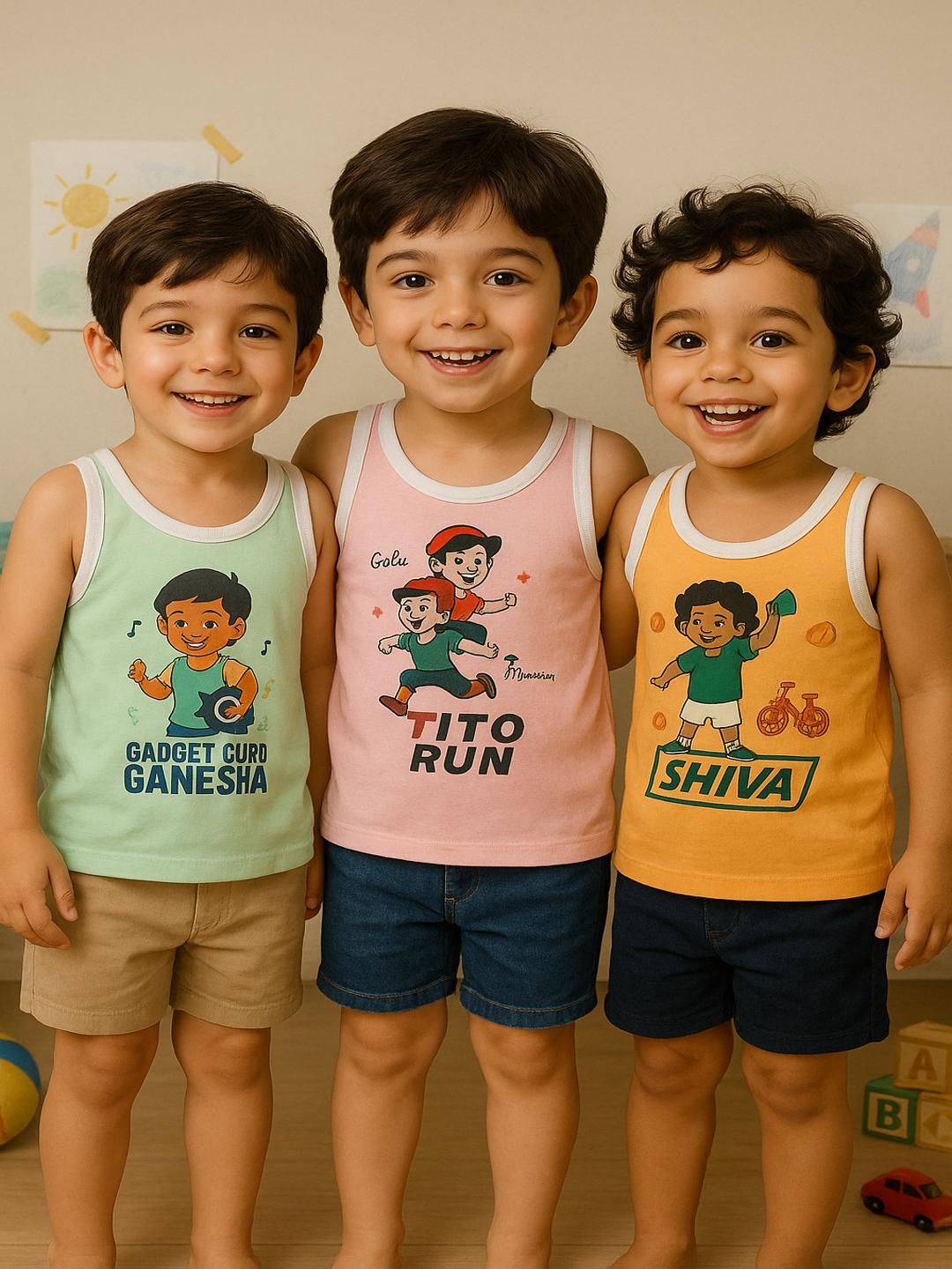 This 3-piece set of Cortica newborn baby innerwear baniyan is perfect for both boys and girls, and it will keep them warm, dry, and looking great. Infants, toddlers, and small children will be comfortable all day long in this sleeveless vest made of 100% cotton. Ideal for everyday use, this unisex patterned cotton baby sando is lightweight and stretchy, keeping your little one cool and comfortable.This set of toddler vests is ideal for hot weather since they absorb perspiration and keep little ones comfortable without causing any skin irritation. This versatile cotton vest is perfect for your little one's wardrobe, serving multiple purposes such as an undershirt, a sleeveless shirt, or baby inner-wear. Your young one will be comfortable all day long thanks to the delicate cotton fabric.A long-lasting and sturdy option, the high-quality fabric keeps its color and design over numerous washing. This fashionable and practical baby vest is perfect for lounging about the house, playing, or as an undergarment. Parents can rest easy knowing that the toddler banian is simple to care forjust give it a regular or moderate wash.This lightweight cotton vest set is of exceptional quality and will be a great addition to your child's summer wardrobe. Get the best in comfort, breathability, and long-term durability by placing your order today!