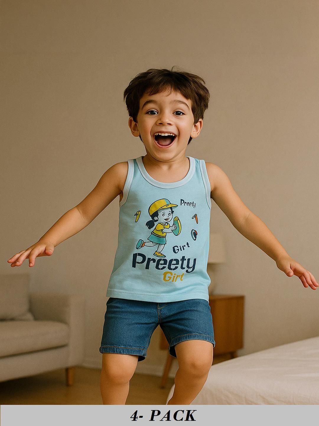 This 4-piece set of Cortica newborn baby innerwear baniyan is perfect for both boys and girls, and it will keep them warm, dry, and looking great. Infants, toddlers, and small children will be comfortable all day long in this sleeveless vest made of 100% cotton. Ideal for everyday use, this unisex patterned cotton baby sando is lightweight and stretchy, keeping your little one cool and comfortable.This set of toddler vests is ideal for hot weather since they absorb perspiration and keep little ones comfortable without causing any skin irritation. This versatile cotton vest is perfect for your little one's wardrobe, serving multiple purposes such as an undershirt, a sleeveless shirt, or baby inner-wear. Your young one will be comfortable all day long thanks to the delicate cotton fabric.A long-lasting and sturdy option, the high-quality fabric keeps its color and design over numerous washing. This fashionable and practical baby vest is perfect for lounging about the house, playing, or as an undergarment. Parents can rest easy knowing that the toddler banian is simple to care forjust give it a regular or moderate wash.This lightweight cotton vest set is of exceptional quality and will be a great addition to your child's summer wardrobe. Get the best in comfort, breathability, and long-term durability by placing your order today!
