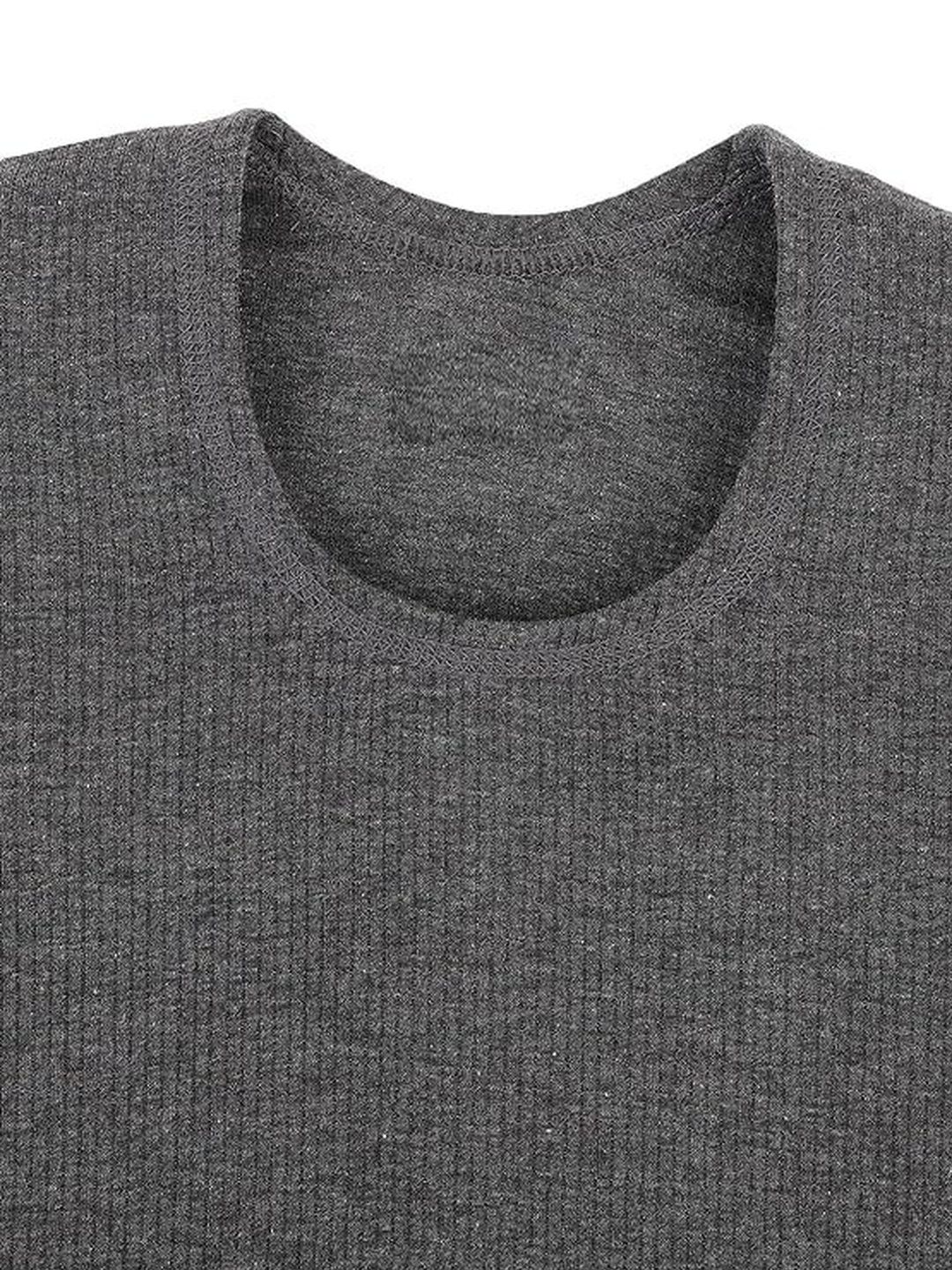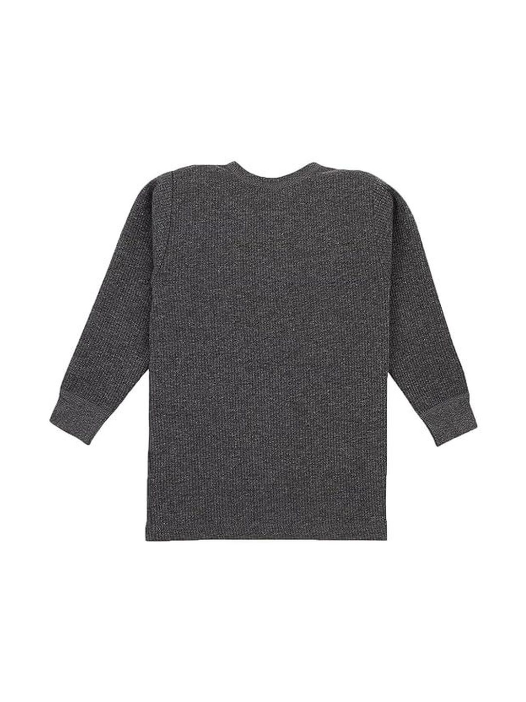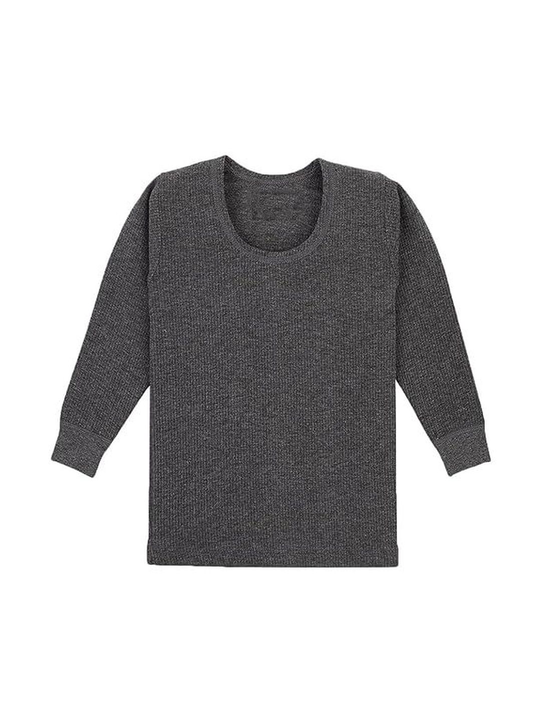 This thermal set consists of a top and a pair of thermal bottomsGrey solid thermal top has a round neck and slip-on closure, long sleeves, and cuffed hemGrey solid mid-rise thermal bottoms, has an elasticated waistband and cuffed hem
