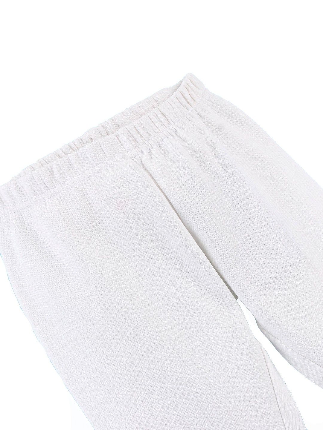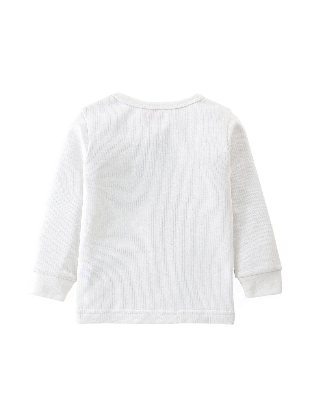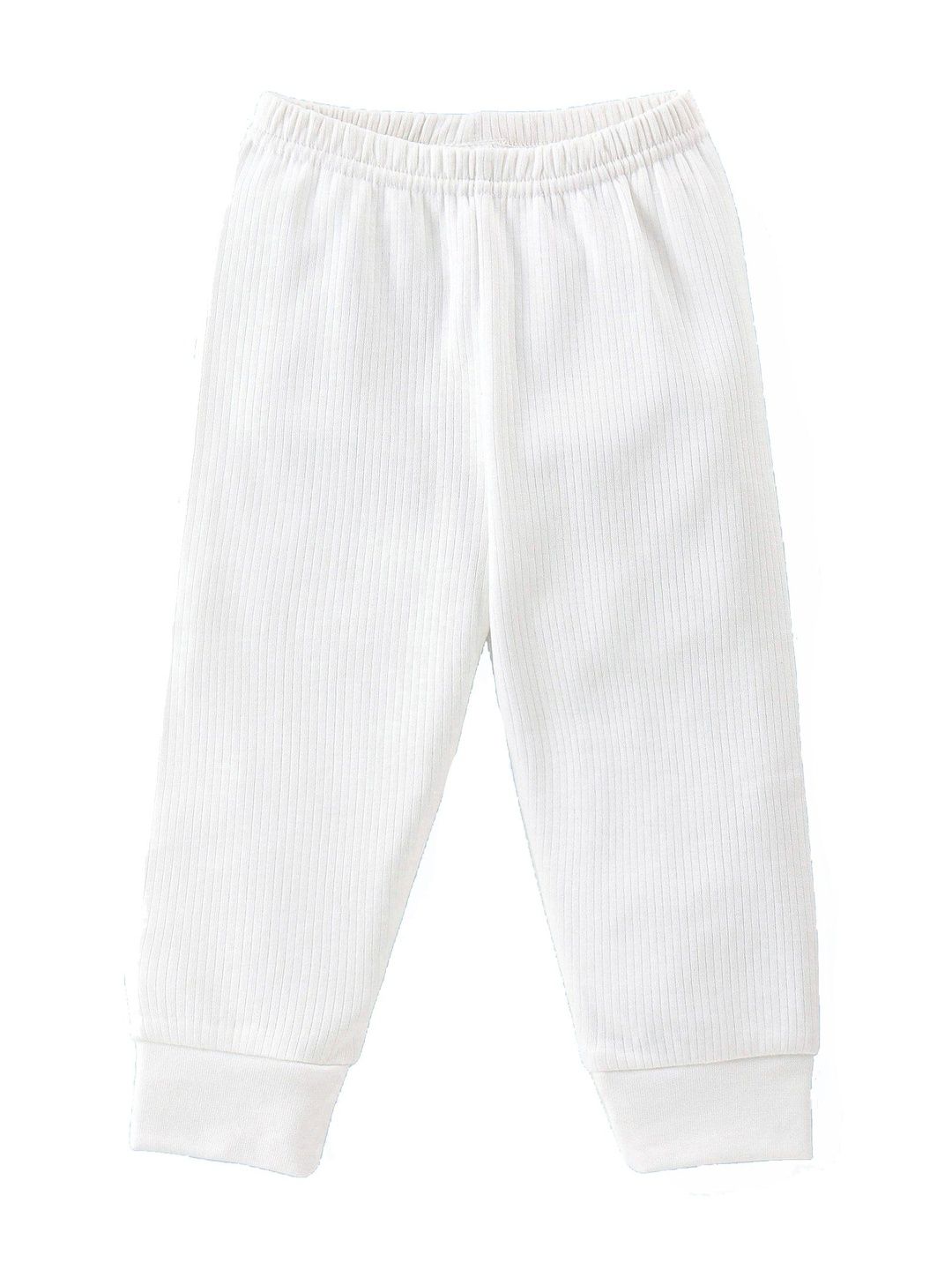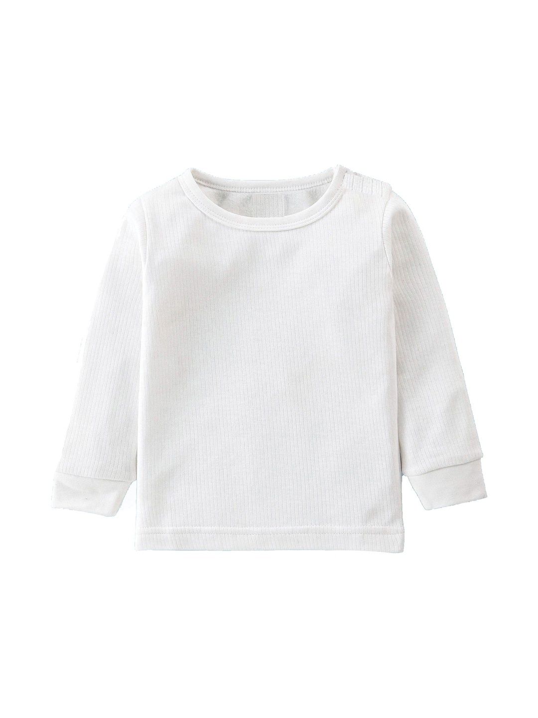 This thermal set consists of a top and a pair of thermal bottomsOff white ribbed thermal top has a round neck and slip-on closure, long sleeves, and cuffed hemOff white ribbed mid-rise thermal bottoms, has an elasticated waistband and cuffed hem