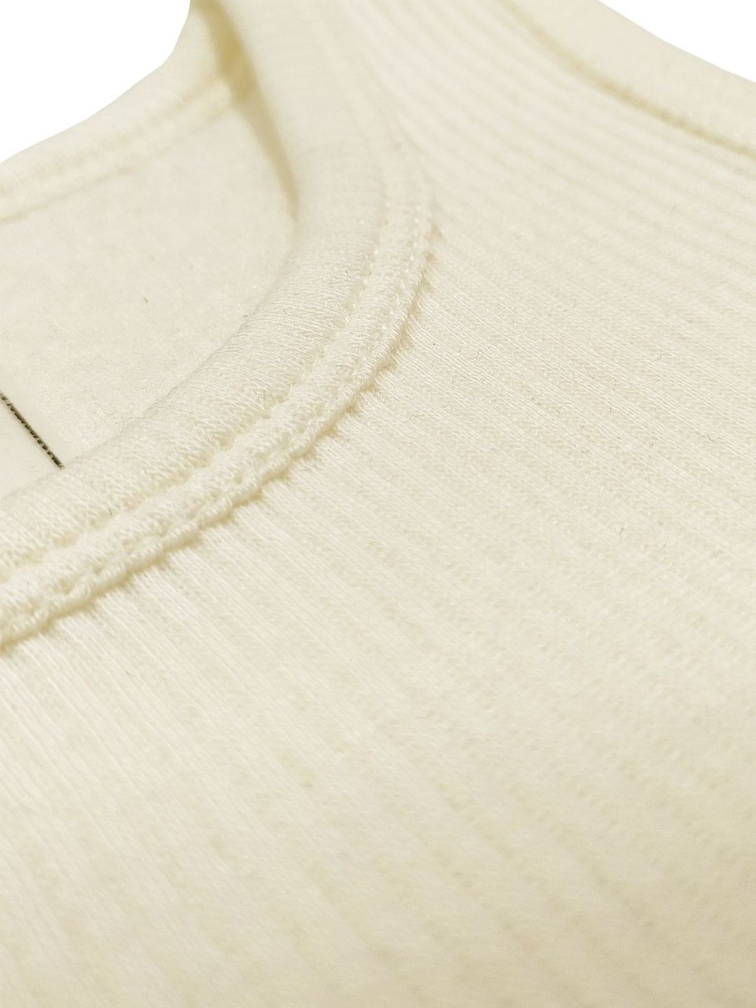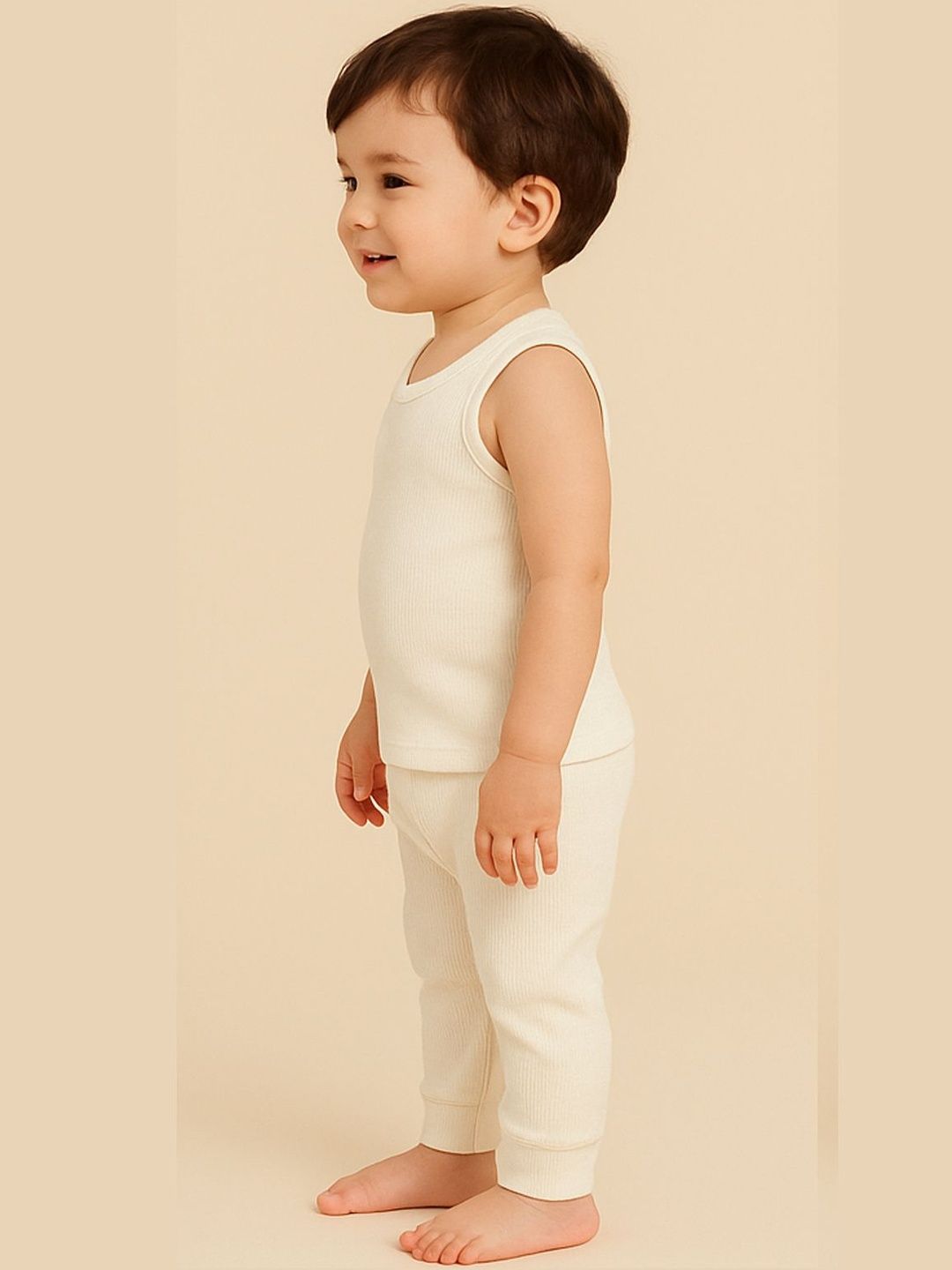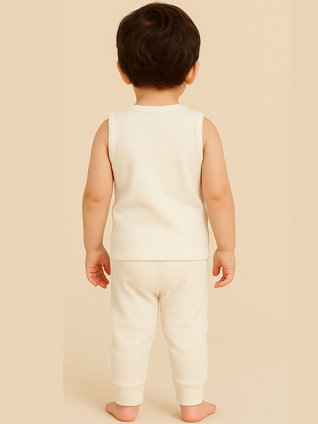 Off white striped thermal sets Off white striped thermal top, has a round neck and sleeveless Off white striped regular-fit mid-rise thermal pant, has an elasticated waistband with slip-on closure, cuffed hems