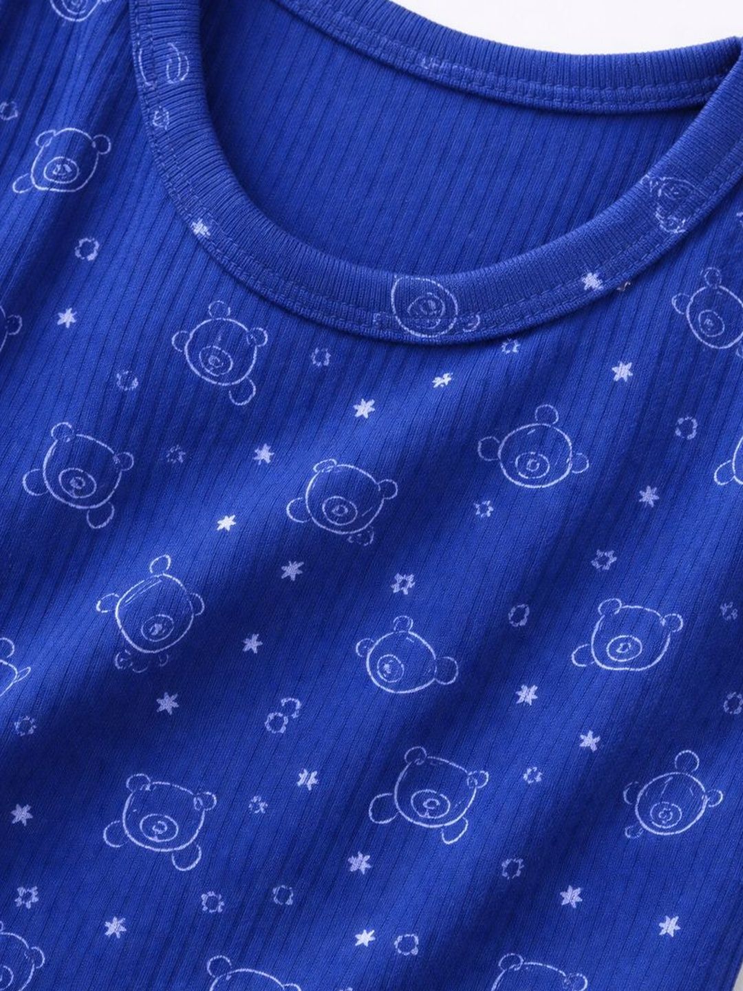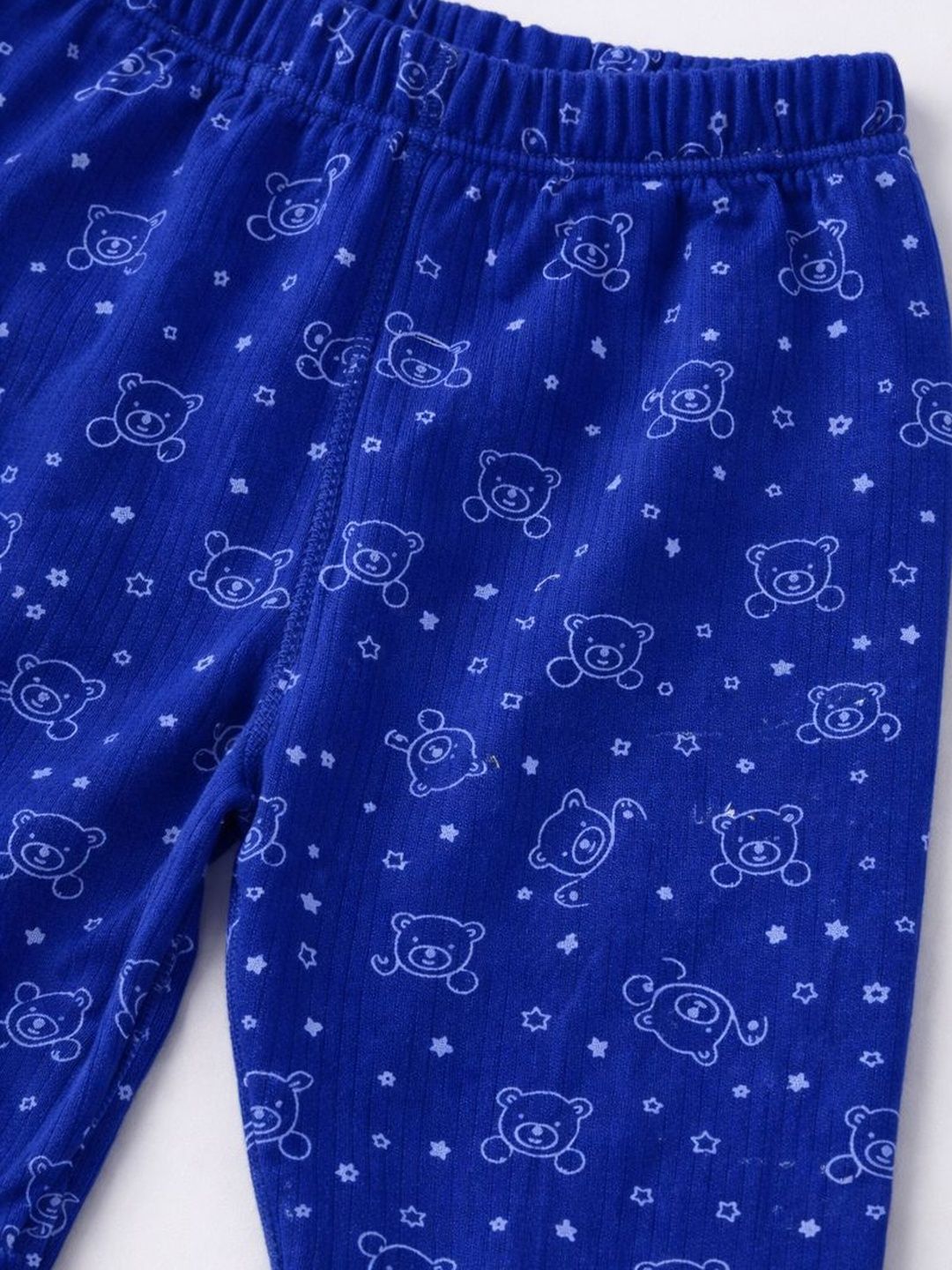 Blue printed thermal sets Blue printed thermal top, has a round neck and sleevelessBlue printed regular-fit mid-rise thermal , has an elasticated waistband with slip-on closure, cuffed hems