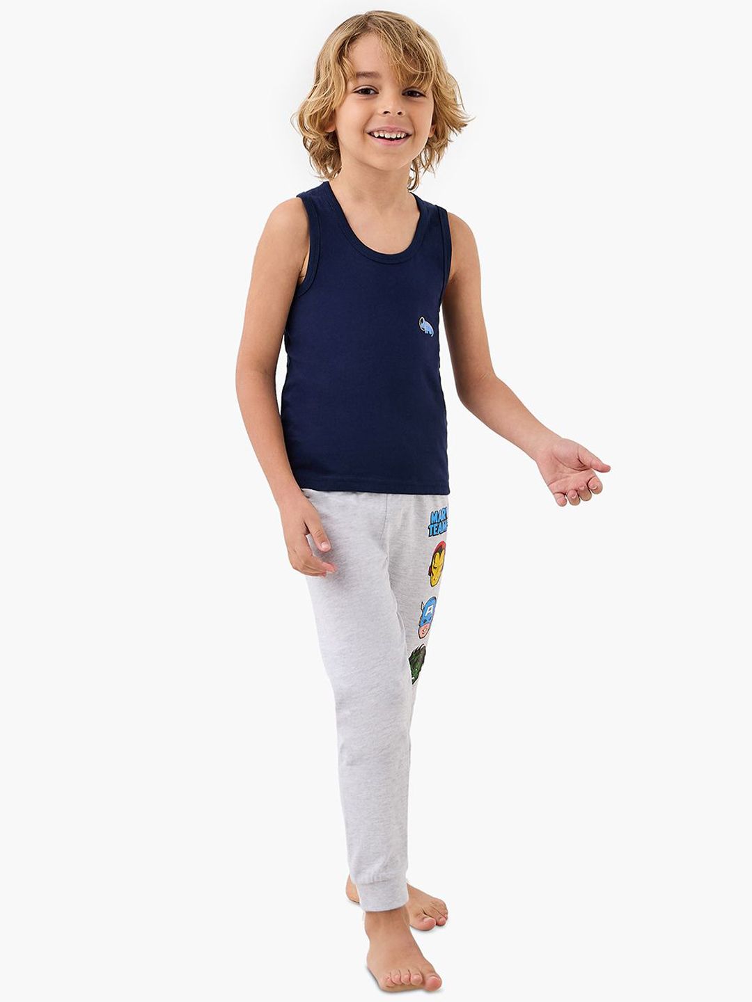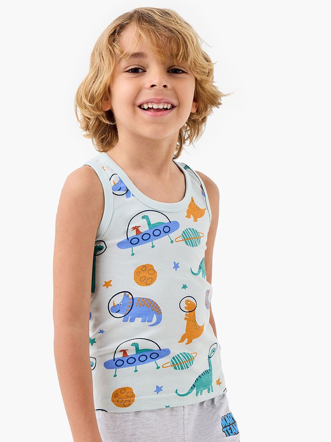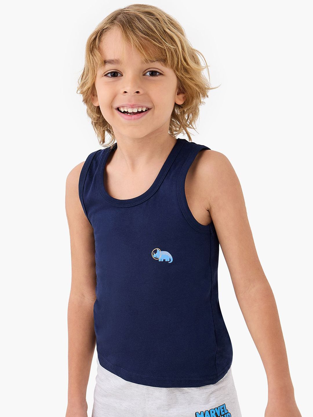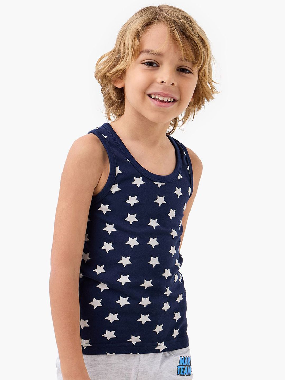 VANumber: H52-A6-30-720MULTICOLOUR Pack of 7 printed gym Vests for boys 3 White printed vest, has round neck and sleeveless 2 Blue printed vest, has round neck and sleeveless Navy blue printed vest, has round neck and sleevelessBlue solid vest, has round neck and sleeveless