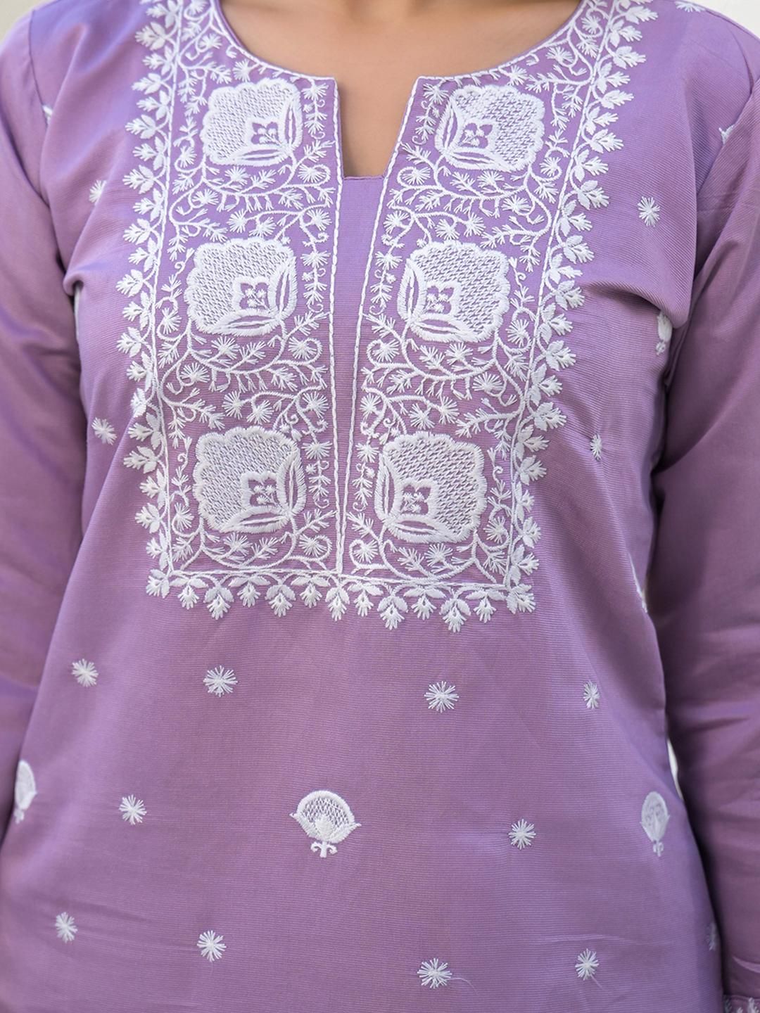This light purple Co-Ord set, enhanced with thread embroidery, is made from viscose gadwal silk fabric and comes with a matching bottom for a coordinated look, perfect for festive celebrations and party wear.