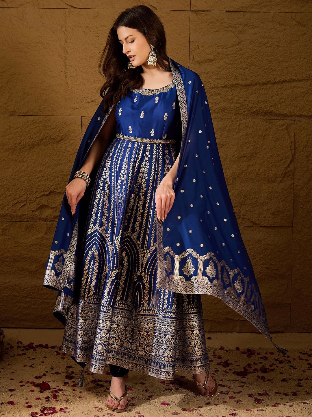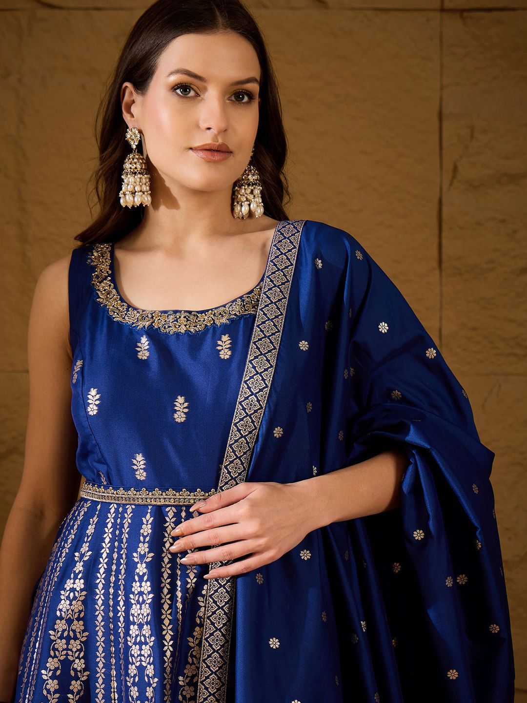 Dupatta size: 2.25 m x 1.0 m (Length x Width)The model (height 5'8'') is wearing a size S