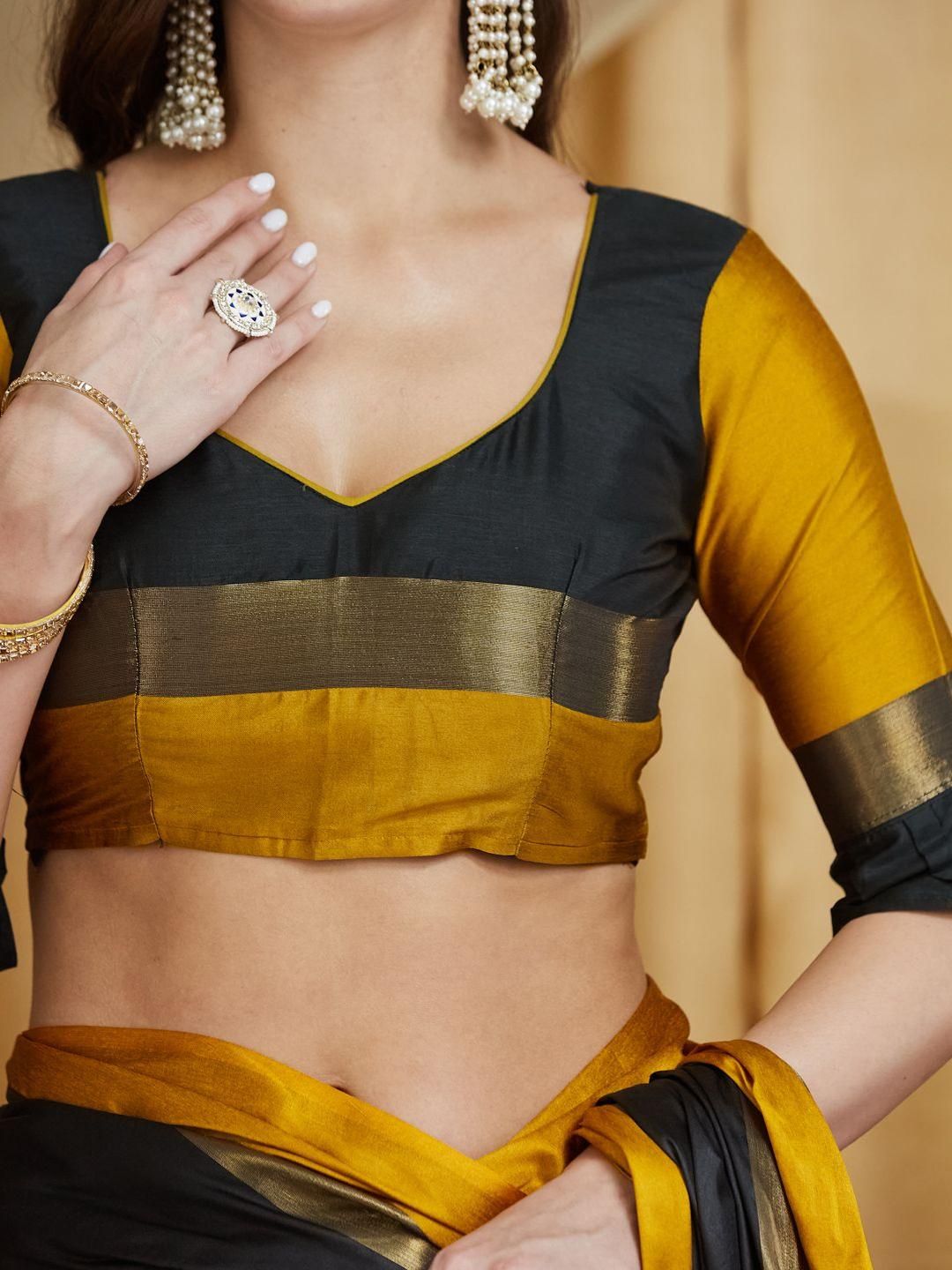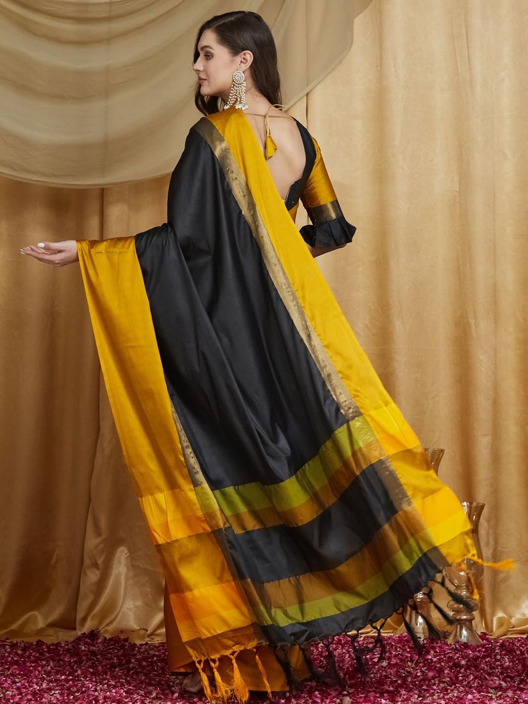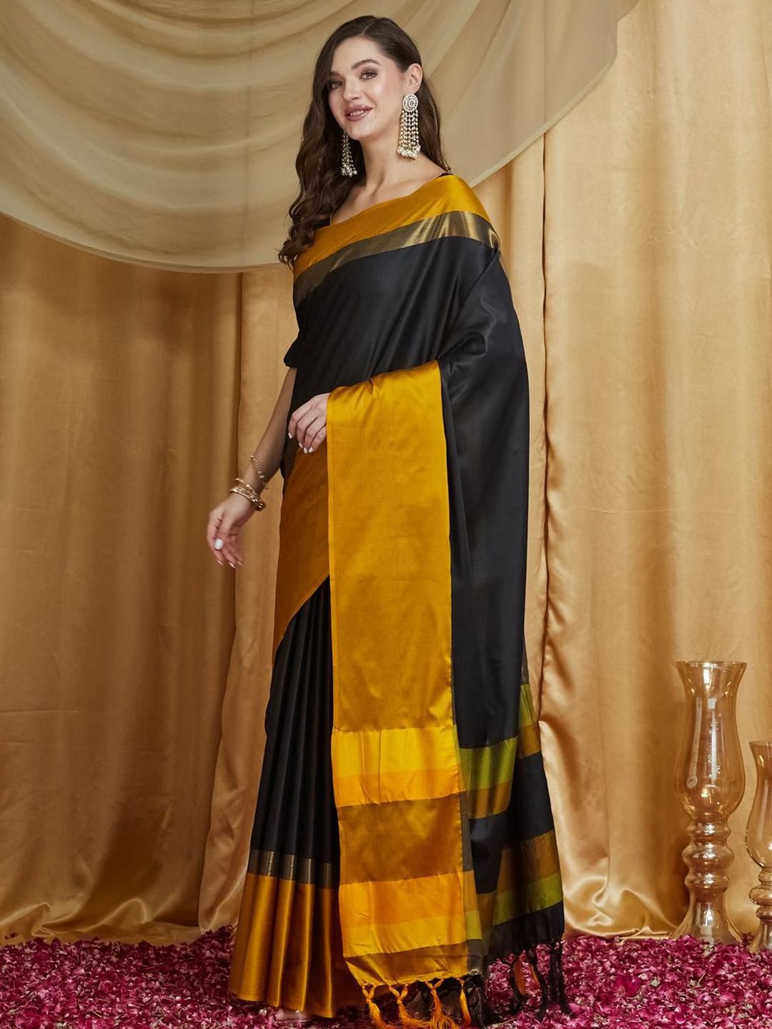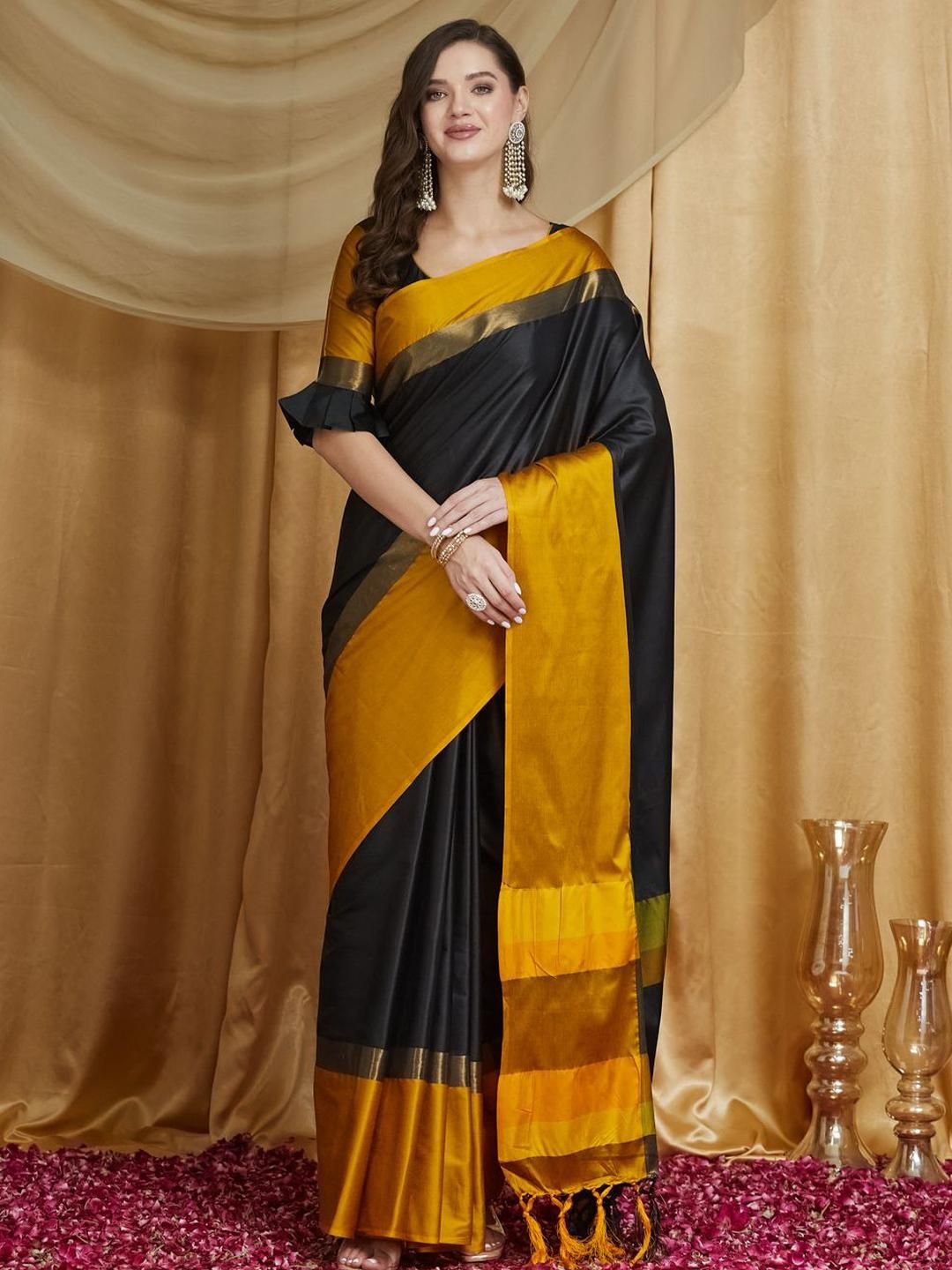 Style this elegant cotton silk saree with statement jewelry and a pair of embellished heels to create a refined festive or wedding-ready look. Its solid print design provides the perfect canvas for bold accessories, while the luxurious fabric adds a touch of sophistication. For a more contemporary twist, you can pair it with a contrast blouse or a belt for added structure, though the sarees clean silhouette also shines beautifully on its own