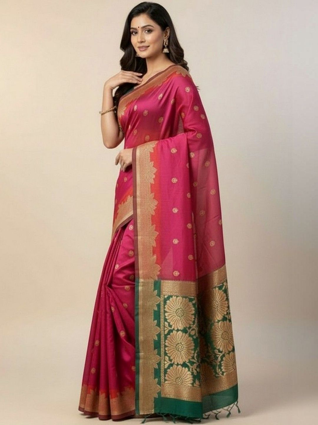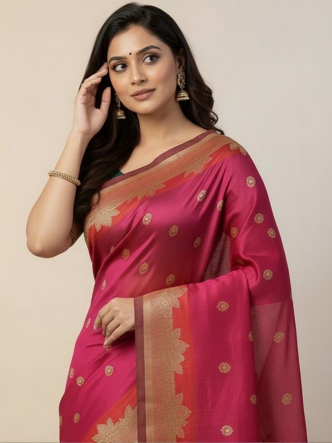 Pair your saree with statement earrings or a delicate necklace to highlight the border or embroidery. Add matching bangles or a stylish bracelet and carry a chic clutch for a complete ethnic look. Style your hair in a bun, braid, or loose waves, and finish with heels or traditional sandals. Keep your makeup subtle with kajal and a matching lipstick to let the saree stand out. Perfect for weddings, parties, and festive celebrations.